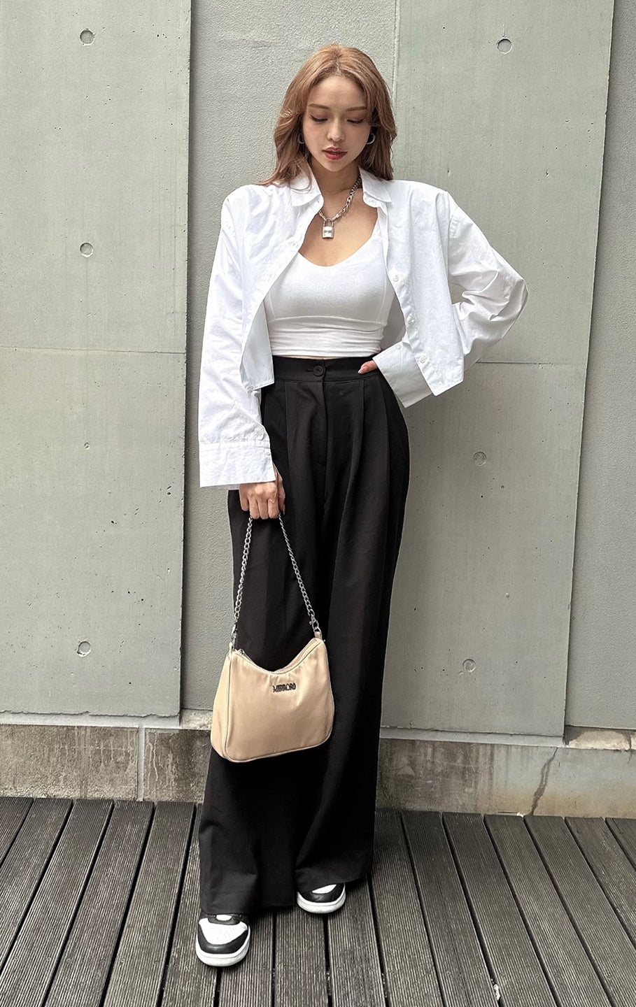 トレンドにシルエットでハイウエストボトムとの相性が抜群です。