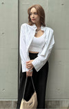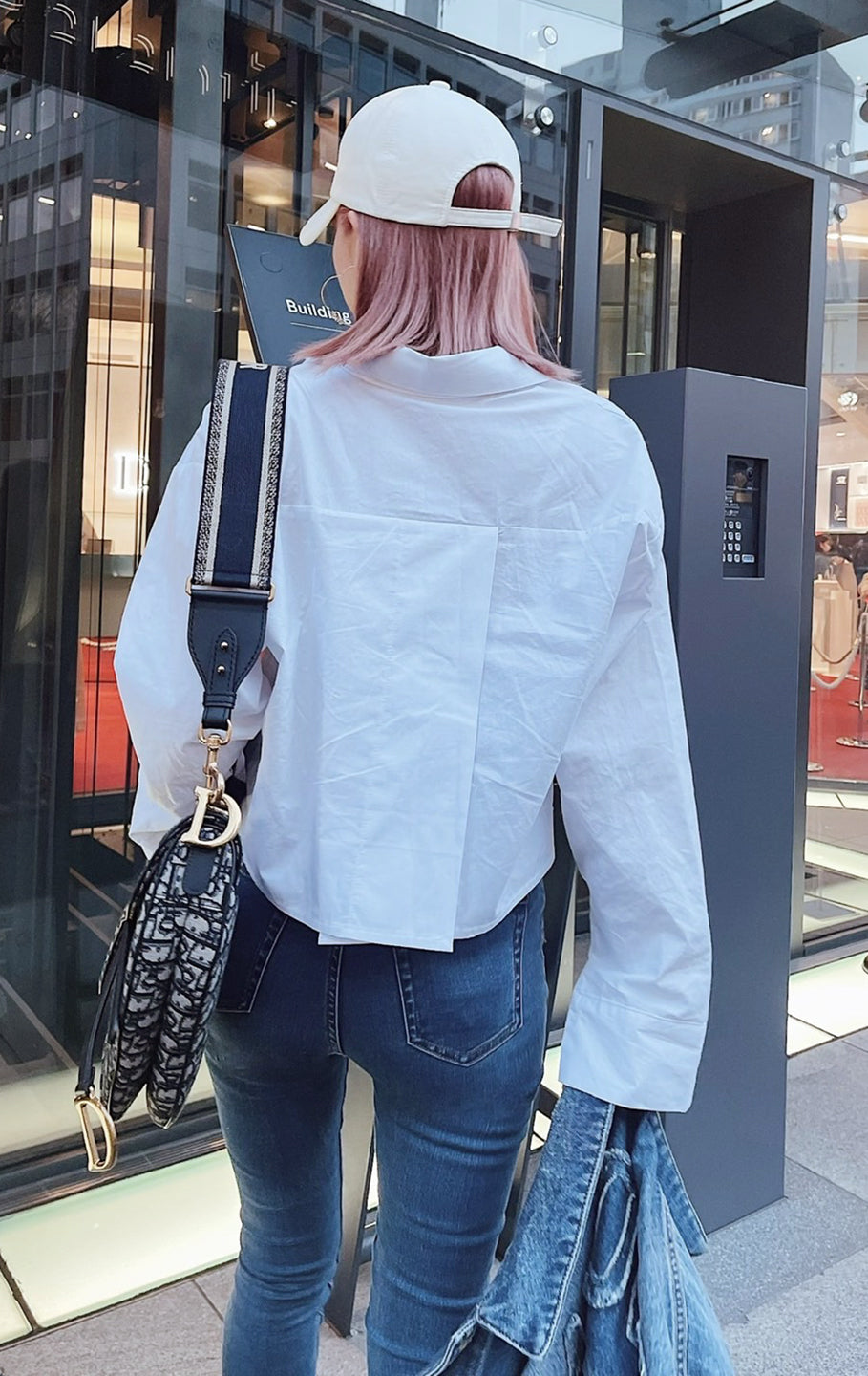 Introducing a short shirt from the popular shirt series. It has a trendy silhouette and goes great with high-waisted bottoms. The design has a slit in the back, making your back a focal point. This is a thin and light shirt, so if you open the front, you can wear it as an outer layer on a slightly chilly day. As stated in the shopping guide, we do not accept exchanges for all tops products as there is a risk that foundation may get on them when you try them on. Please understand this before purchasing.
