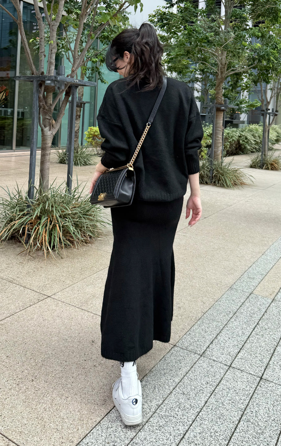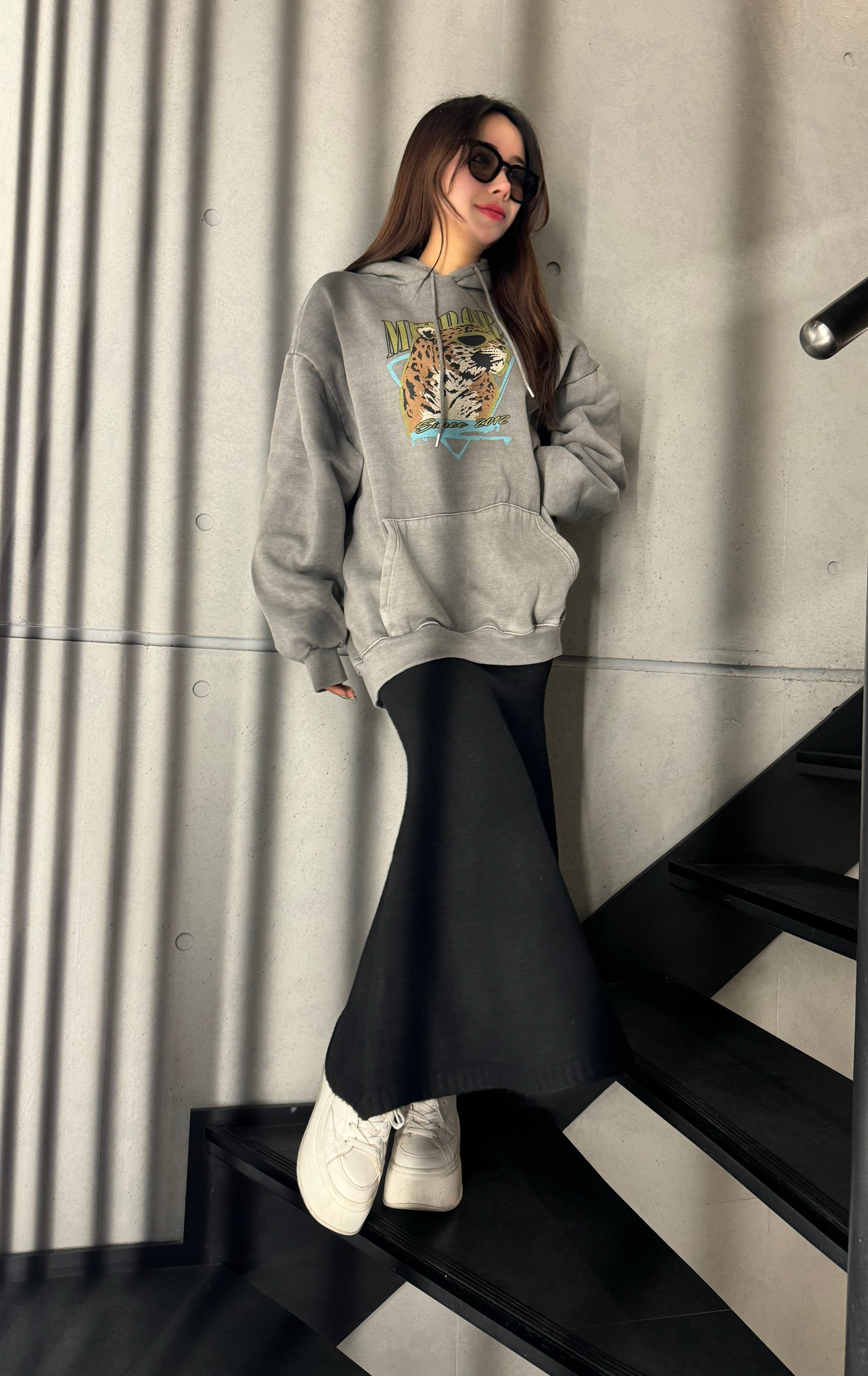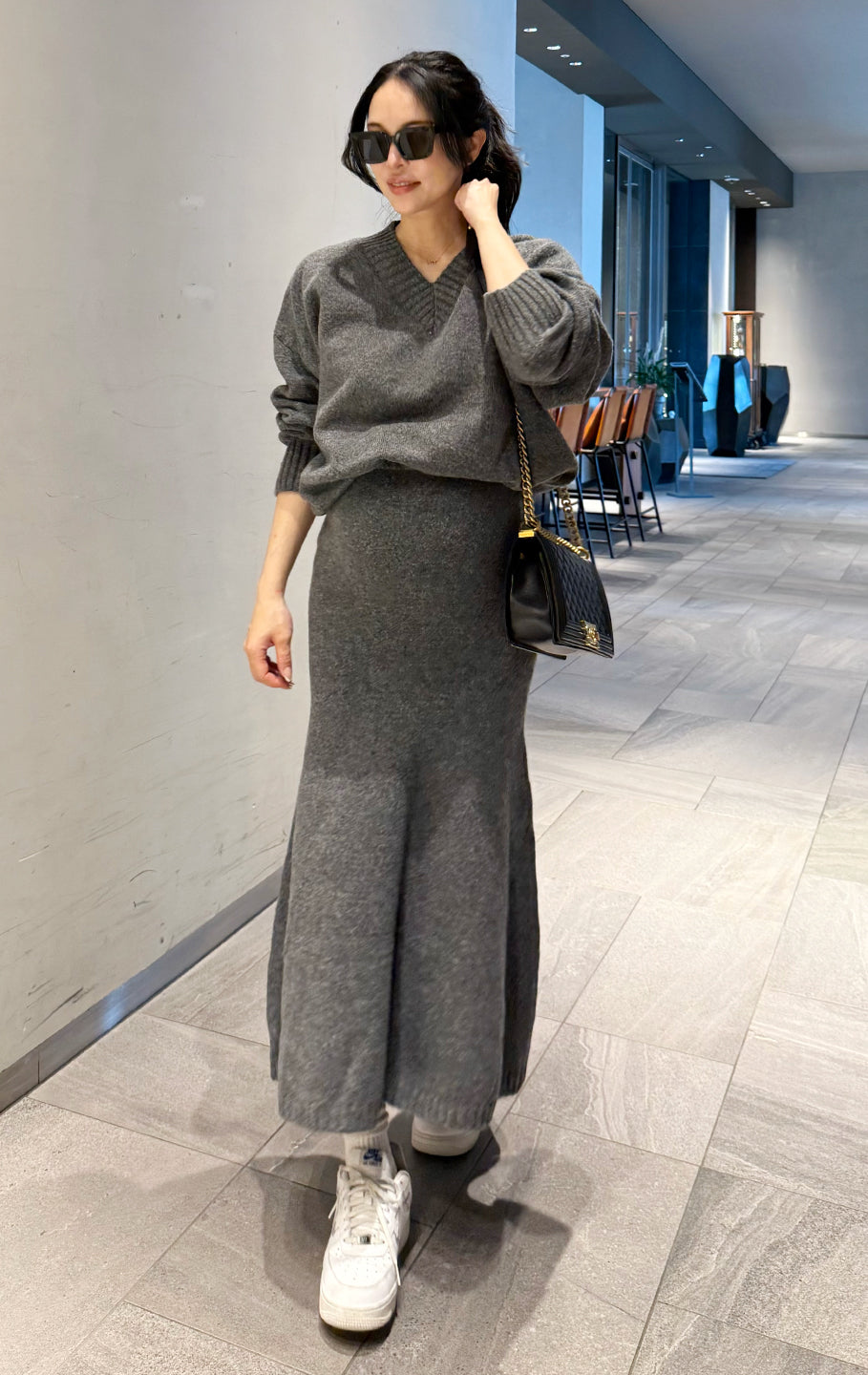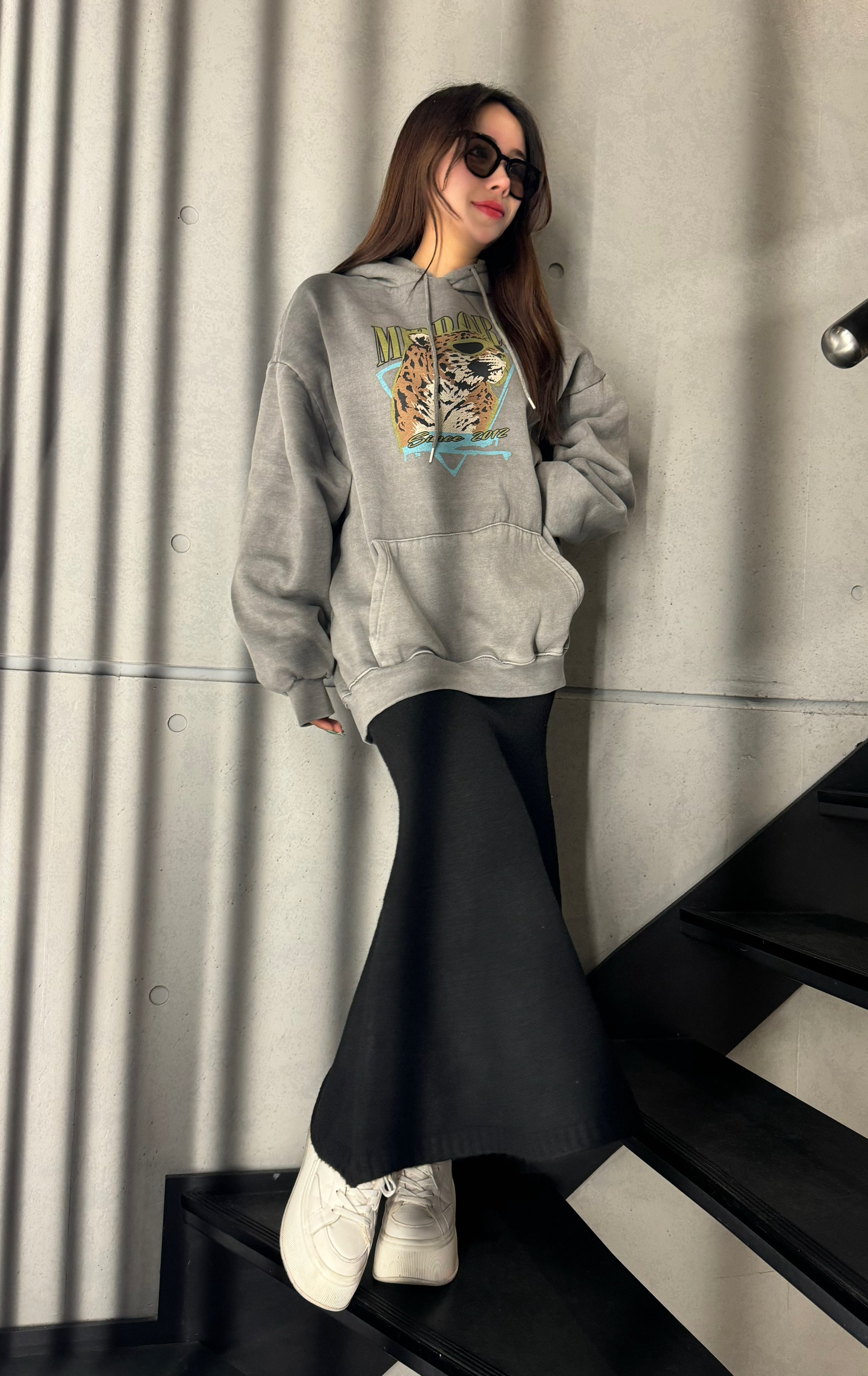 スカートにスウェットパーカーを合わせるコーディネートを真似してみましたがとても素敵です!