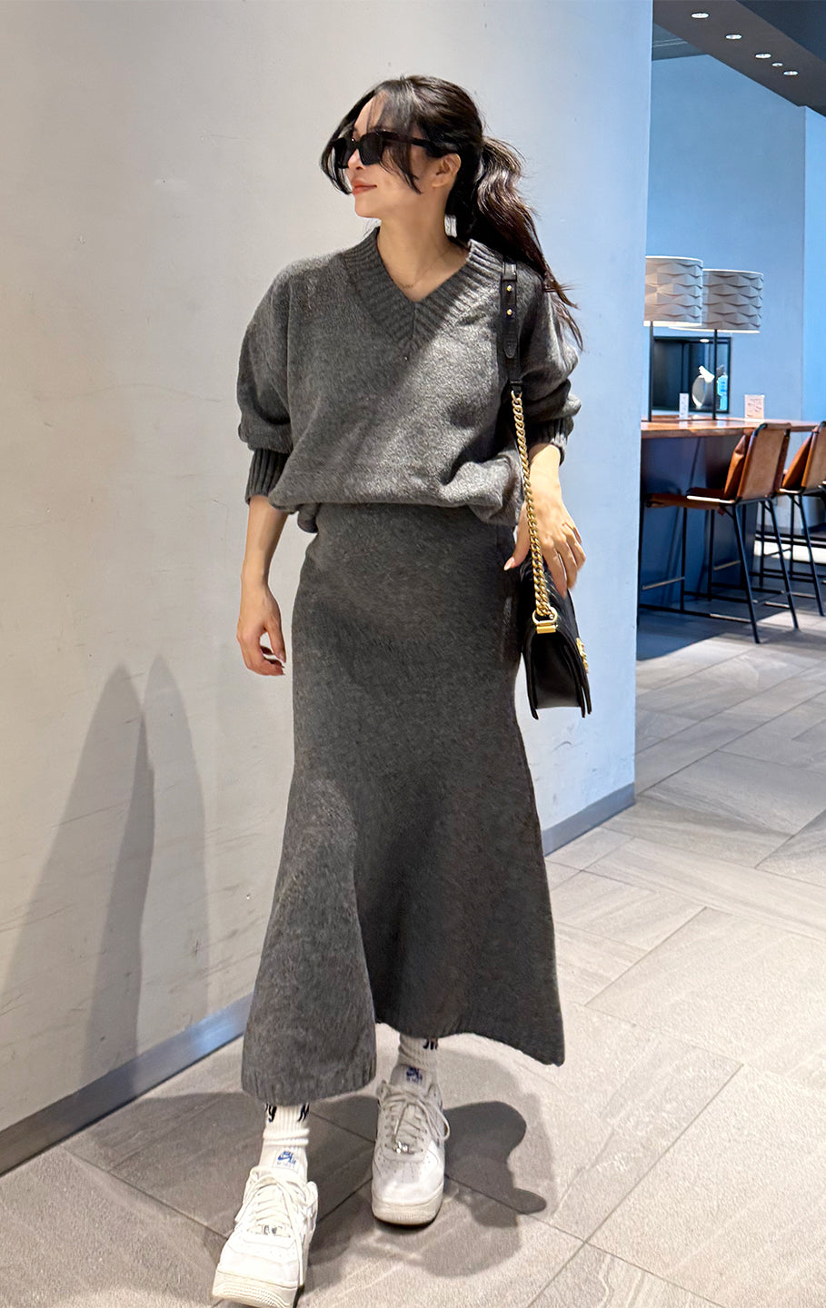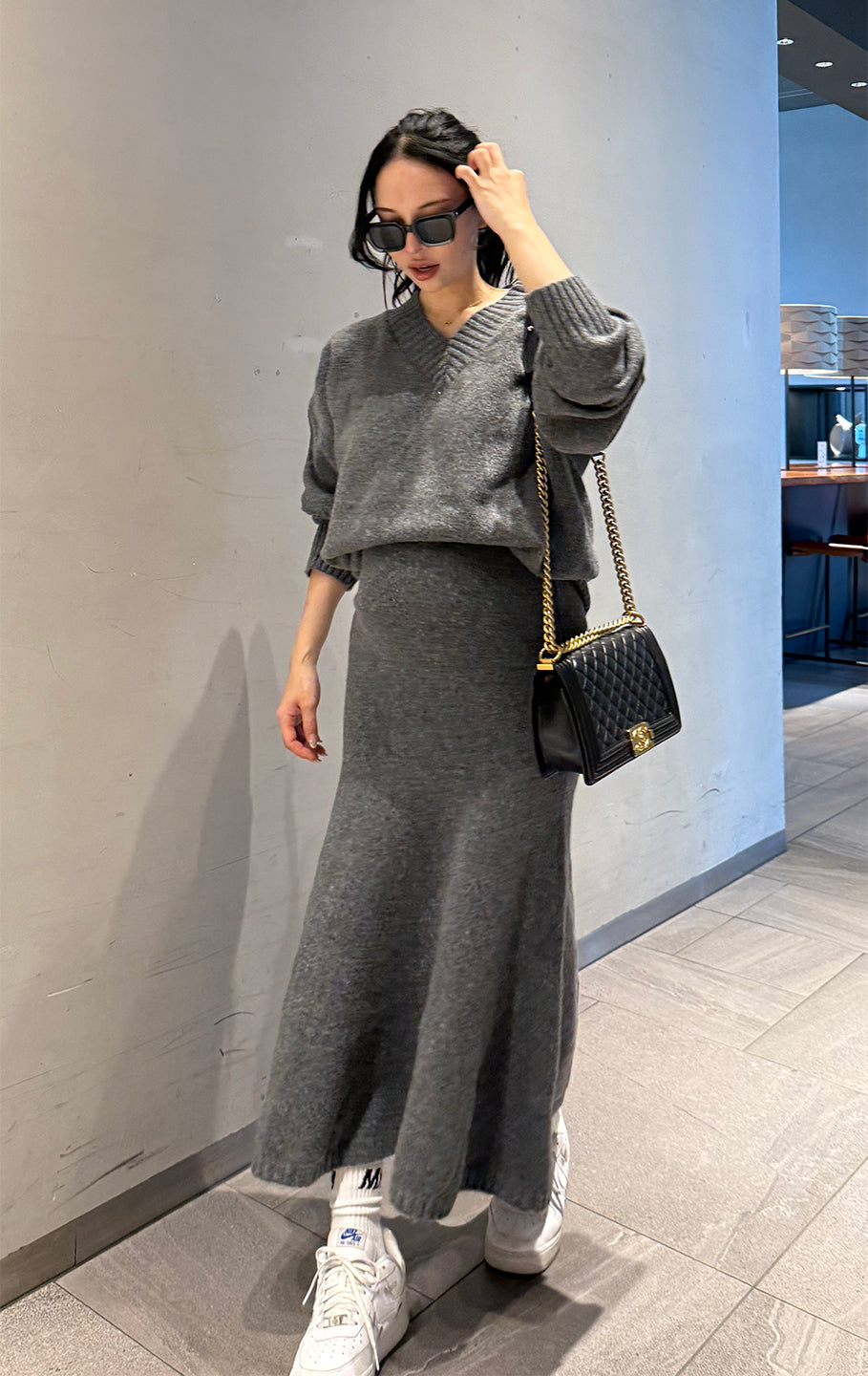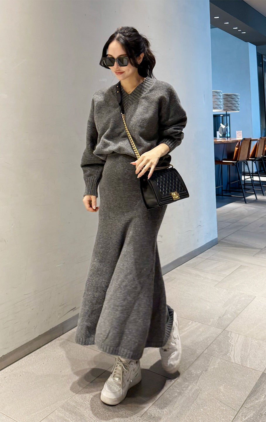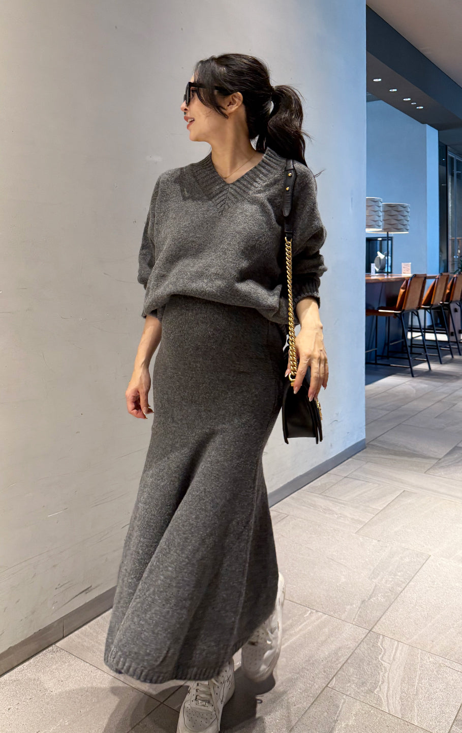 スカートにスウェットパーカーを合わせるコーディネートを真似してみましたがとても素敵です!