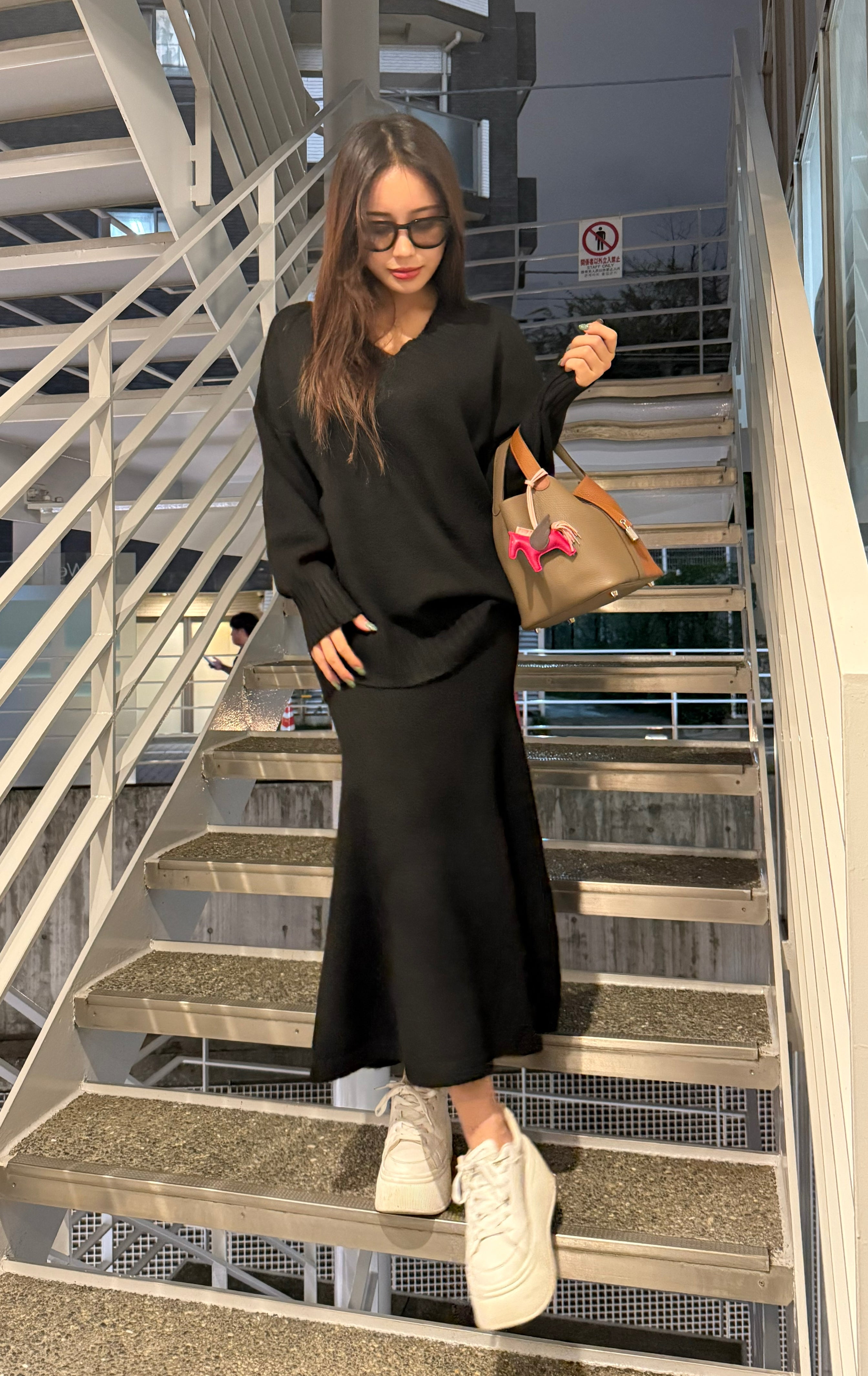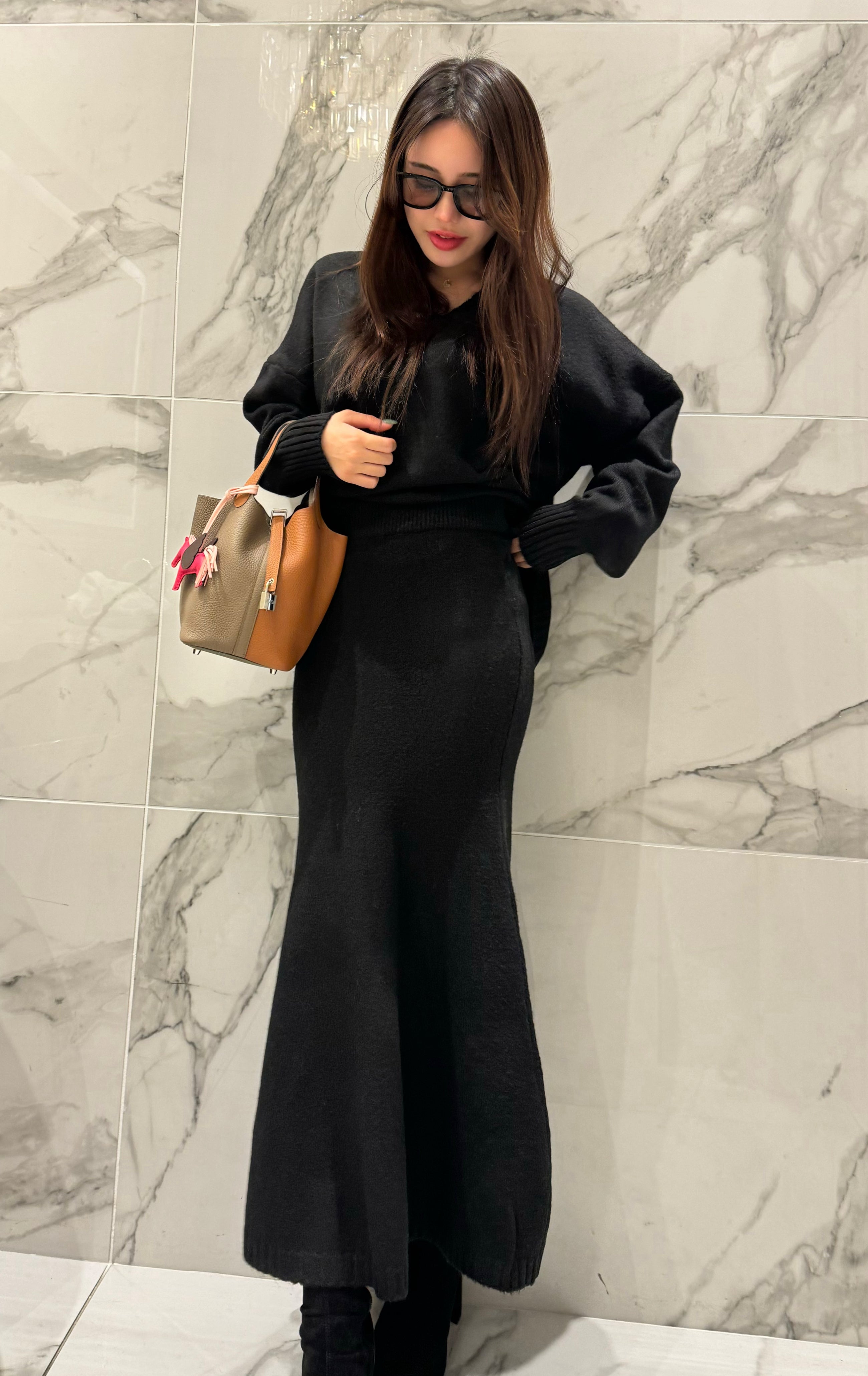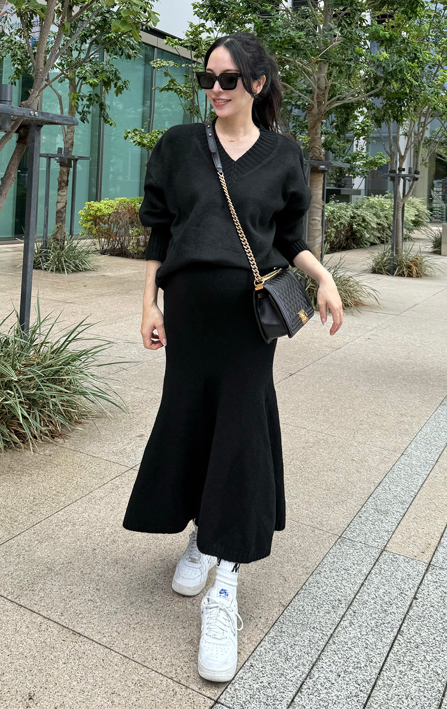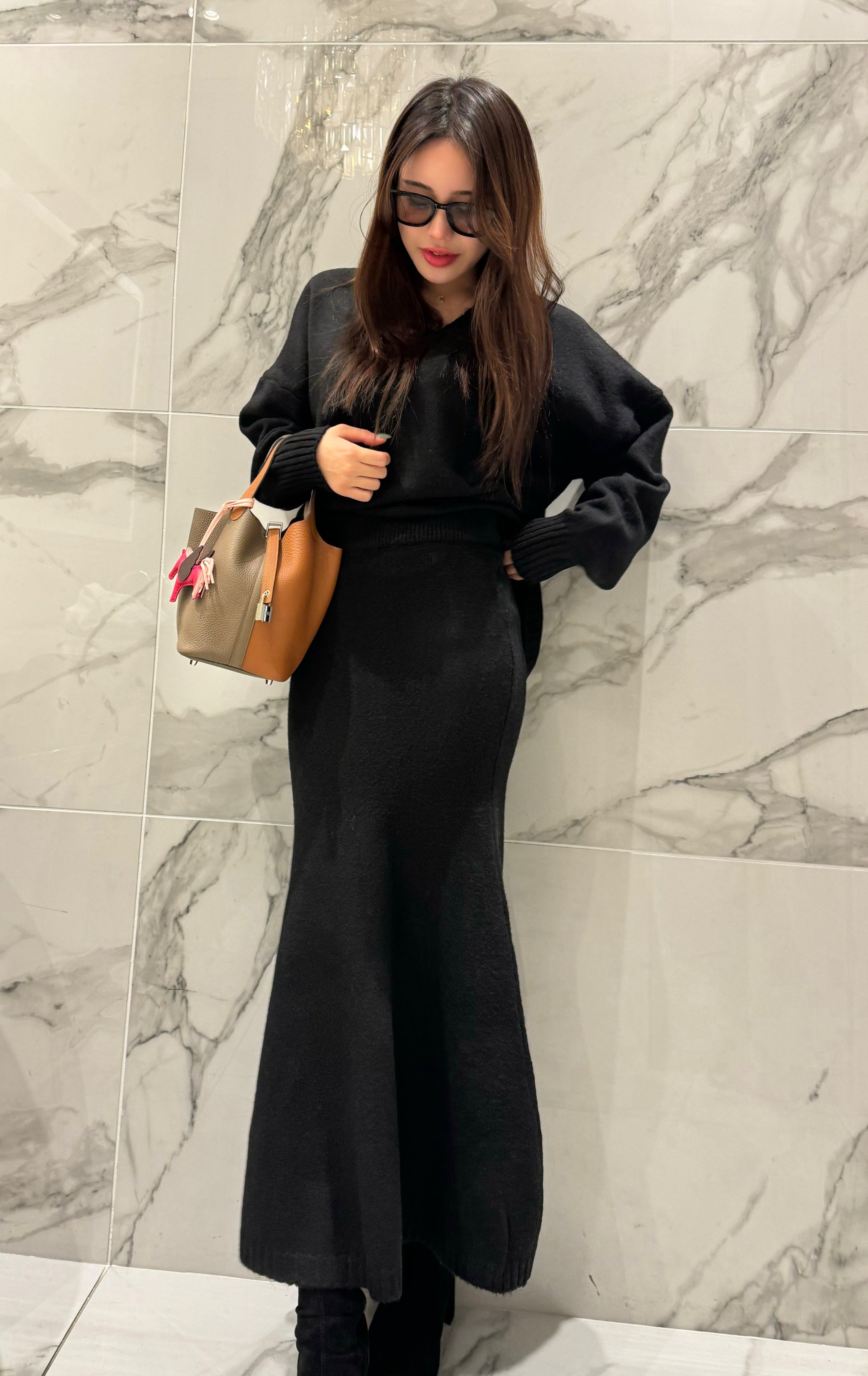 スカートにスウェットパーカーを合わせるコーディネートを真似してみましたがとても素敵です!
