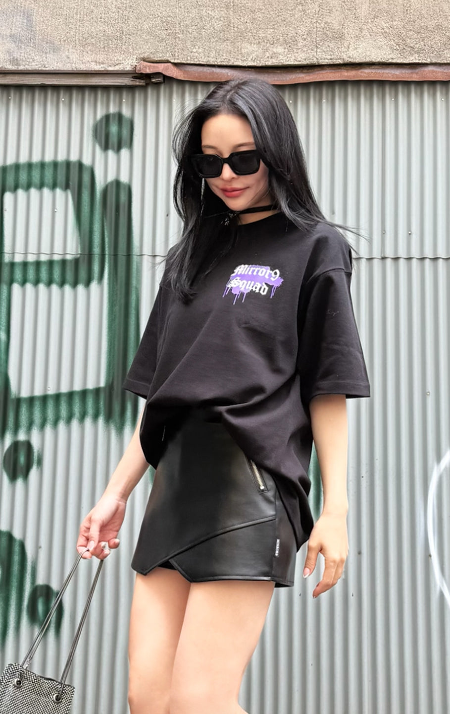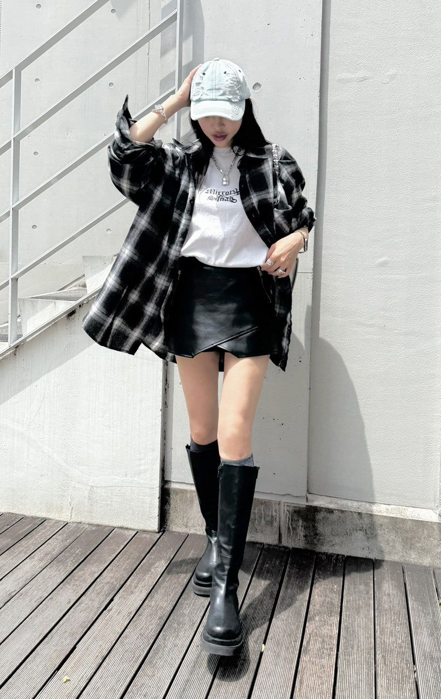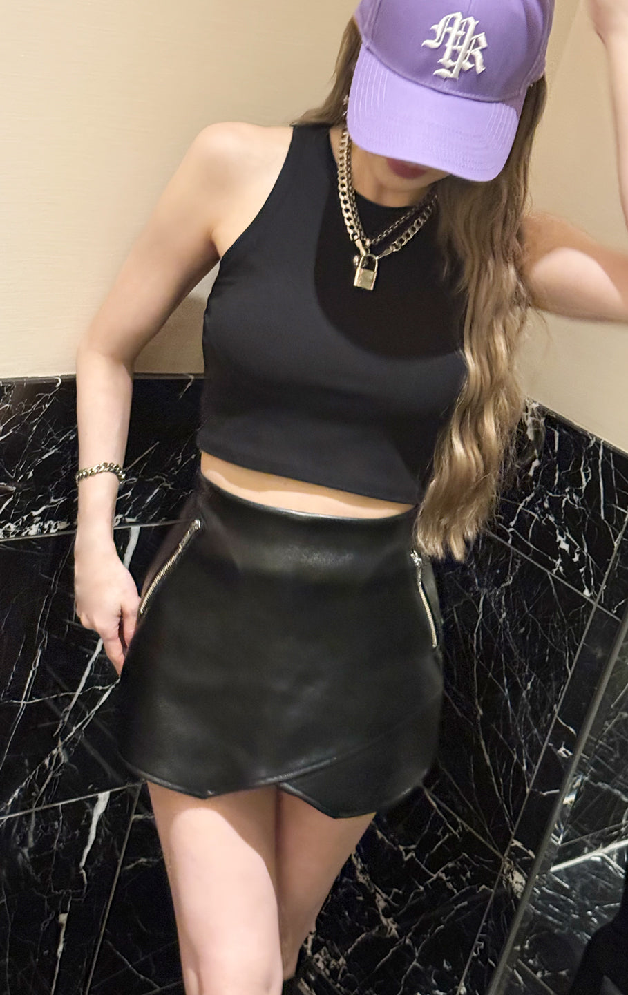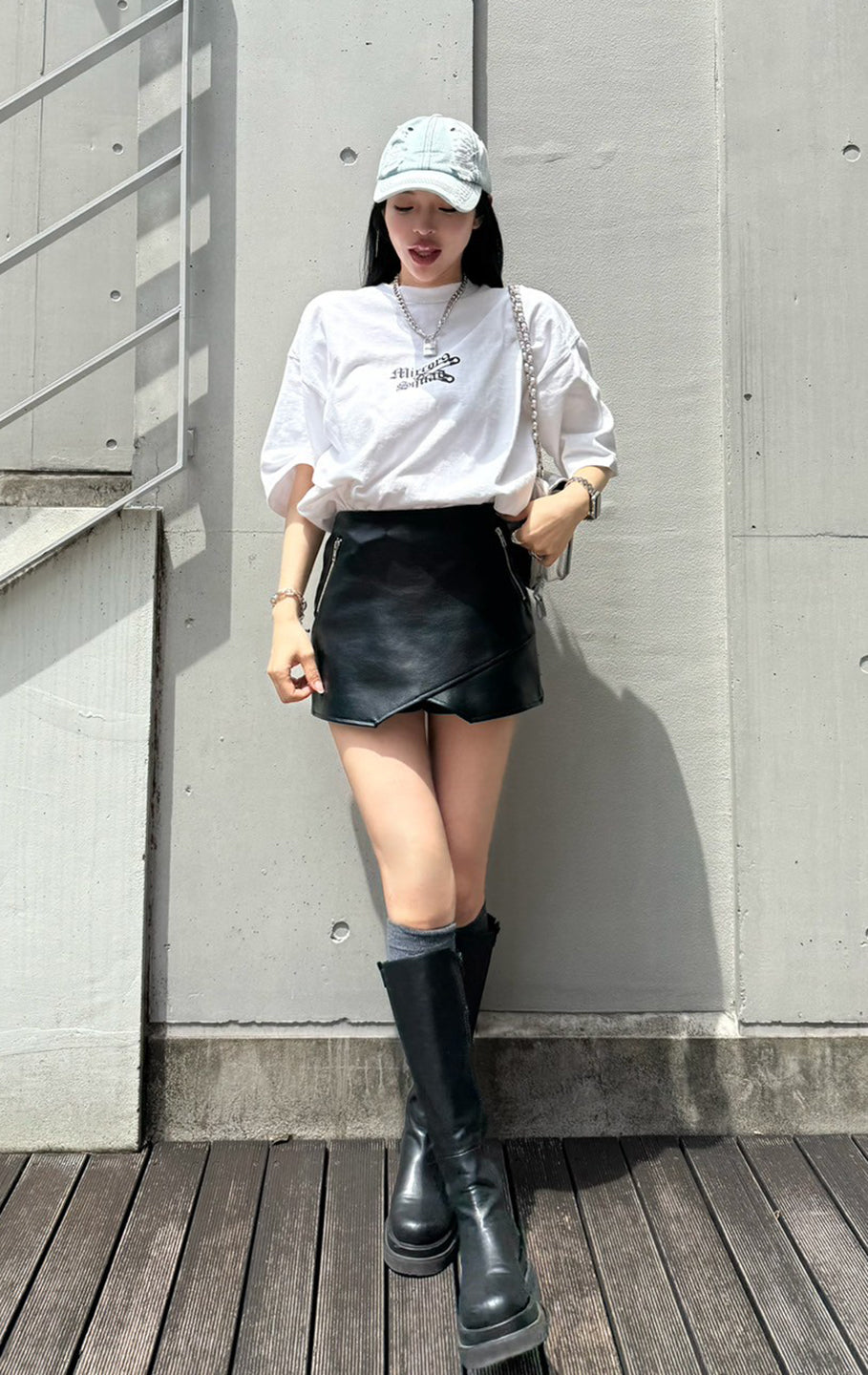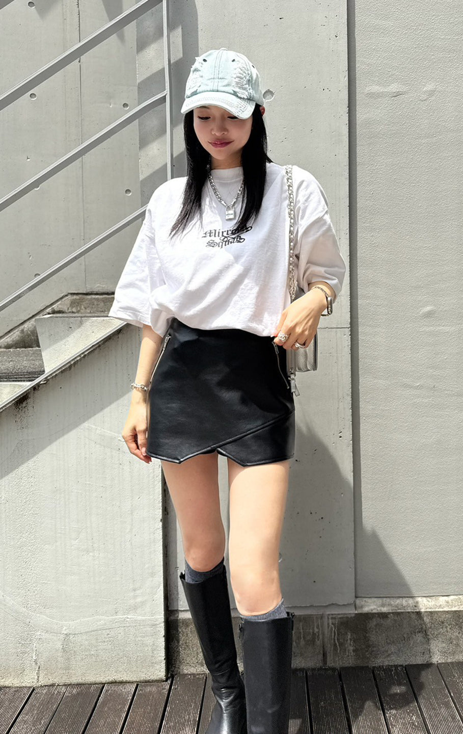 Fake leather skort