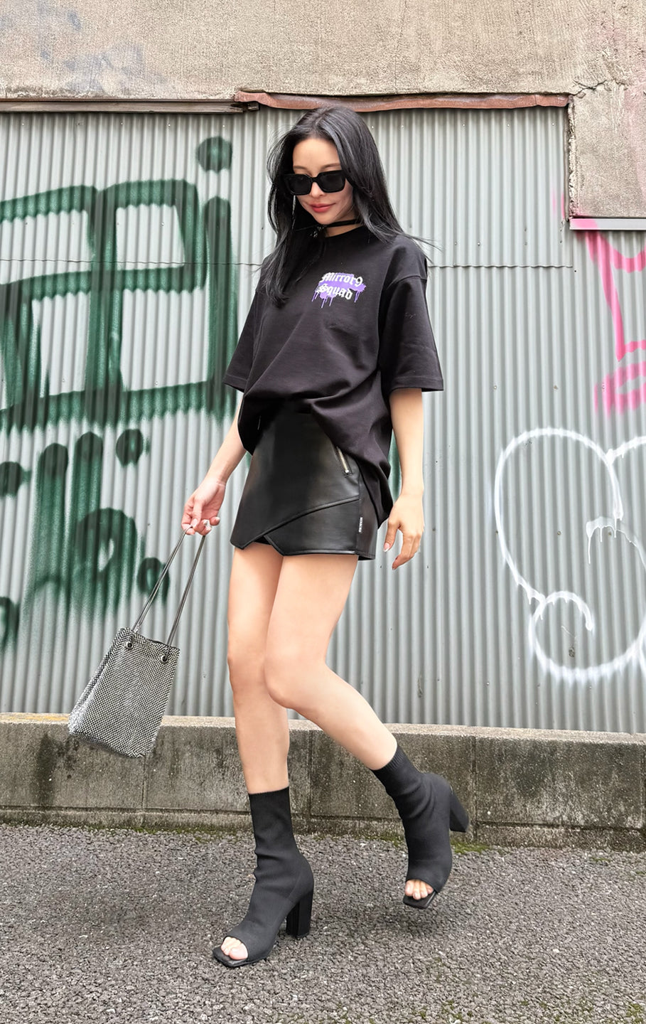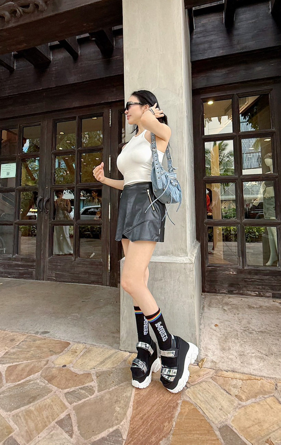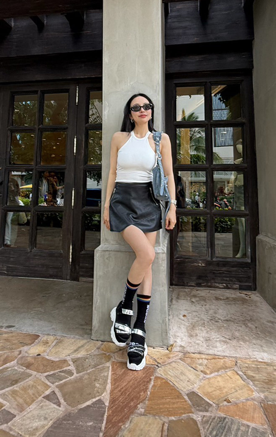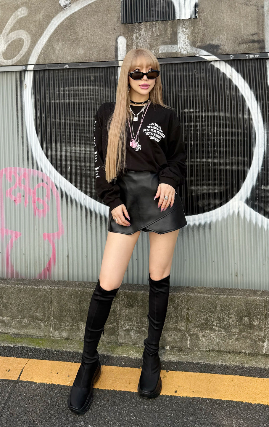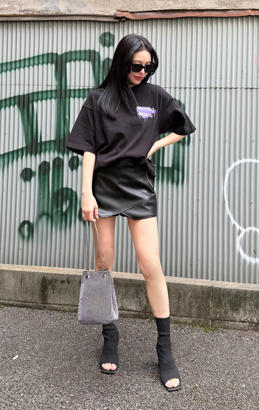 Fake leather skort
