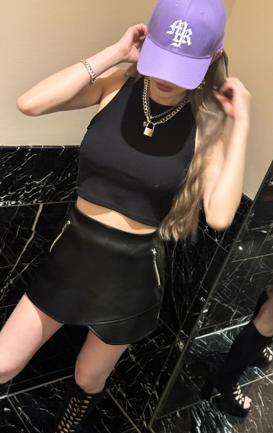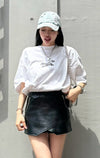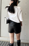 These skirt-like shorts are made of luxurious faux leather fabric. The back waist is elastic and easy to put on and take off, and when you put them on, they fit nicely, correcting your body line while creating a beautiful look.