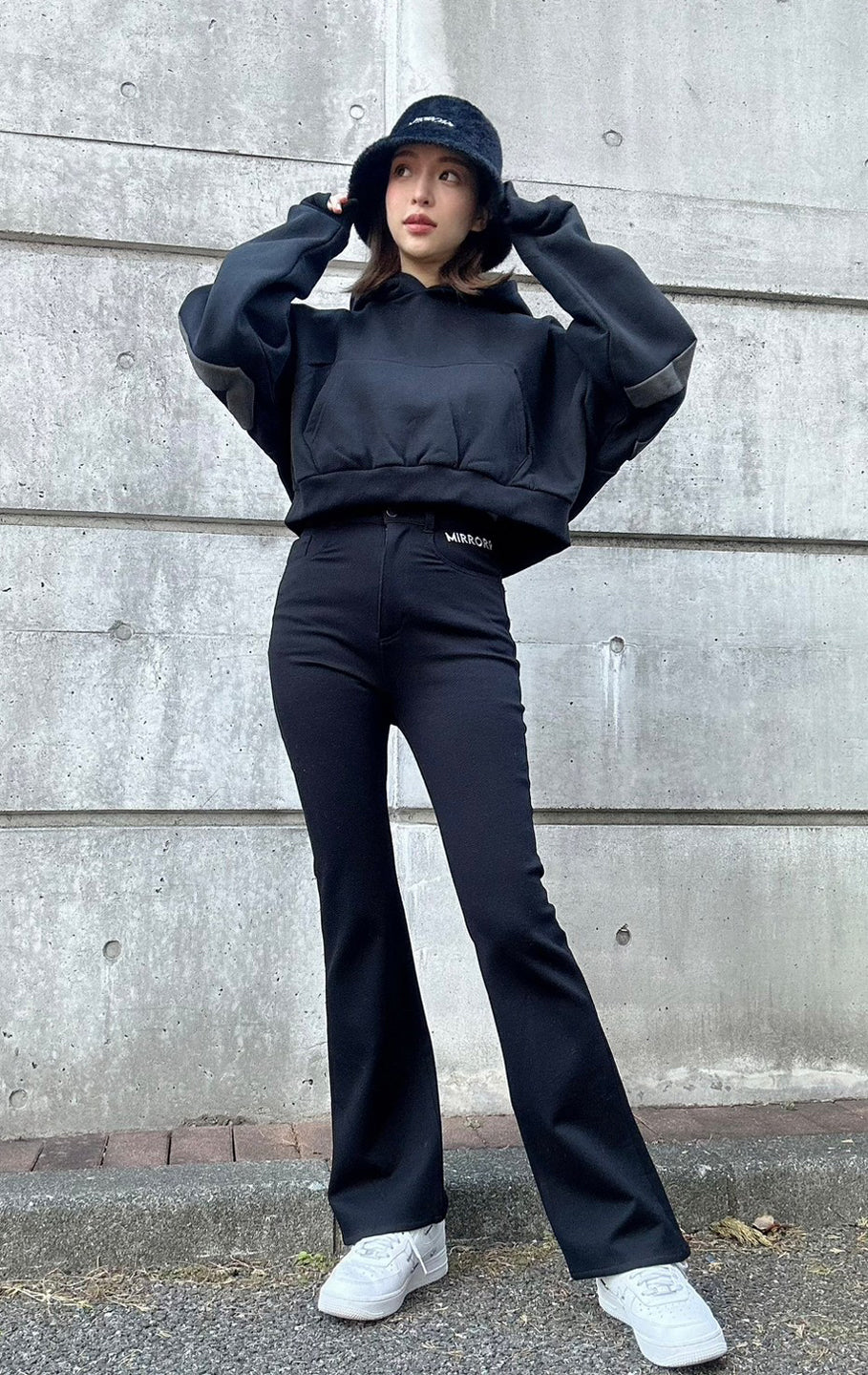 159cm、かなりのポチャですがハイウエストで伸縮性あるので、何とかウエスト入りました!(笑)