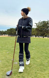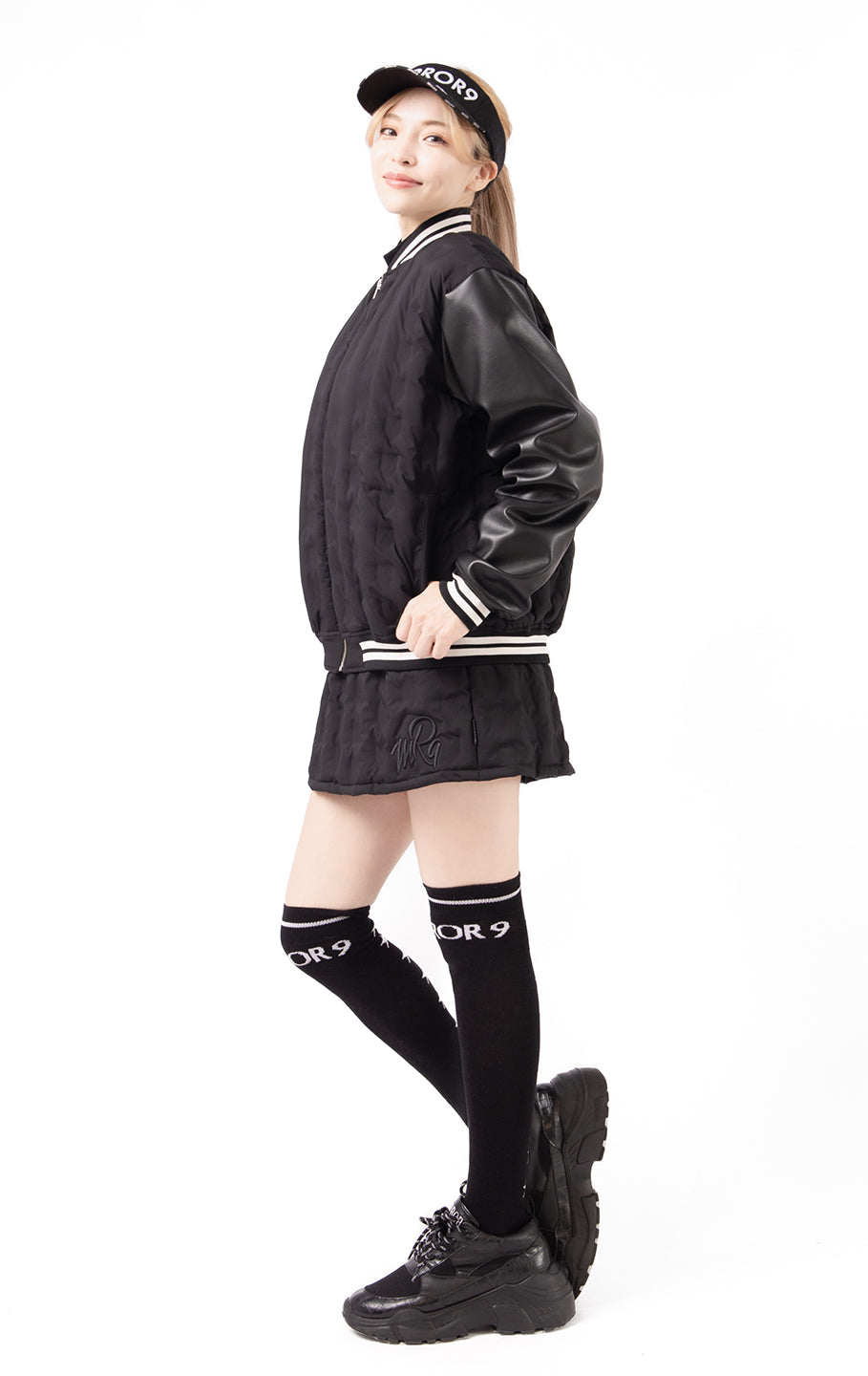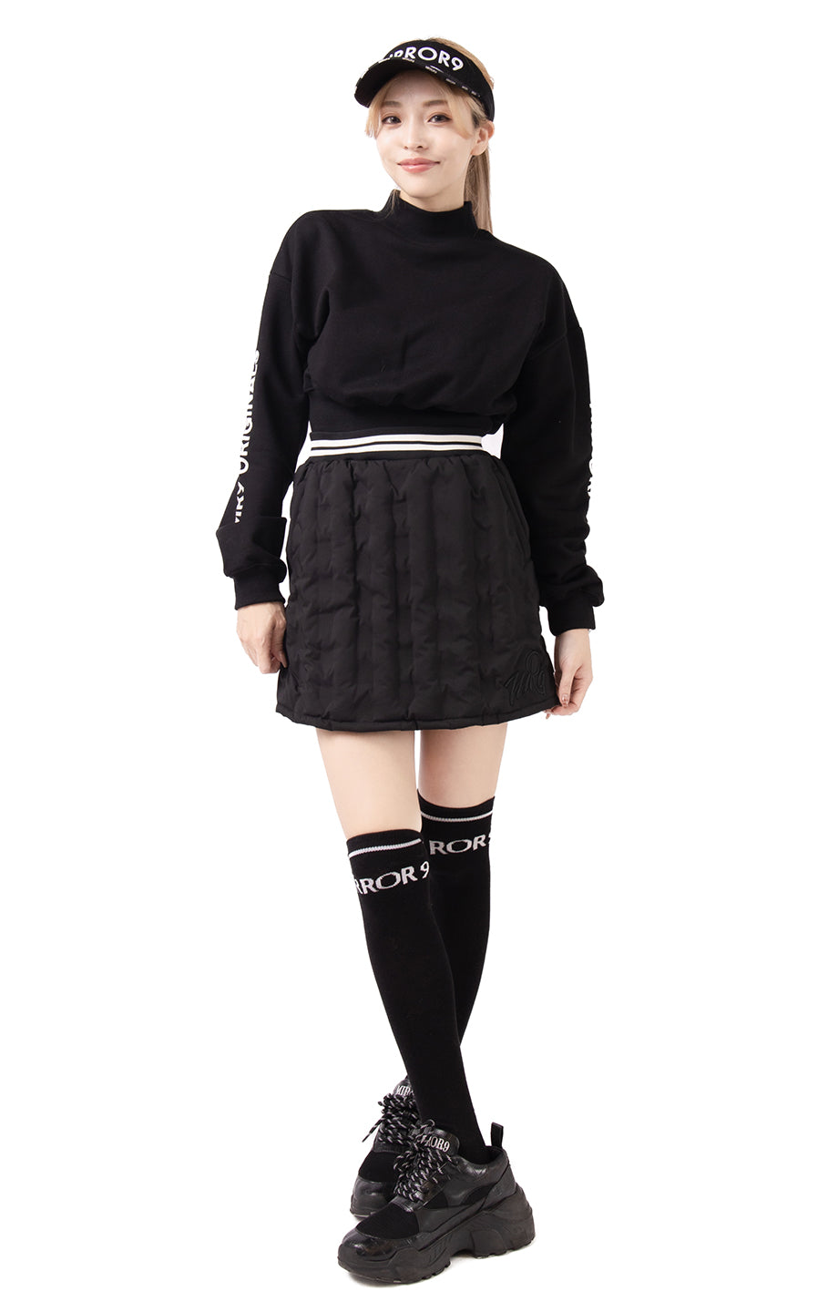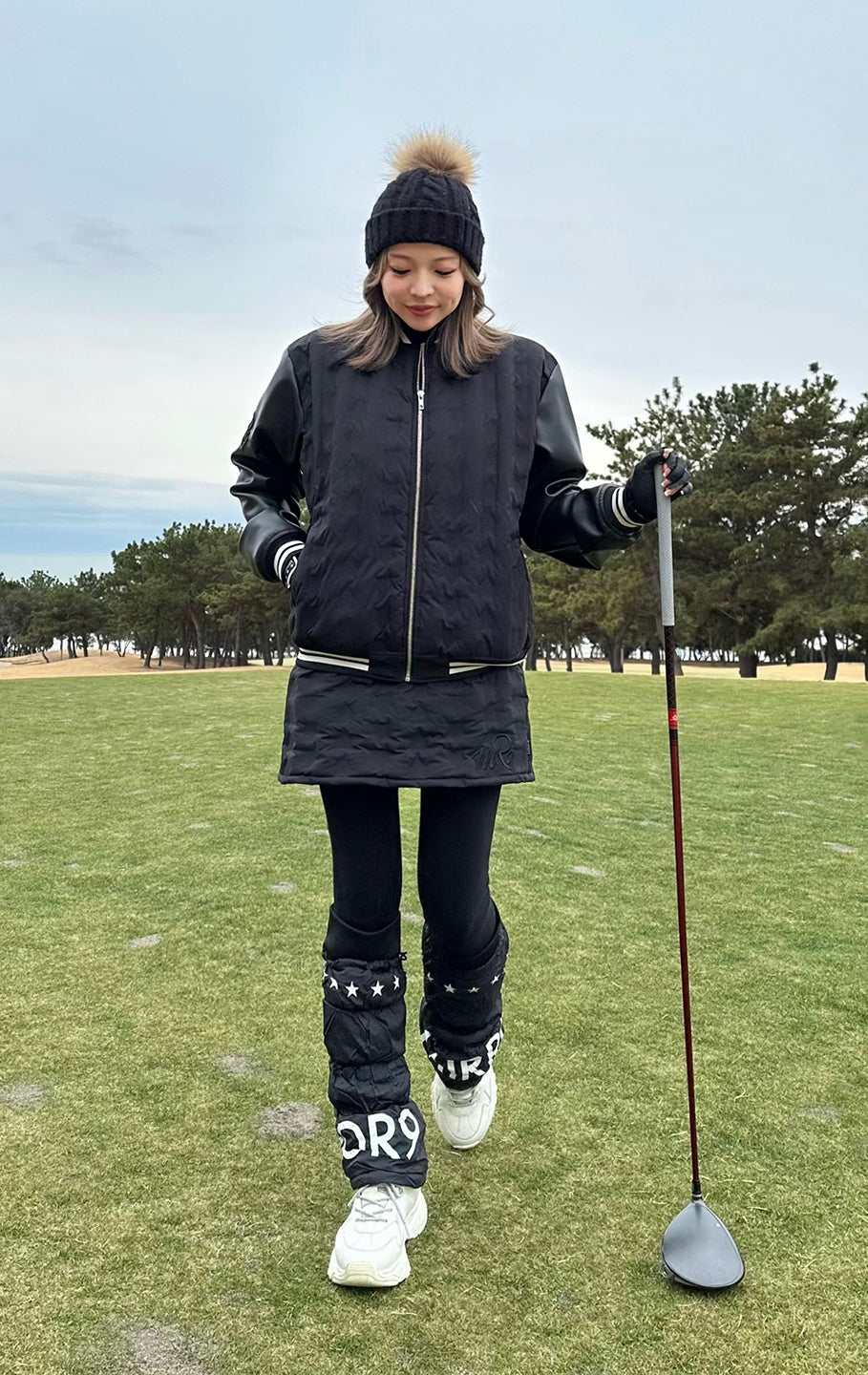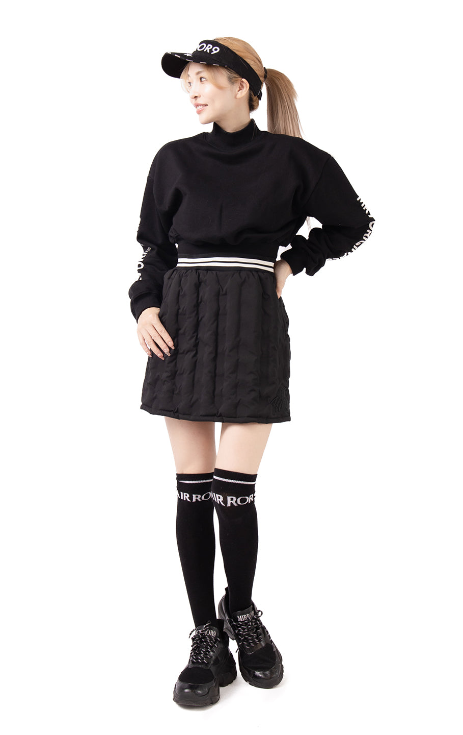 Light and warm, this is a padded skirt that is perfect for cold weather. It's sure to come in handy when it comes to regulating your body temperature during golf or other outdoor activities in the cold season! There is also a jacket with the same design, so you can wear it as a set. There are side pockets and a D-ring that allows you to attach a pouch. The waist is elastic and there is a string inside to adjust the size. There is a 3D logo on the hem.