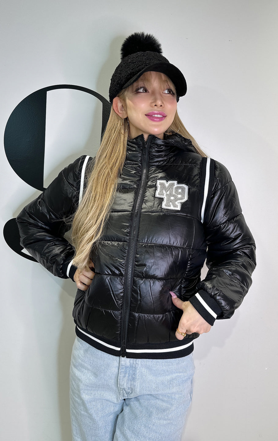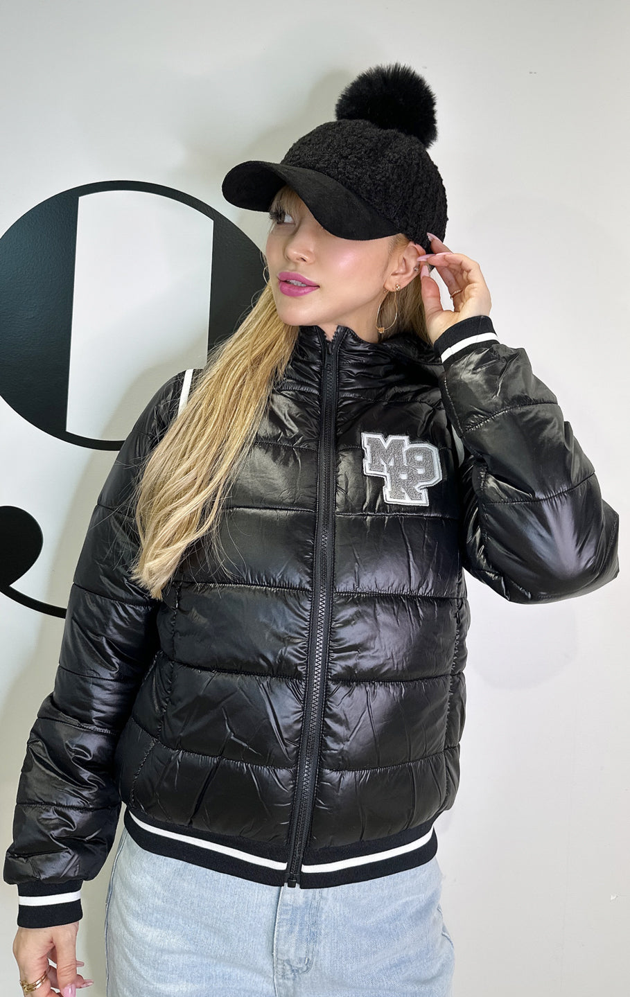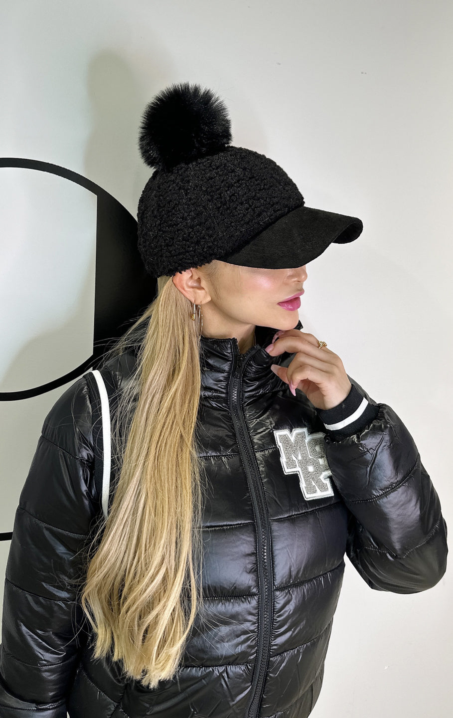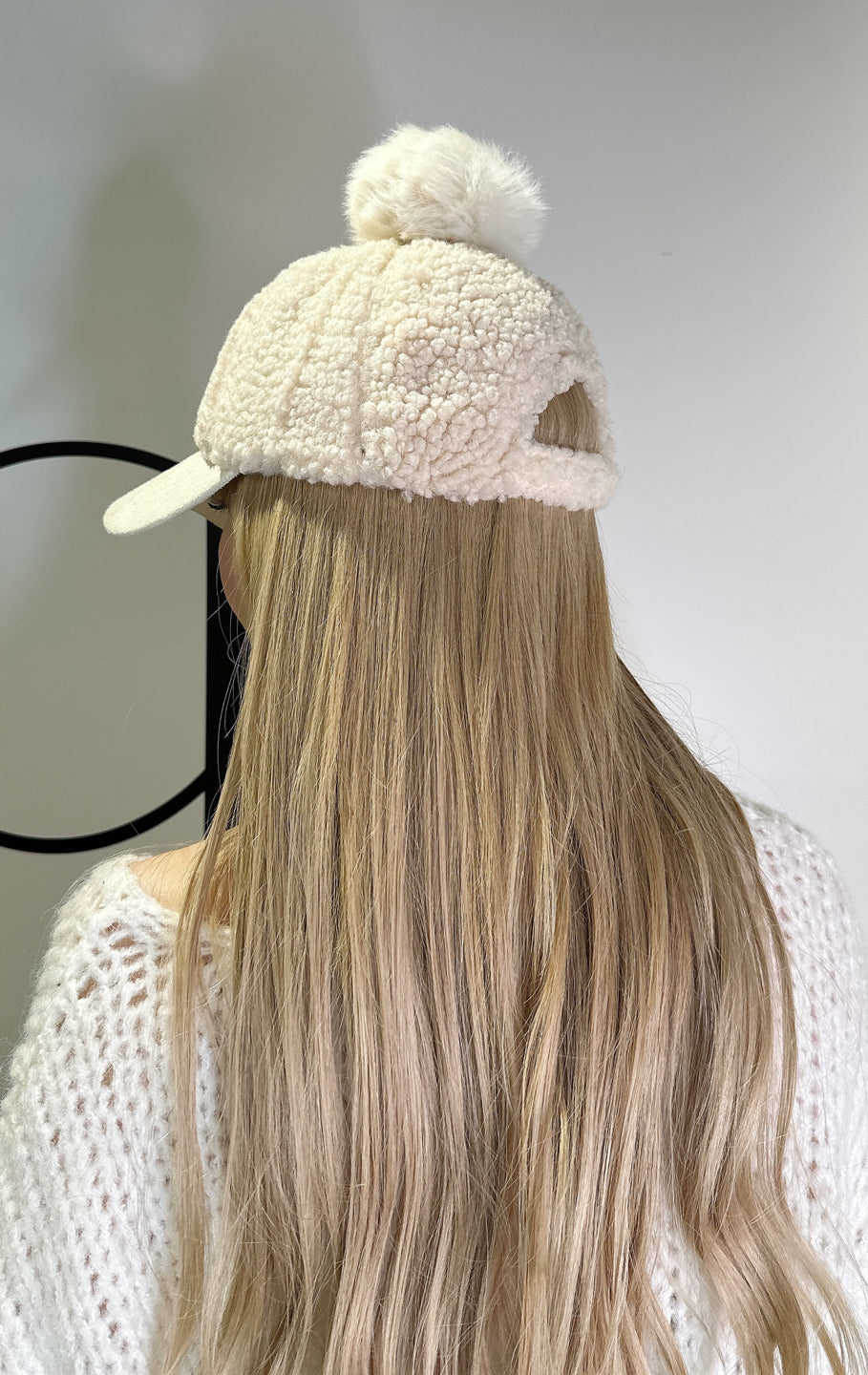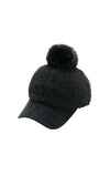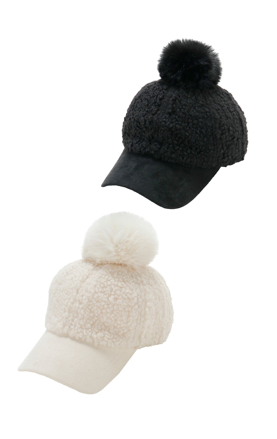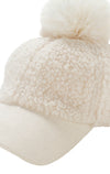 フェイクファーのボンボン付きボア素材のキャップです。
