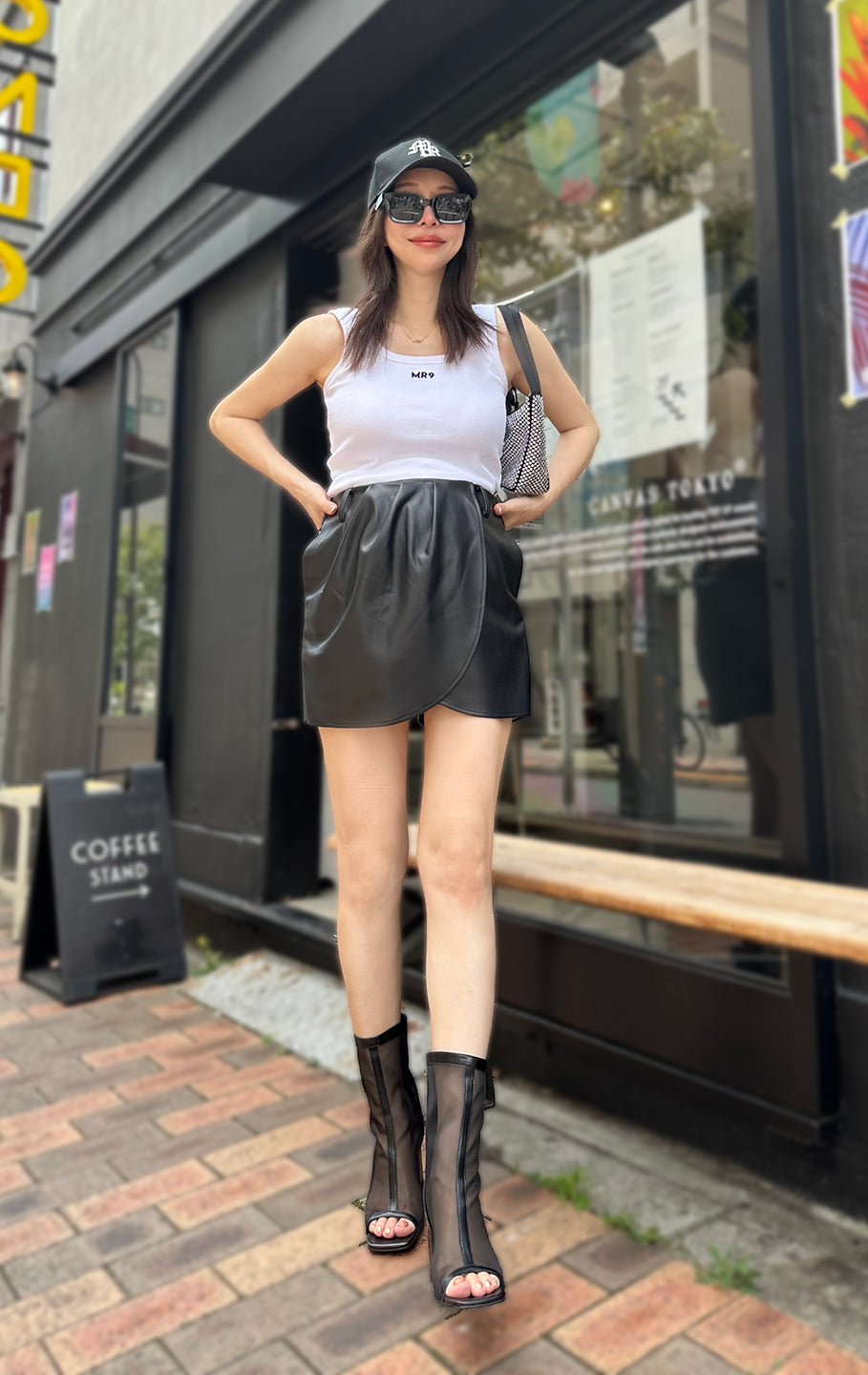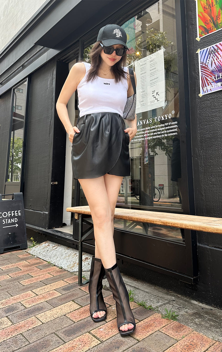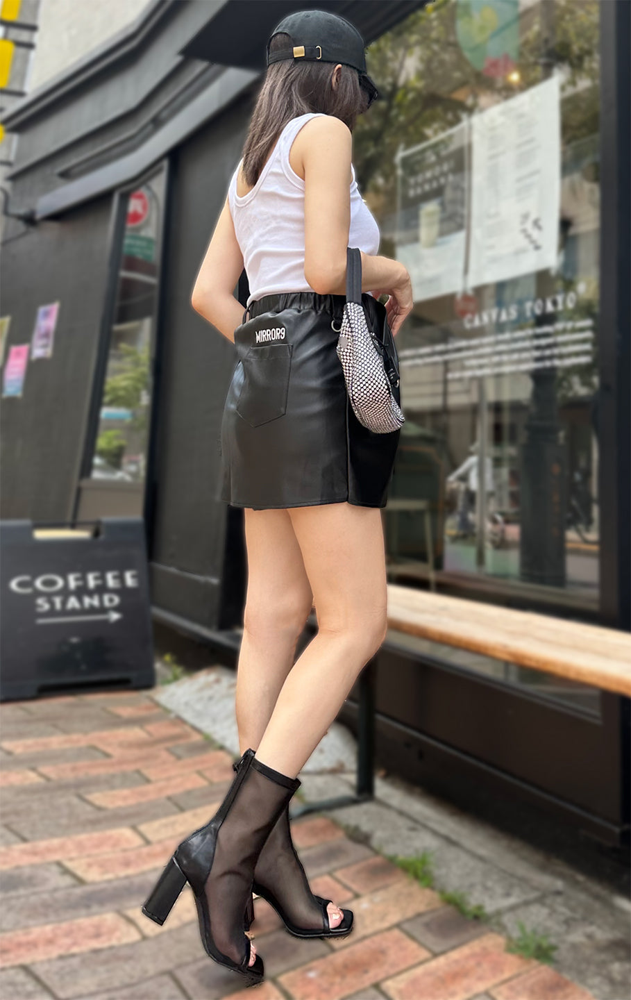 伸縮性のあるフェイクレザー素材で、快適に着用いただけます。
