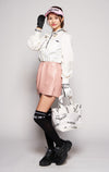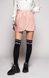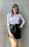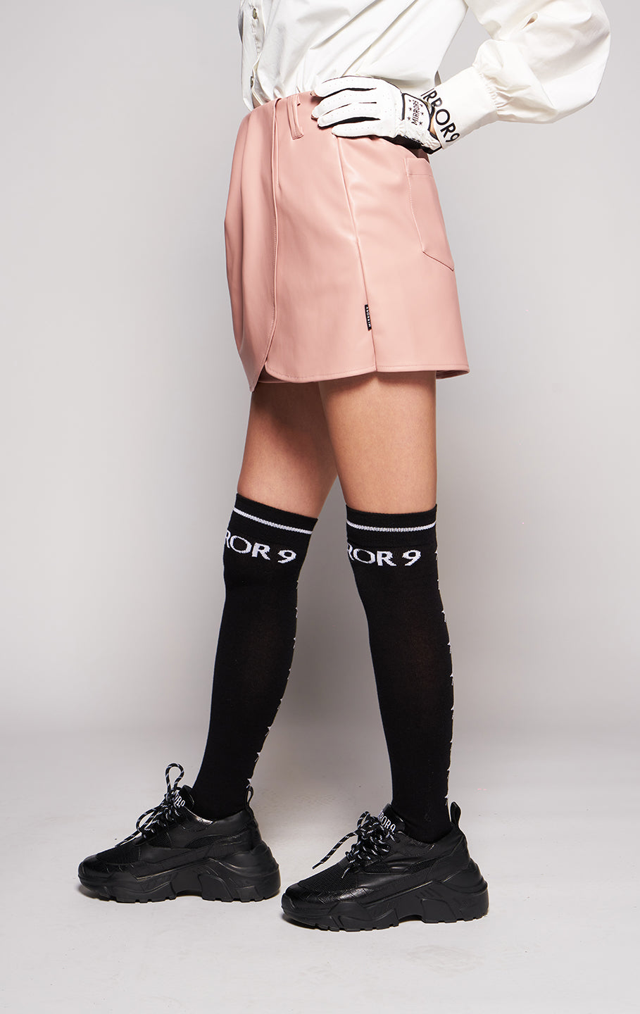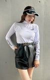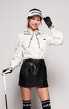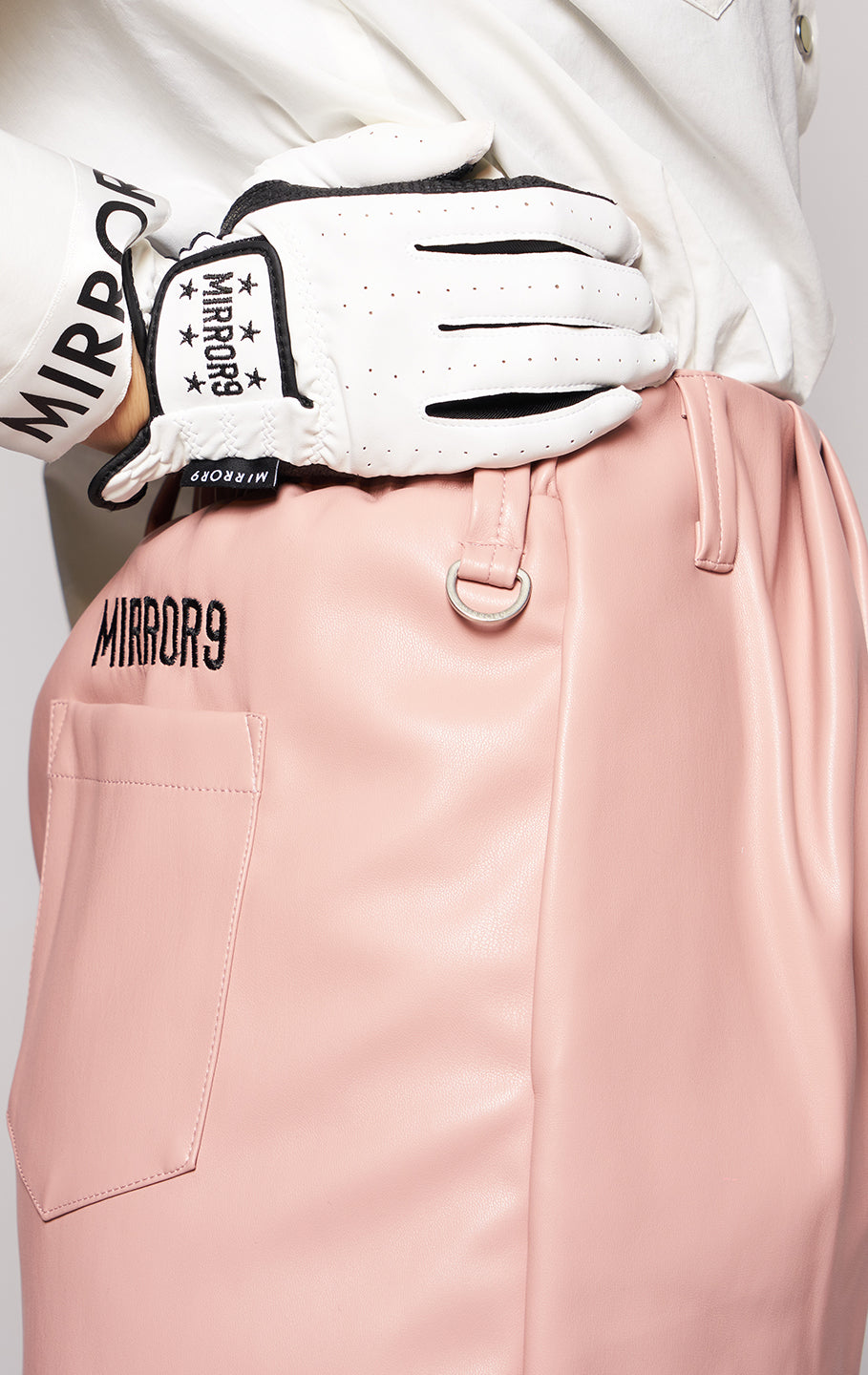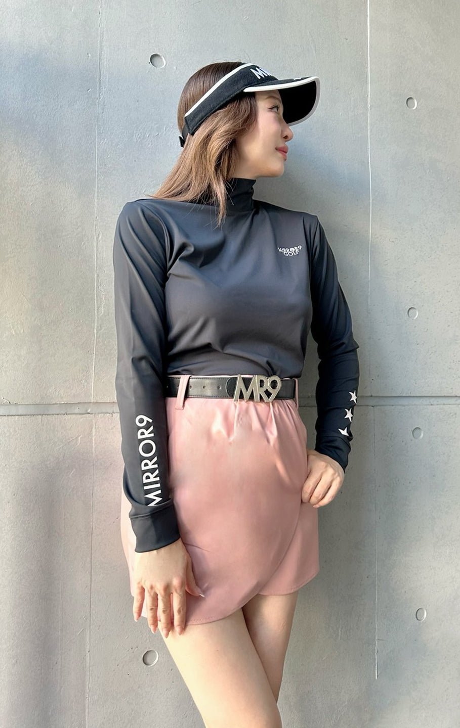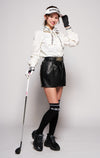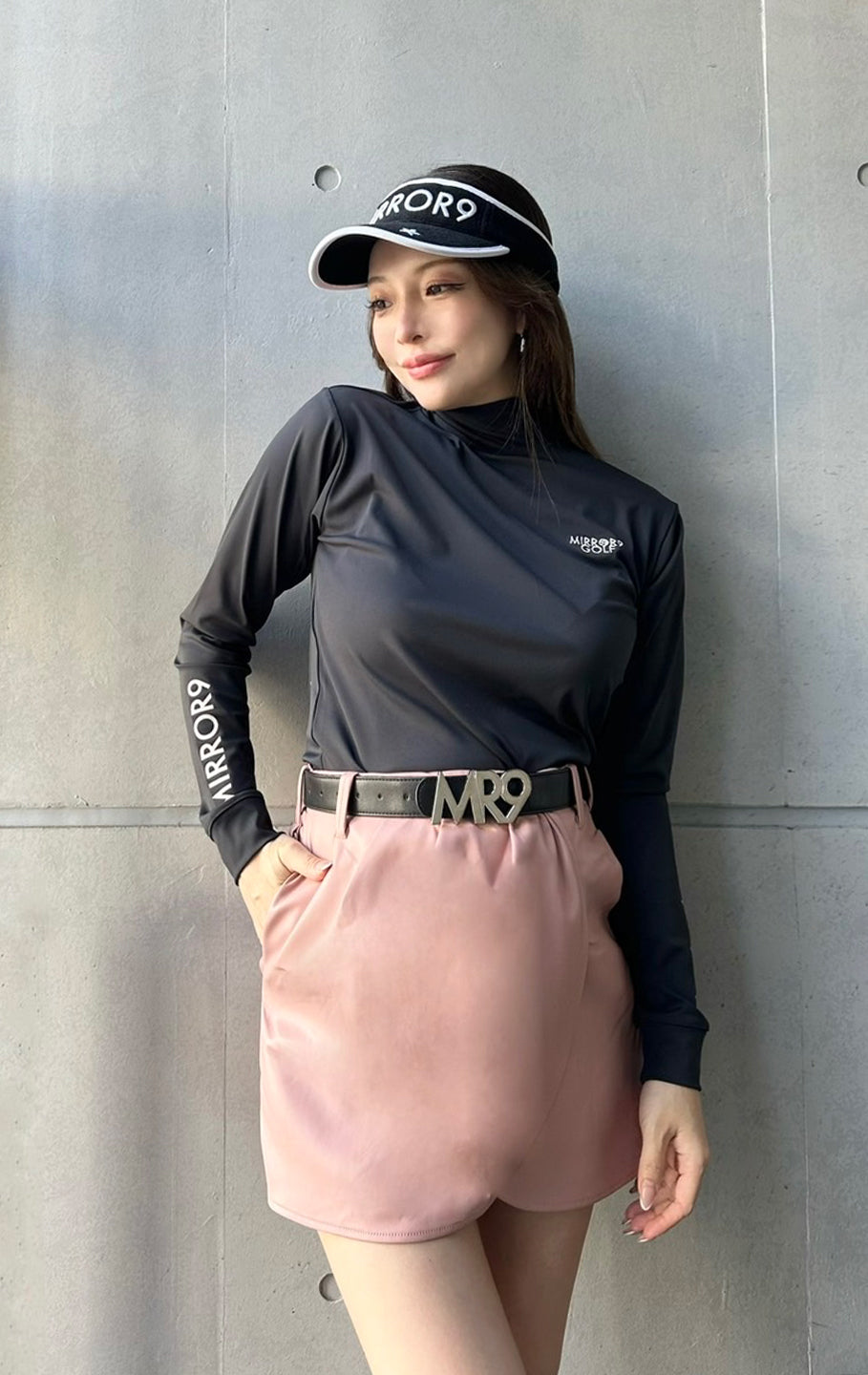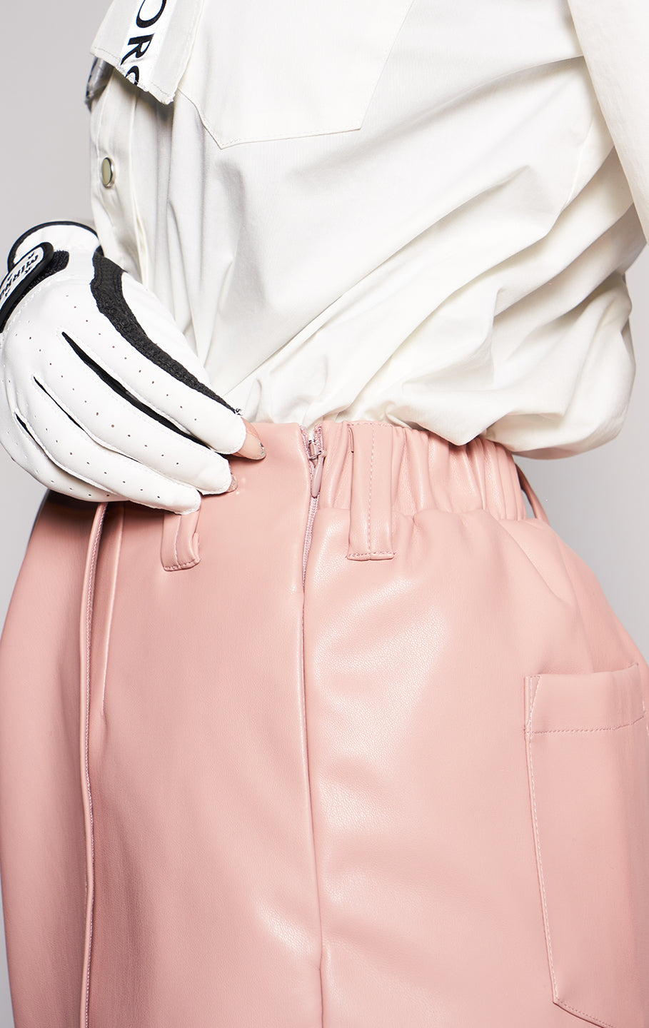 Made of faux leather with a brushed back, it's warm and stretchy, so you can enjoy playing golf comfortably. Underneath the skirt are shorts. There is also a belt loop, so if you have a large waist, you can wear a belt. It can be opened and closed with a side zip, and the back waist is elastic. Has pockets. Available in sizes up to L, so it can be worn by people of various sizes.