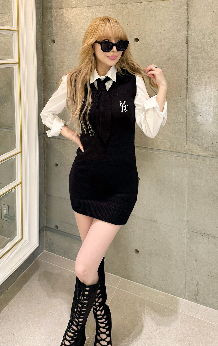 You can enjoy various styles with this dress-length vest. The tight silhouette will make you look more stylish.