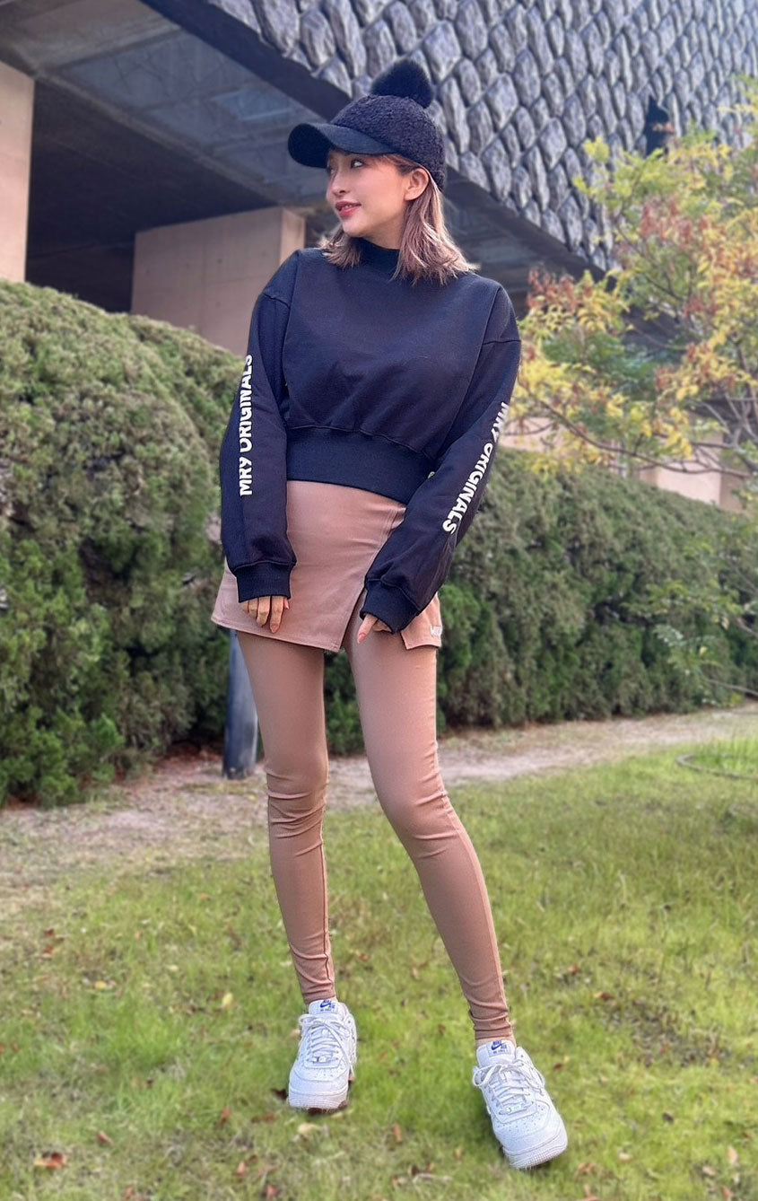 このSkirt layered leggingsは1つ持ってると、活躍しまくり、持ってるトレーナーに合わせてブーツ履いたらバッチし👌細く見える❣️