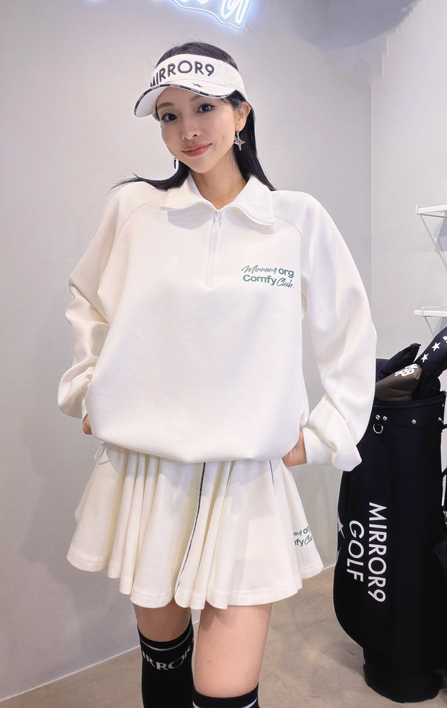 ハーフジップで着脱しやすく、アウター代わりにも使えます。