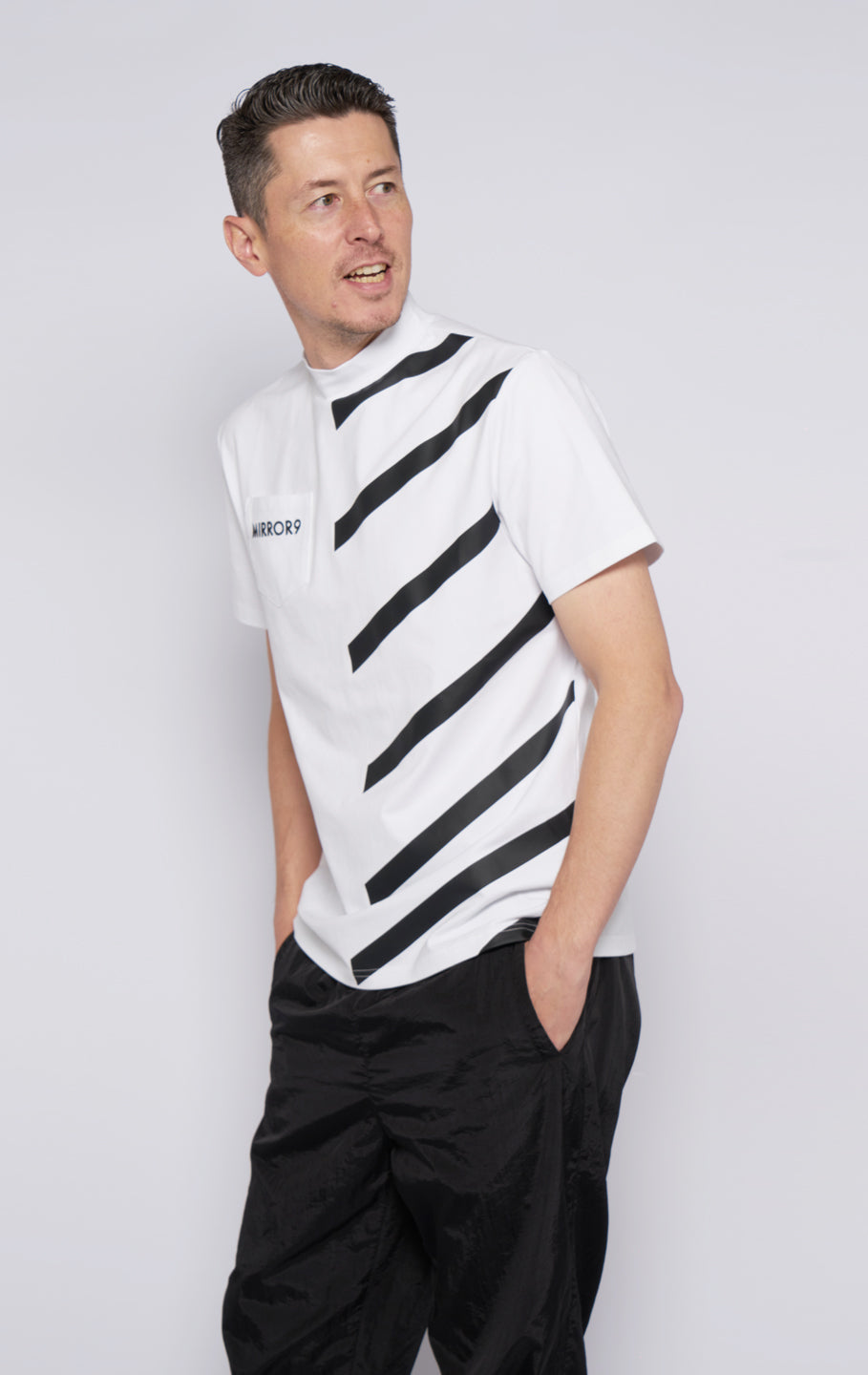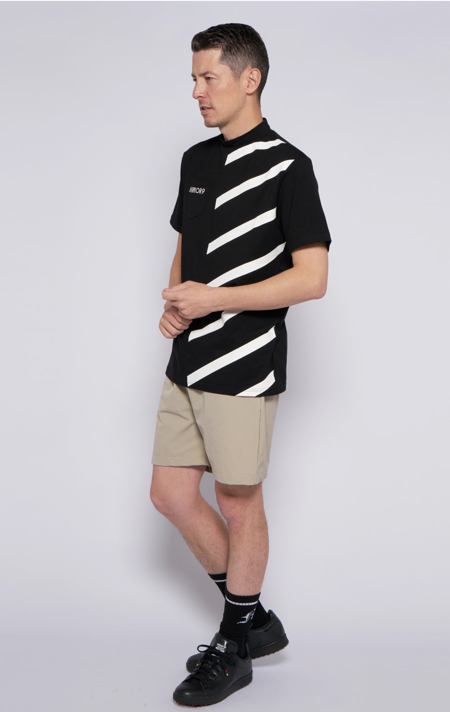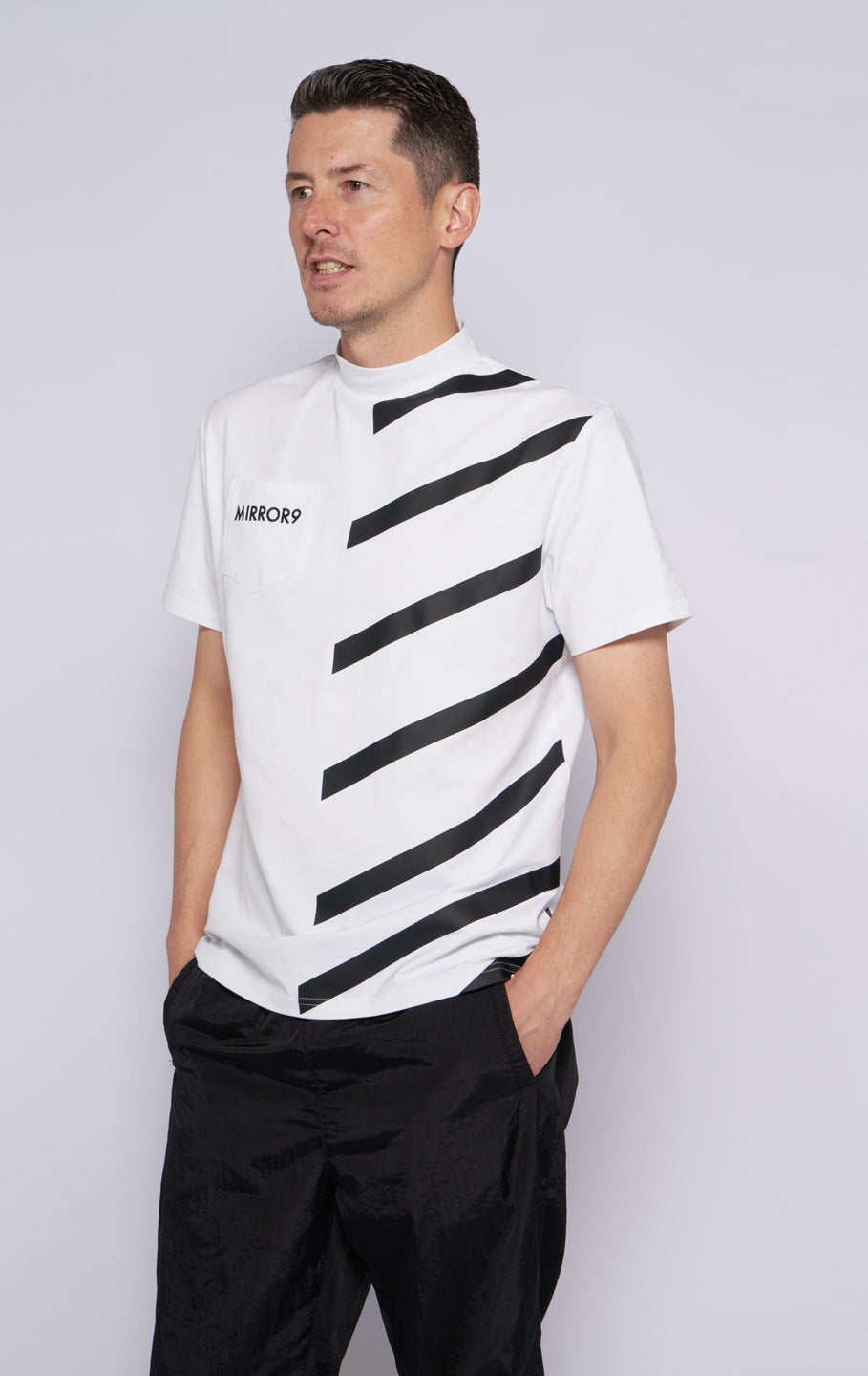 A top with a high neck design. A finely cut and sewn material with elasticity. We also have matching designs for women. The simple and eye-catching half-border pattern makes it easy to coordinate with any bottom. *This product may pill due to scratches or friction. Thank you for your understanding as there may be individual differences in forms etc. As stated in the shopping guide, we do not accept exchanges for all tops products as there is a risk that foundation may get on them when you try them on. Please understand this before purchasing.