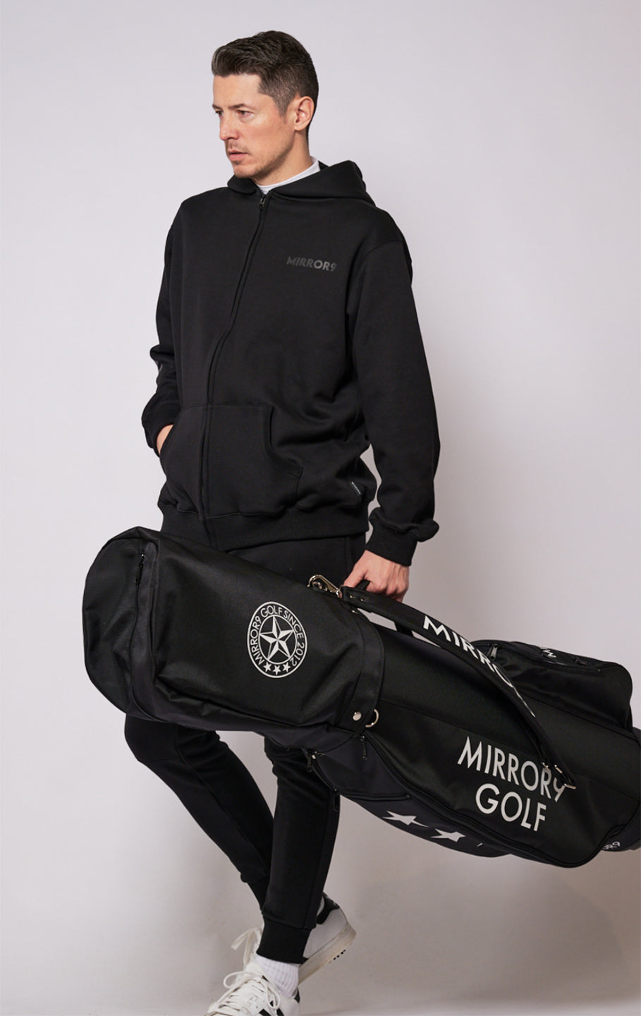 お揃いでスウェットパンツもございますので、セットアップで着ていただくと、ゴルフシーンにはもちろん、様々なシーンでお使いいただけます。