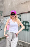 This tank top is made of sturdy ribbed material. Even though it's white, it's not see-through so you can wear it with confidence. The shoulder cloth is thick so you can wear it without worrying about your underwear strings.