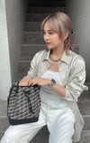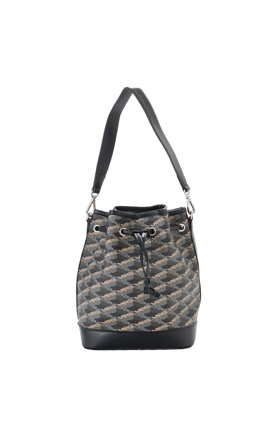 *All sale/outlet items cannot be returned or exchanged. Please understand this before purchasing. *As this is a sale item, we cannot accept returns or exchanges due to minor scratches or dirt. (We do not accept exchanges for sale items that are in good condition.) A drawstring bag with an original monogram pattern. Tie it with a string to open and close it. The fabric is made of canvas with a full rubber print. The bottom, strap, and opening/closing cord are made of synthetic leather. Although it looks compact, it has a large gusset and storage capacity. It comes with two types of straps and can be used as a handbag or a shoulder bag.