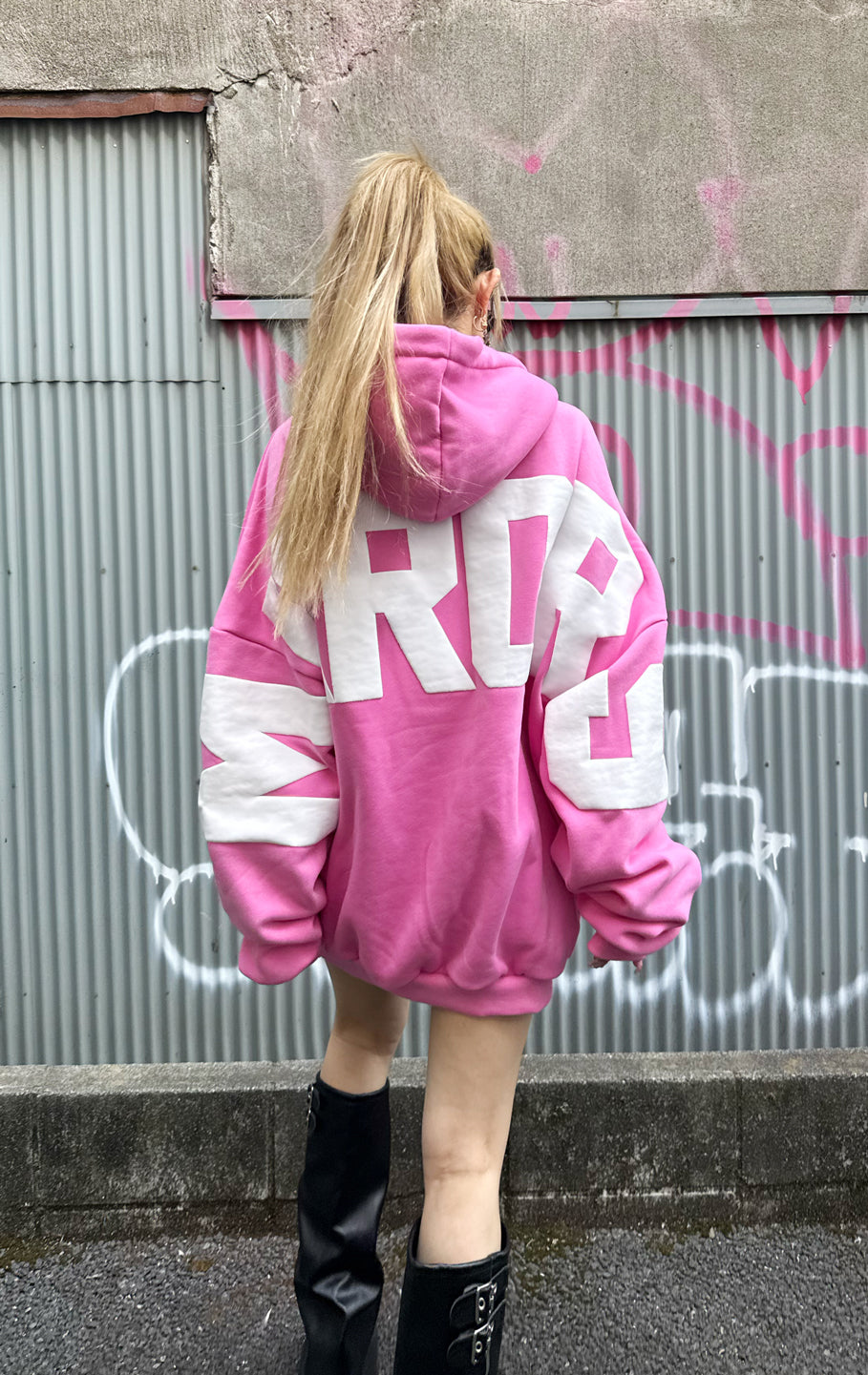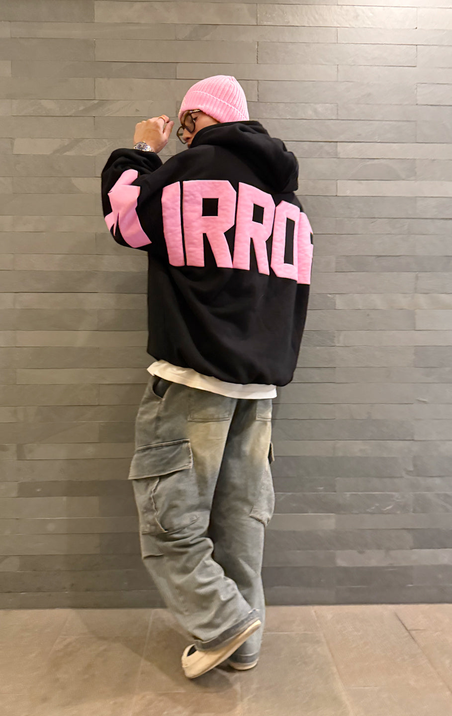 シンプルなフロントとインパクトのある背中のプリントでコントラストが際立つデザインのアイコンフーディーです。