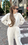 柔らかい伸縮性のある裏起毛のスウェット素材で、着心地は驚くほどあたたかく軽やか!