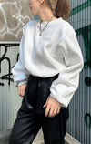 Made of soft sweatshirt material with brushed lining, it feels surprisingly warm and light to wear! It's just the right thickness for easy movement, and is sure to be a great item as daily wear in winter. The shoulders have soft padding to help maintain a beautiful silhouette line. A versatile item that can be coordinated with high-waisted pants from the same series for a well-balanced look! The 3D embroidered logo gives it a luxurious feel. The white color is just the right thickness and has a loose feel, so it doesn't feel see-through. As stated in the shopping guide, we do not accept exchanges for all tops products as there is a risk that foundation may get on them when you try them on. Please understand this before purchasing.