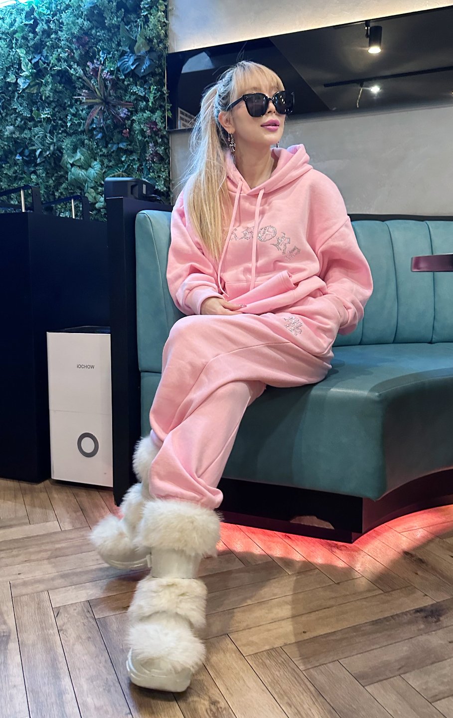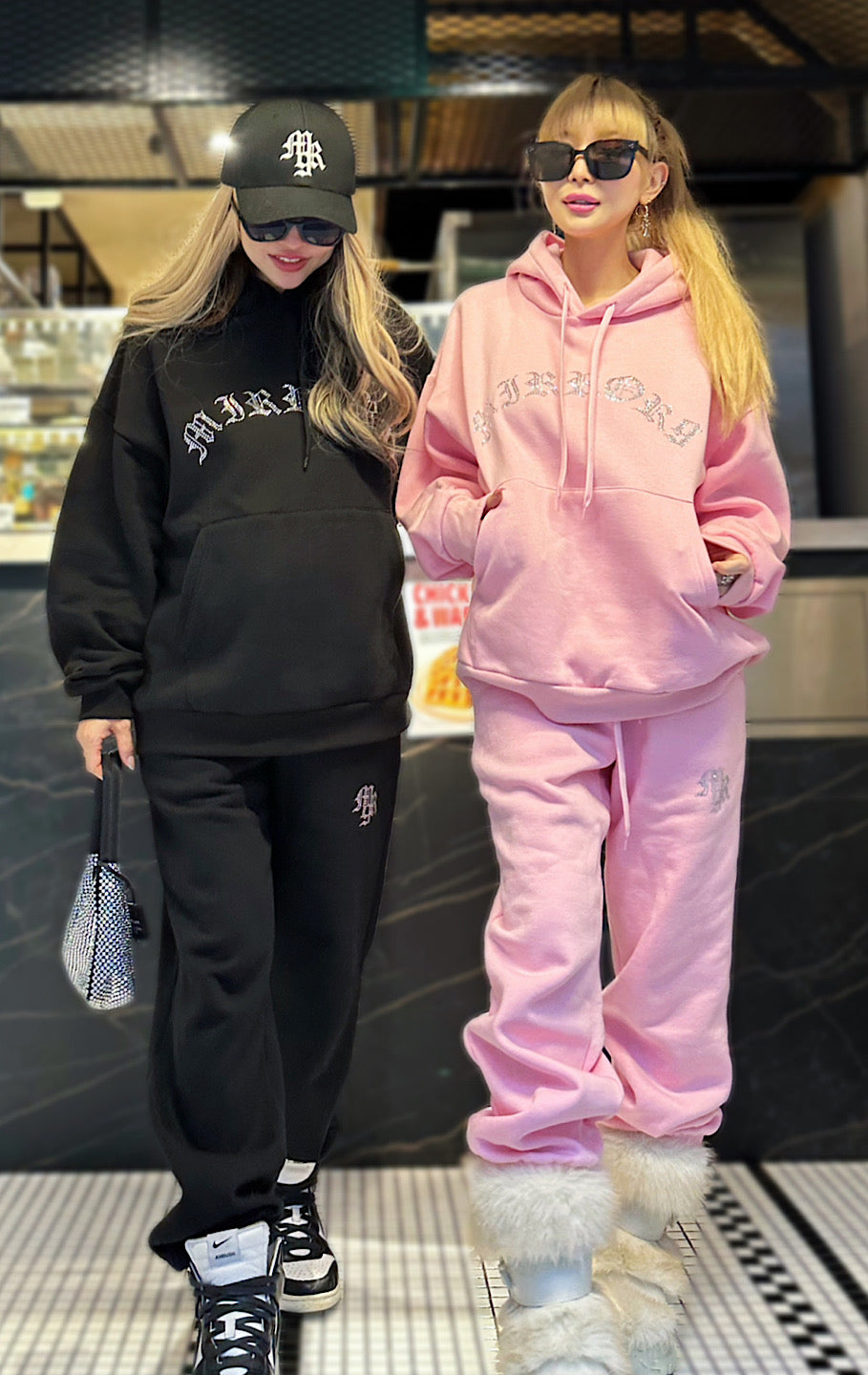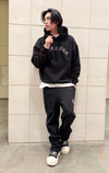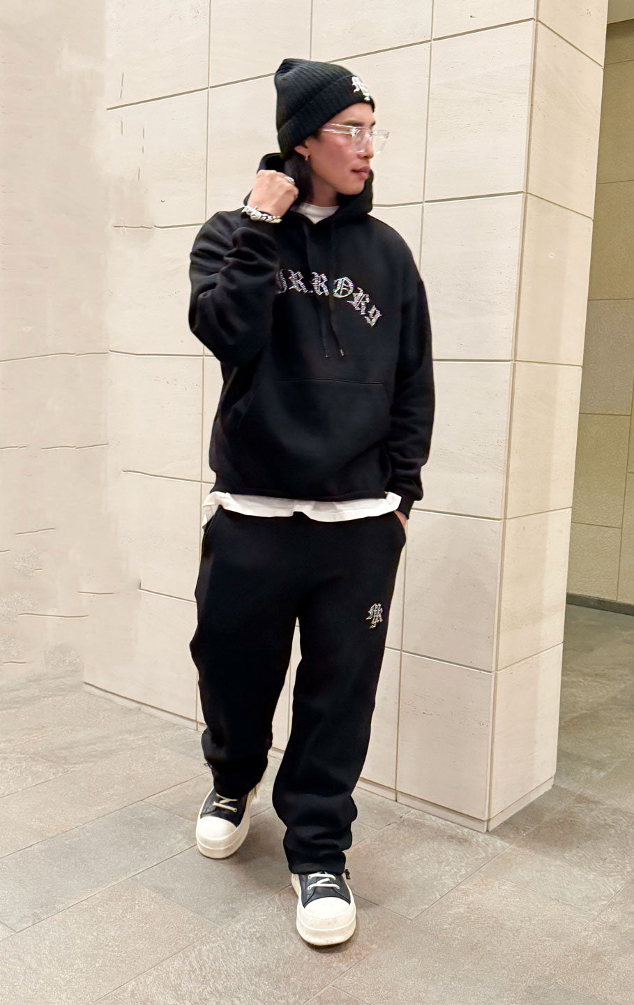 パーカーも着丈が長いので、私の身長だとパンツのキラキラが隠れてしまいますが、大きすぎておかしいって事もなくセットアップとして着れます。