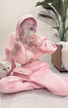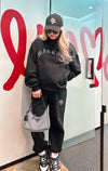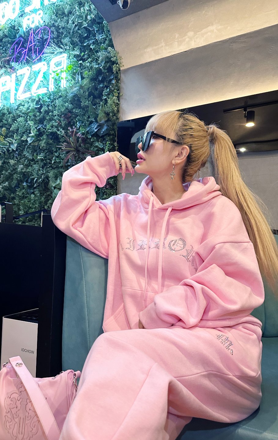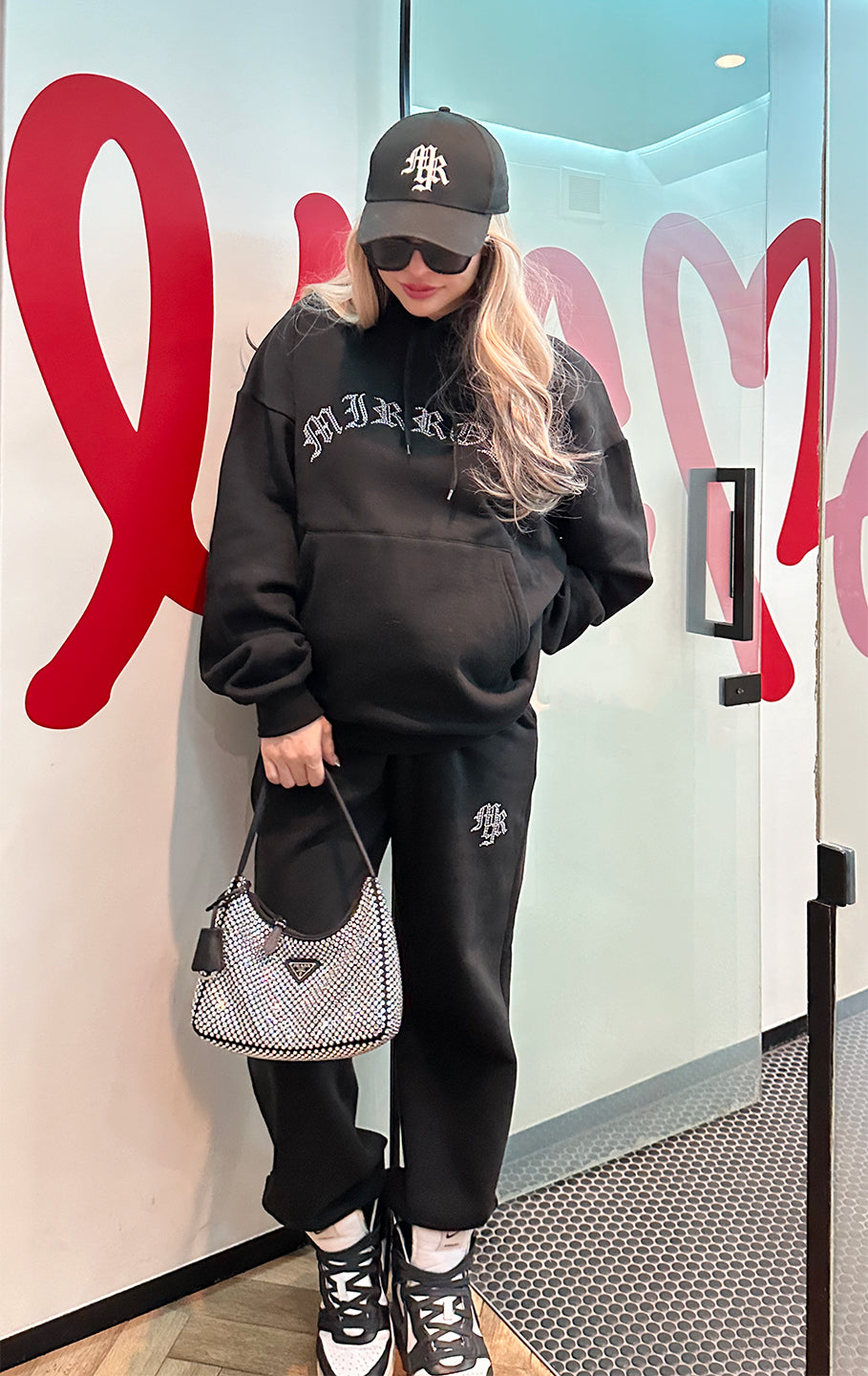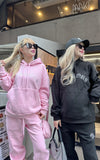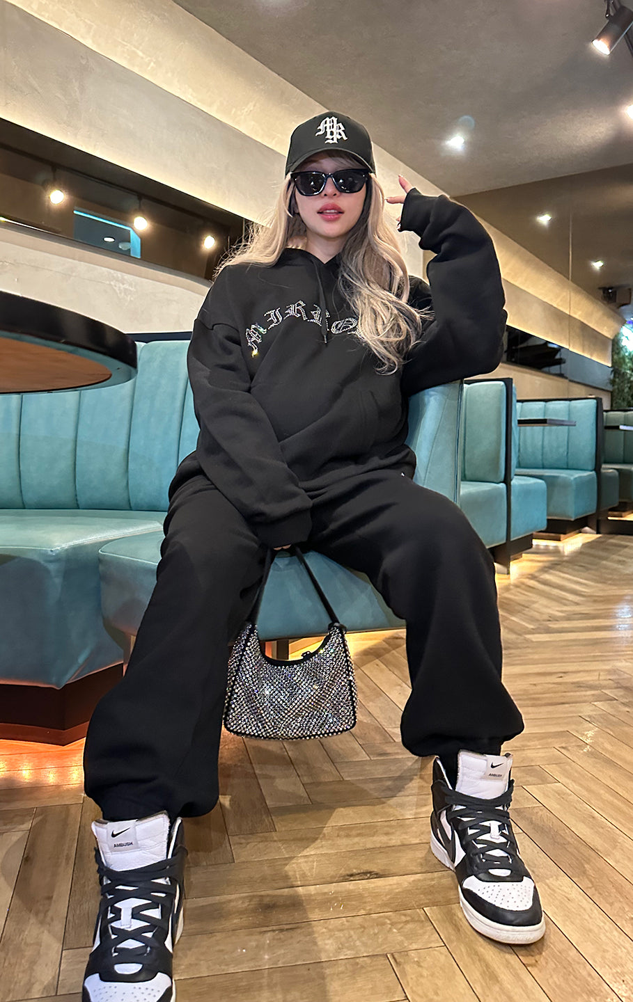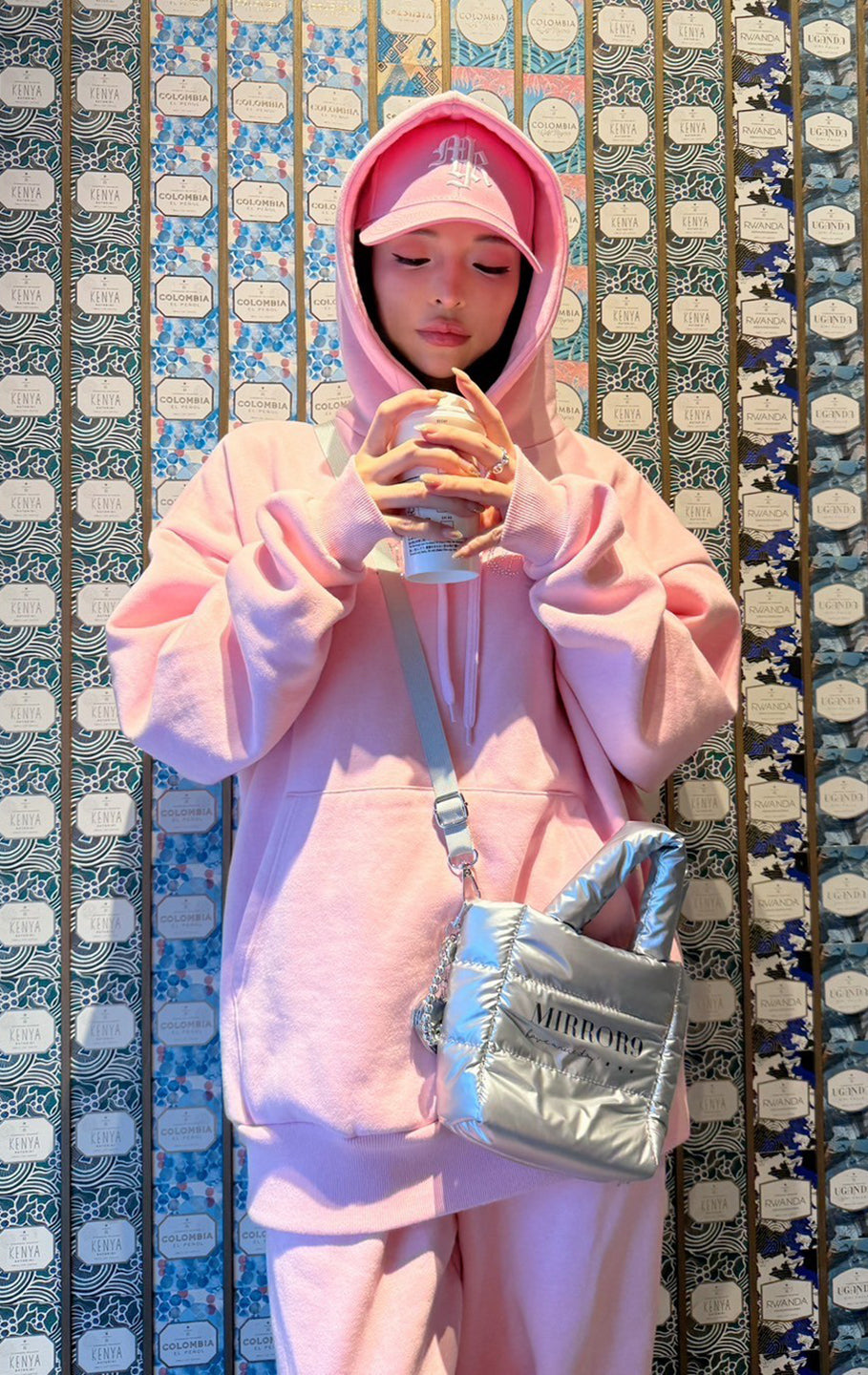 パーカーも着丈が長いので、私の身長だとパンツのキラキラが隠れてしまいますが、大きすぎておかしいって事もなくセットアップとして着れます。