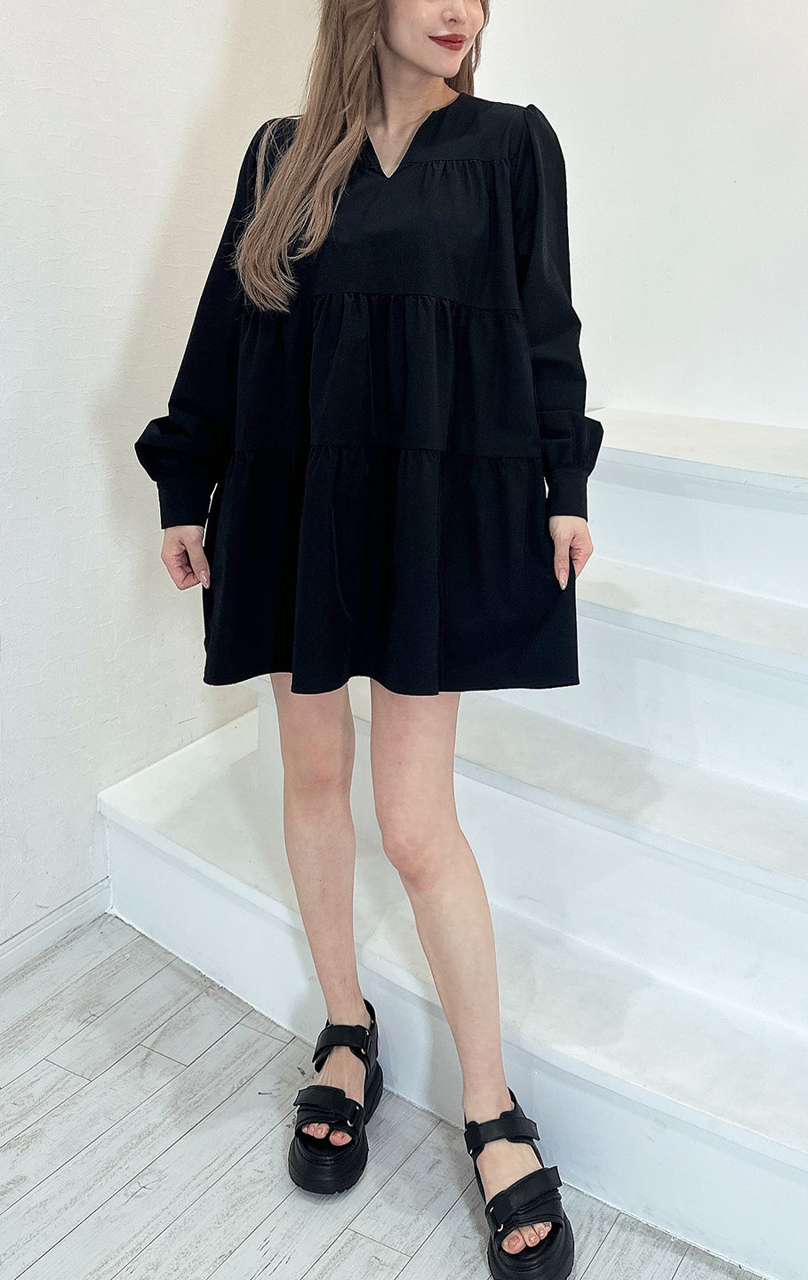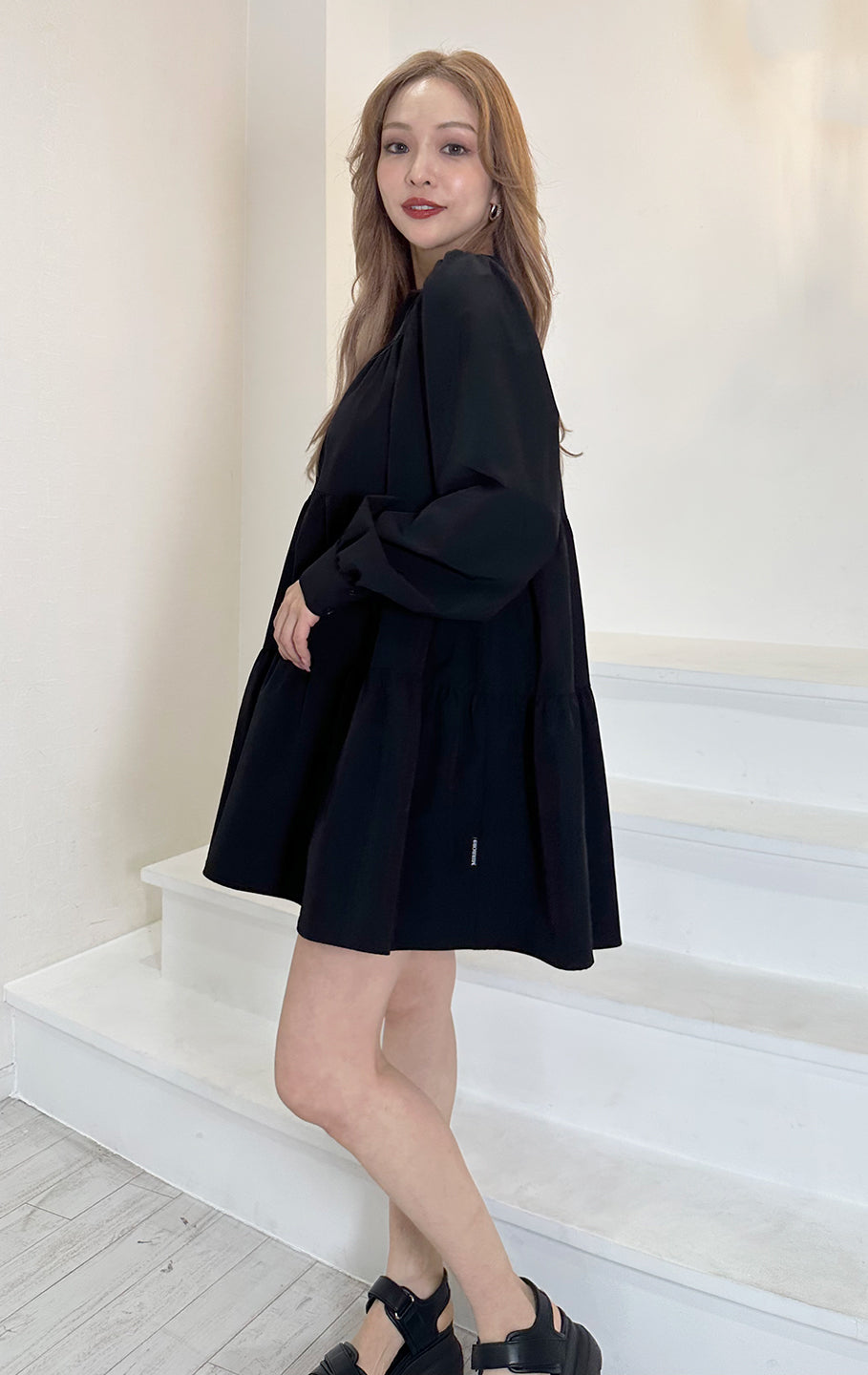 We use a special material that dries quickly, making it perfect for the summer season. Also useful for going out to the water or outdoors! The overall material is made of slightly stretchy material, making it extremely comfortable to wear. A versatile item that can be worn with sneakers or sneaker sandals for a casual down style, or with heels for a neat look. The silhouette has just the right amount of volume and is easy to wear for anyone. It can also be used as a tunic with skinny pants or leggings. We also recommend matching it with a belt and cinching it at the waist!
