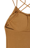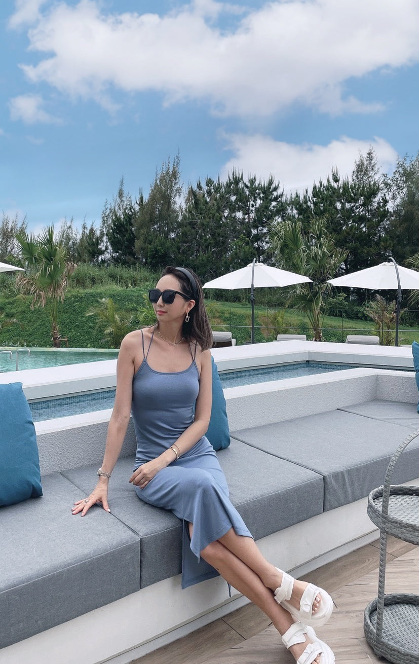 伸縮性のあるリブ生地と、肩と背中の紐はゴム紐を使用した着心地の良いパッド入りワンピースです。