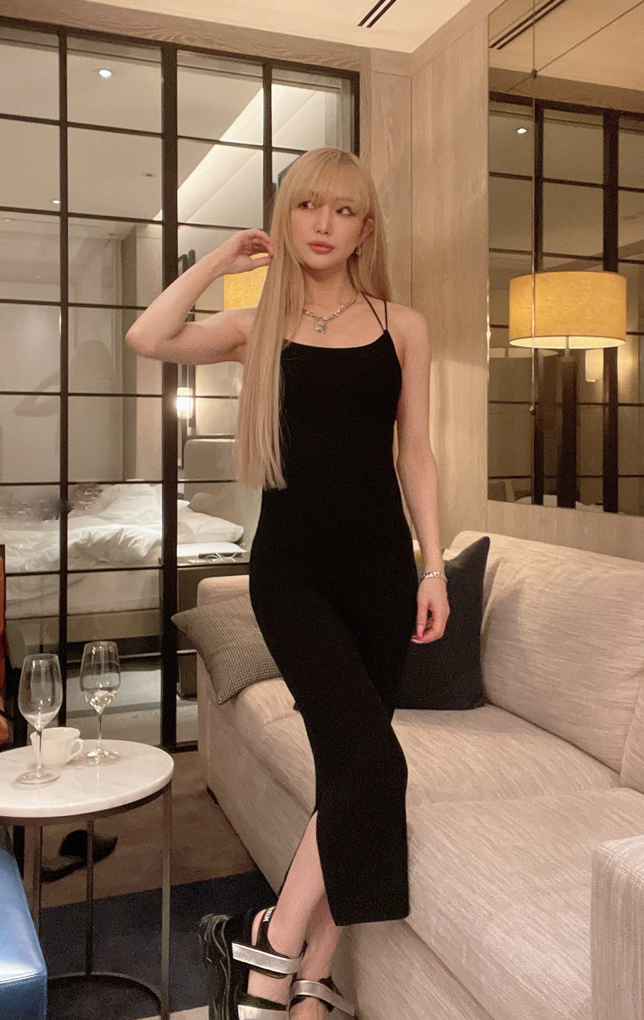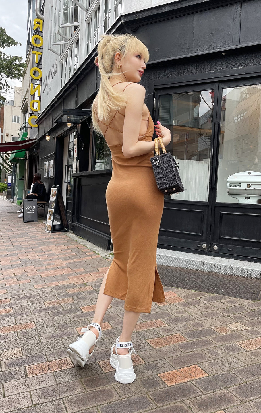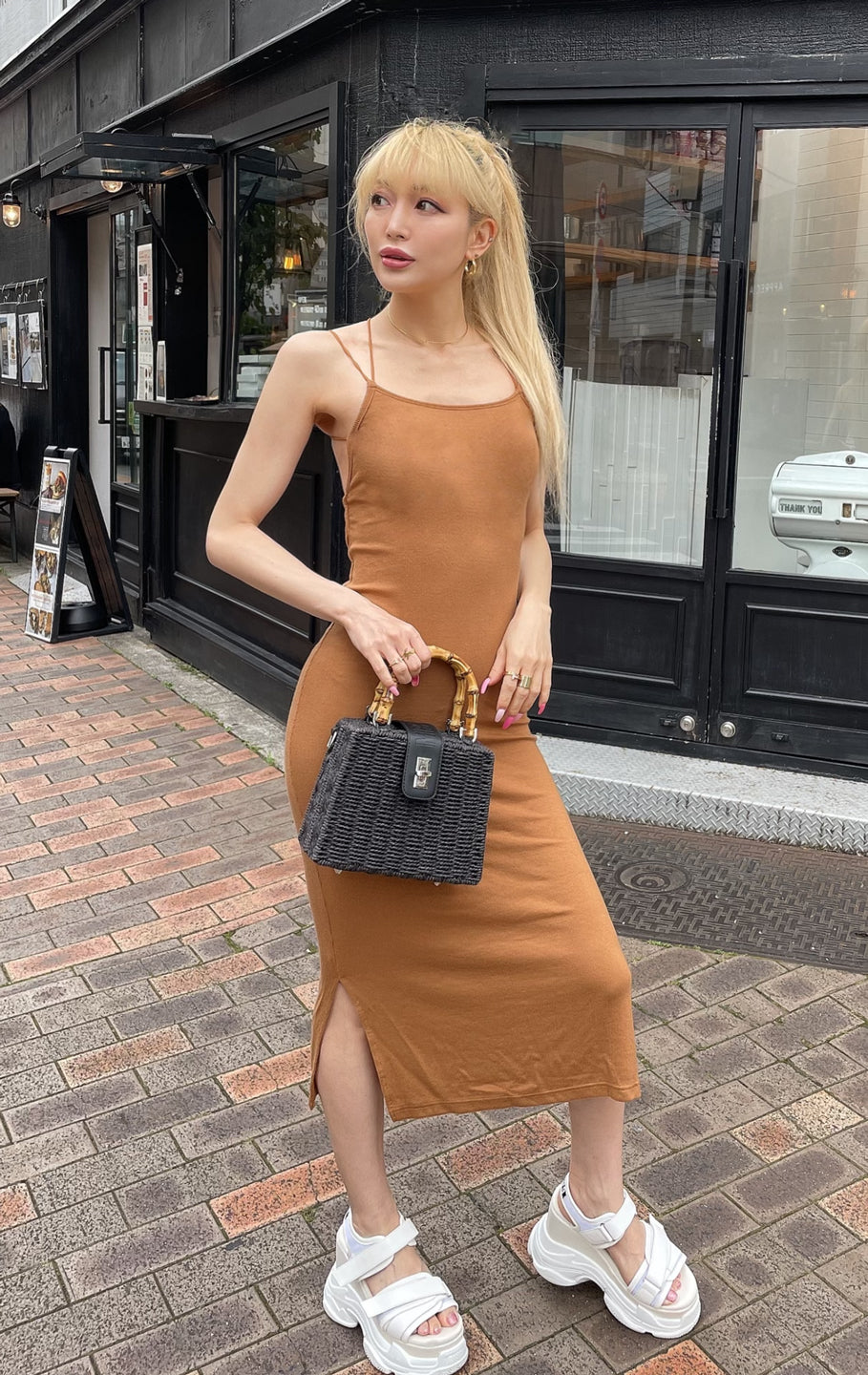 *All sale/outlet items cannot be returned or exchanged. Please understand this before purchasing. *As this is a sale item, we cannot accept returns or exchanges due to minor scratches or dirt. (We do not accept exchanges for sale items that are in good condition.) A comfortable padded dress made of stretchy ribbed fabric and elastic straps on the shoulders and back. The mid-length length is longer than the knee, making it a one-size-fits-all size that is easy to wear for people of all sizes. Pads are removable. Since it is thin, we recommend seamless innerwear.