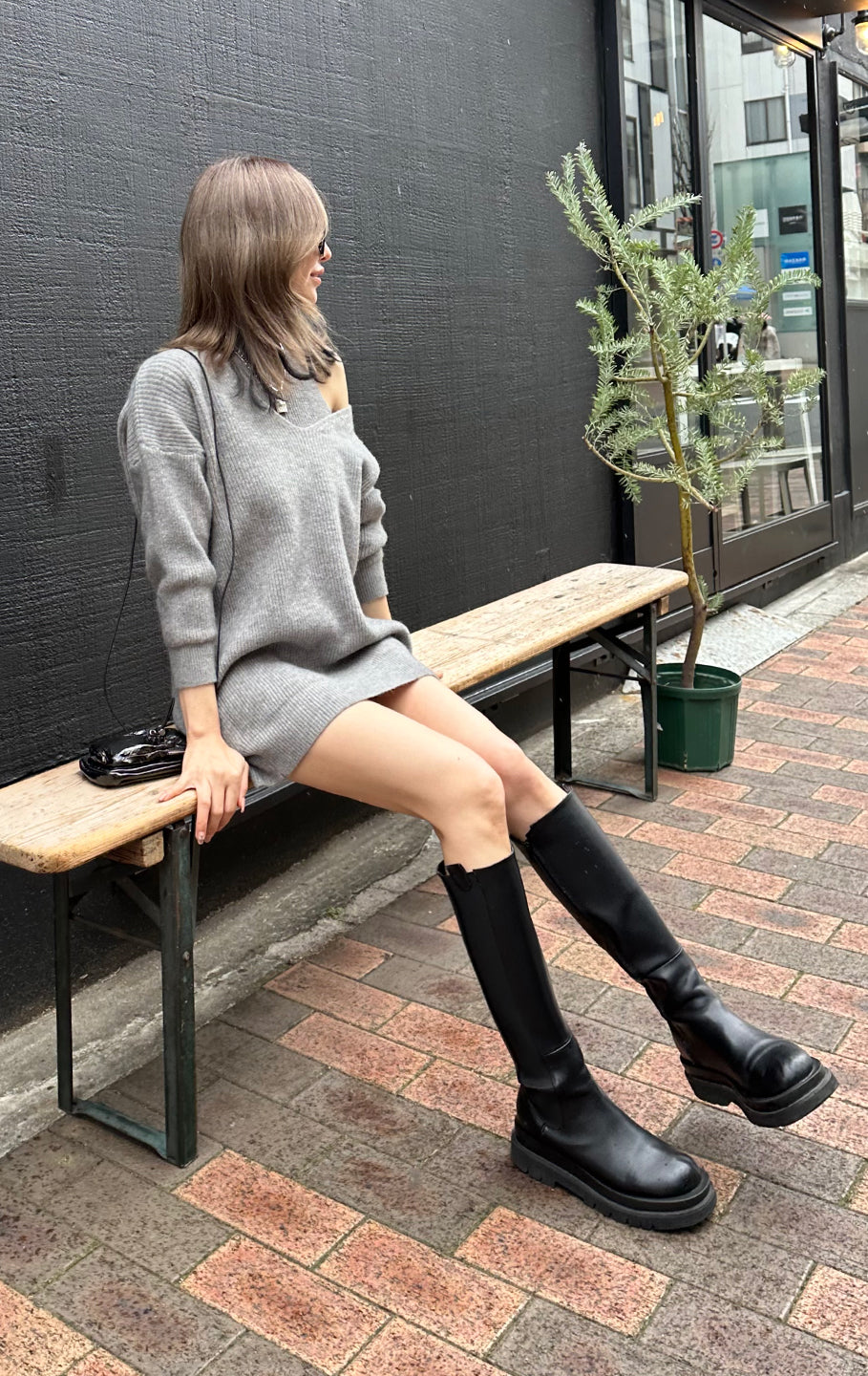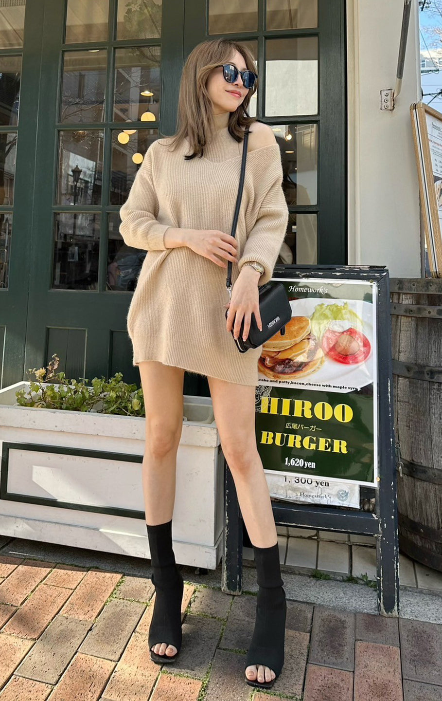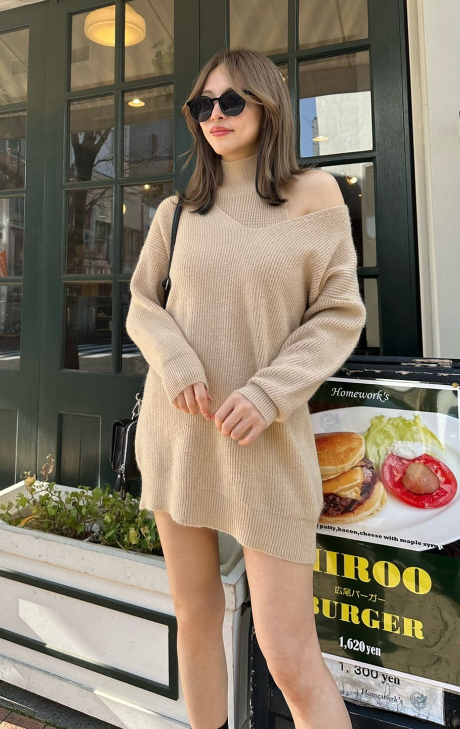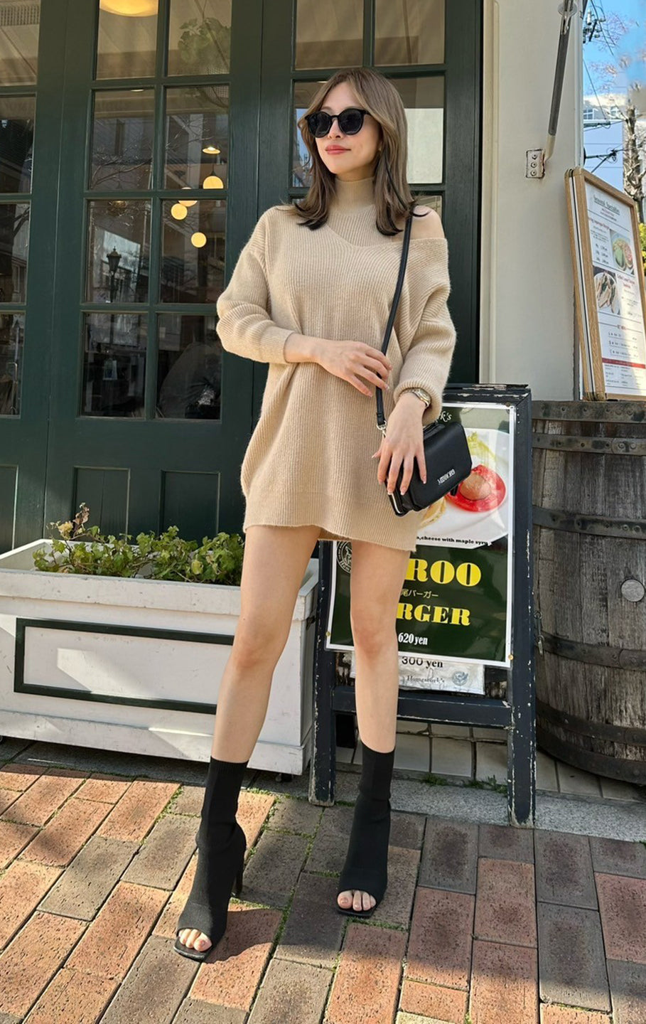159ポチャな私にはワンピで着るにはギリギリでした😂チクチク感なしの伸びるニット素材でした(*^^*)