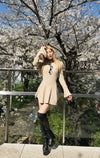リブニット素材のワンピースです。ウエストは程よくフィットし袖とスカート裾はフレアになっているのでスタイルアップ効果があります。とても柔らかい伸縮性あるニットで体型カバーしながら着心地もかなえます。
