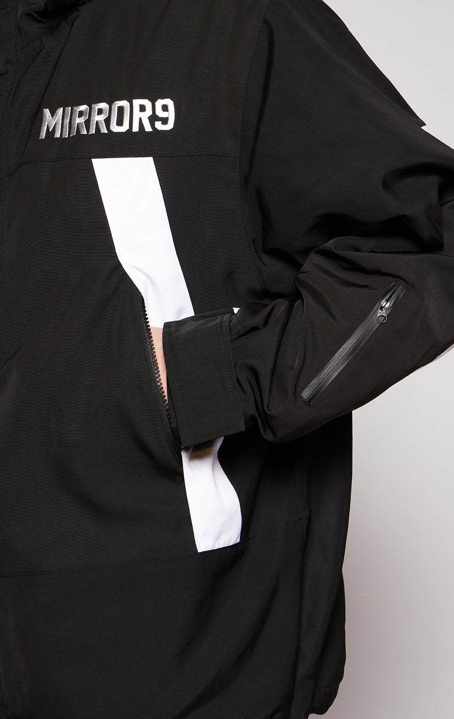 また内ポケット1箇所、左そでには止水ジップ付きポケットもあり、小さな小物やリフト券、小銭など収納しやすくなっております。