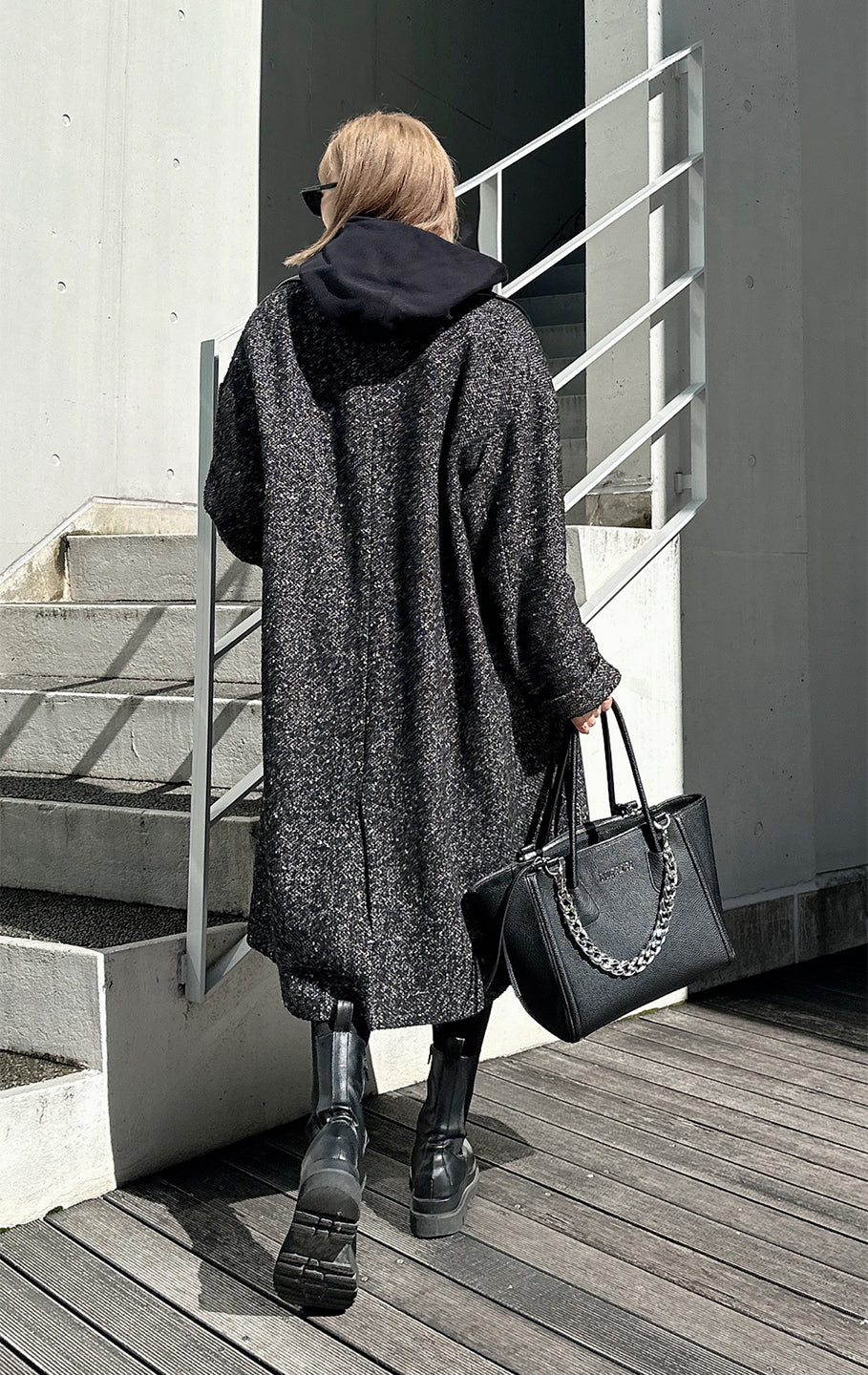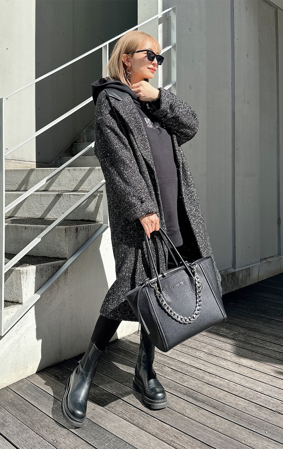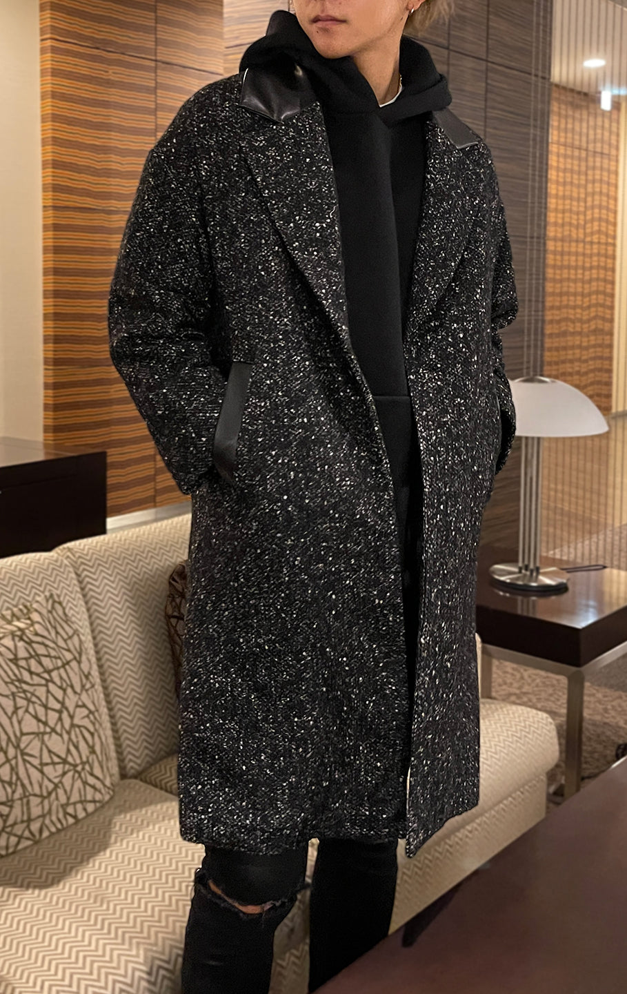 身長168cm58kgで、丈も長くもなく短くもなく見た目より軽くカッコよく着れるコートです。ブーツ、スニーカーなんでも合いそうなので活躍間違いなしです。