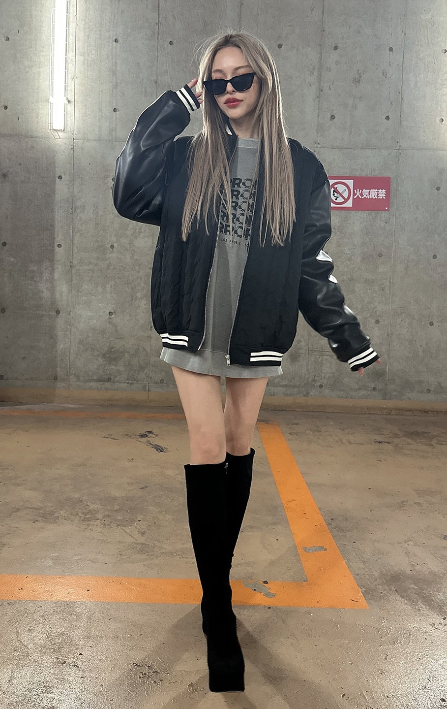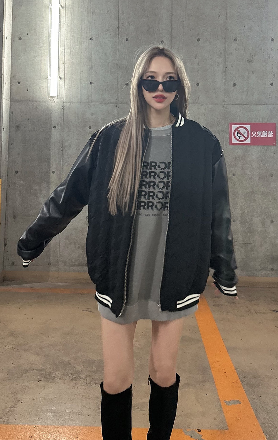 袖部分は高級感のあるフェイクレザーを使用しております。