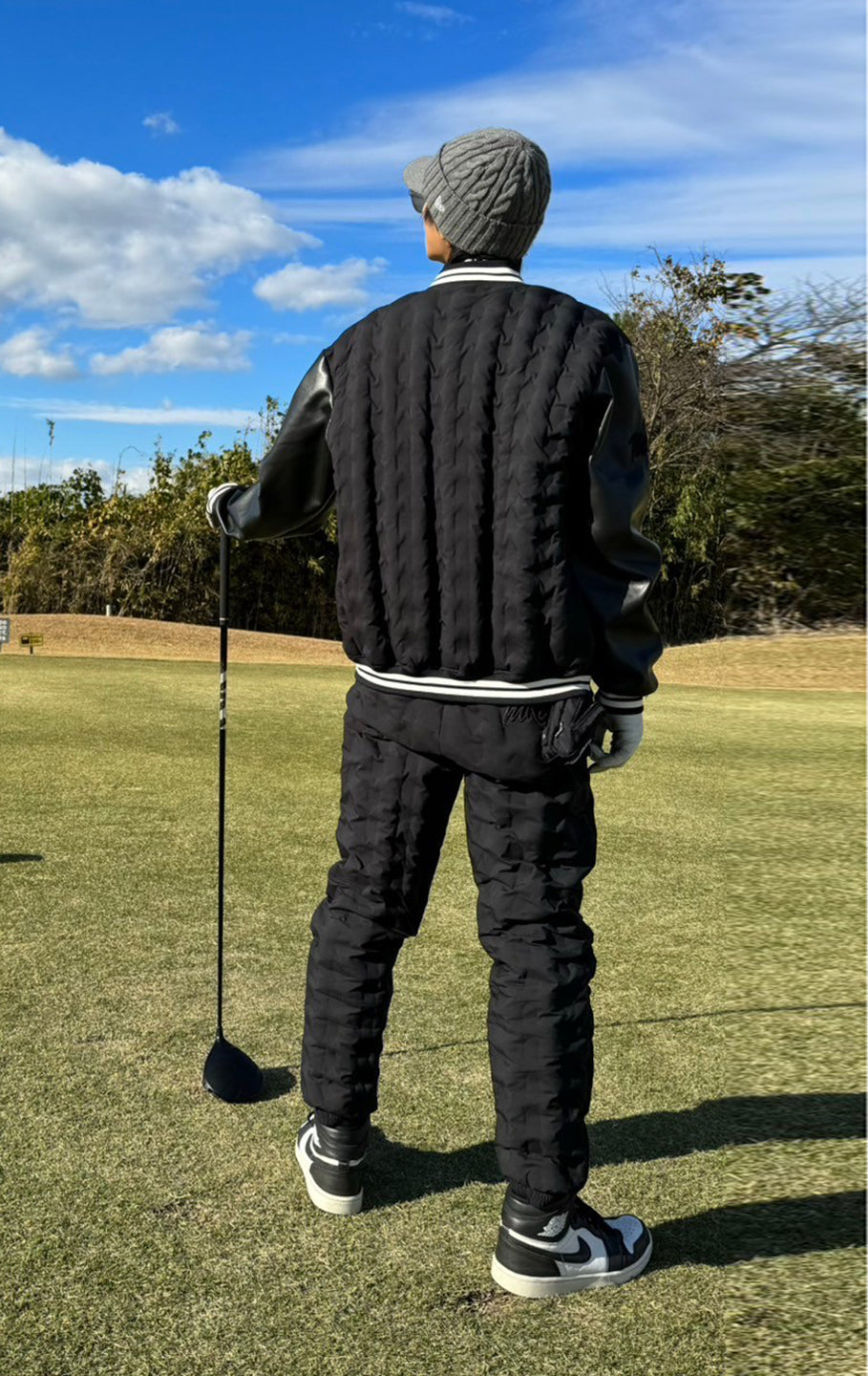 A light and warm padded jacket perfect for cold weather. It's sure to come in handy when it comes to regulating your body temperature during golf or other outdoor activities in the cold season! Designed for everyday use and easy to match with any outfit Pants and skirts with the same design are also available, so you can wear them as a set. There are side pockets. The sleeves are made of high quality faux leather.