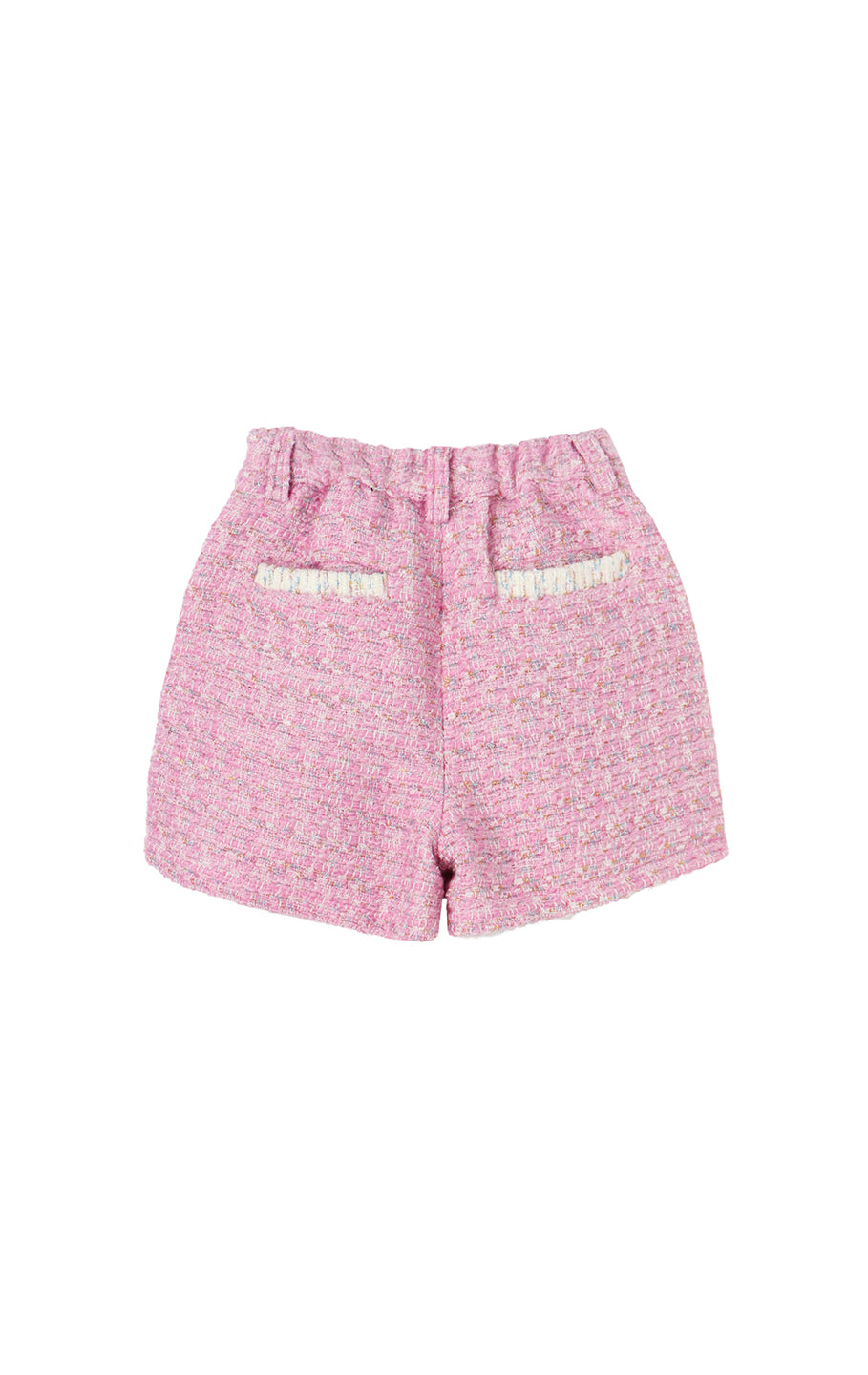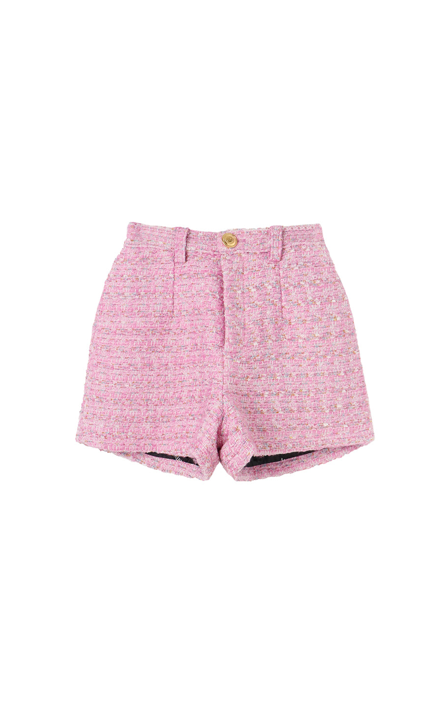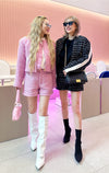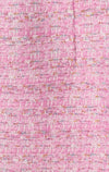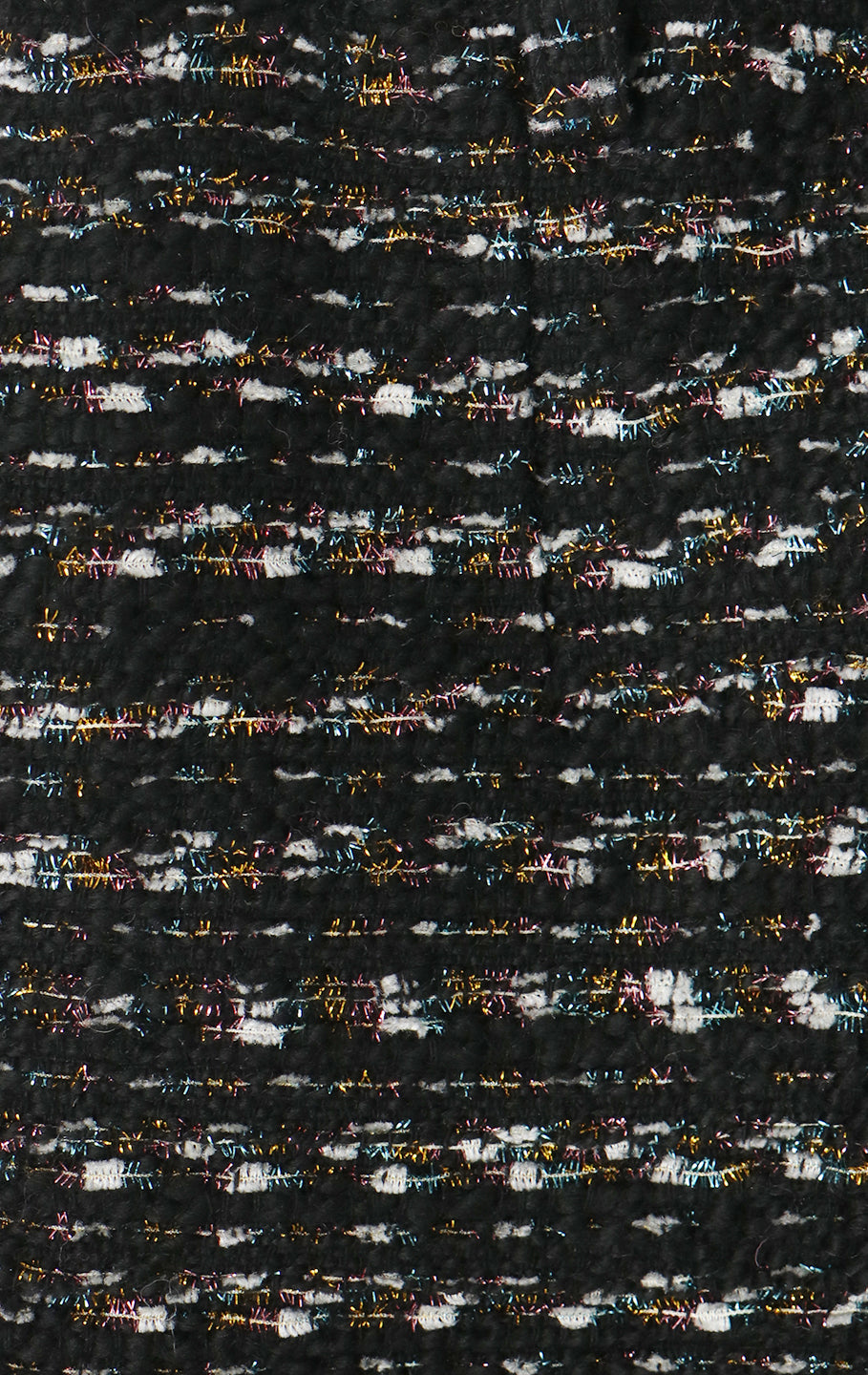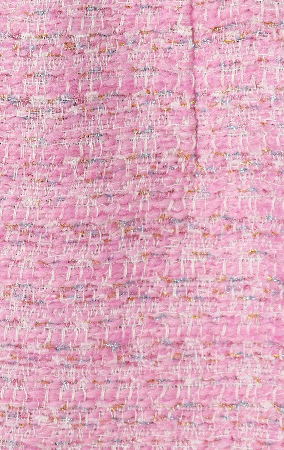 温かみのある厚さの生地にキラキラ輝くゴールドやブルーの多色のメタリック糸が編み込まれた今季のツイードアイテムは、キャンディのようなかわいらしさがありながら、甘くなりすぎないエッジを効かせたデザインに仕上げました。