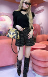 This season's tweed items are made of warm, thick fabric woven with glittering multi-colored metallic threads of gold and blue, and while they have a candy-like cuteness, they have an edgy design that is not too sweet. I finished it. The length makes your legs look beautiful and is not too short, giving you a sense of security when you wear it, and it's a great way to enhance your style. We recommend styling it as a set with a jacket made of the same material, or with a knit or cut-and-sew item. Not only is it a basic design that can be worn with many different outfits, but the expressive tweed makes it a piece that will add a touch of glamor to your outfit.