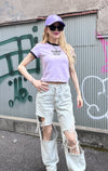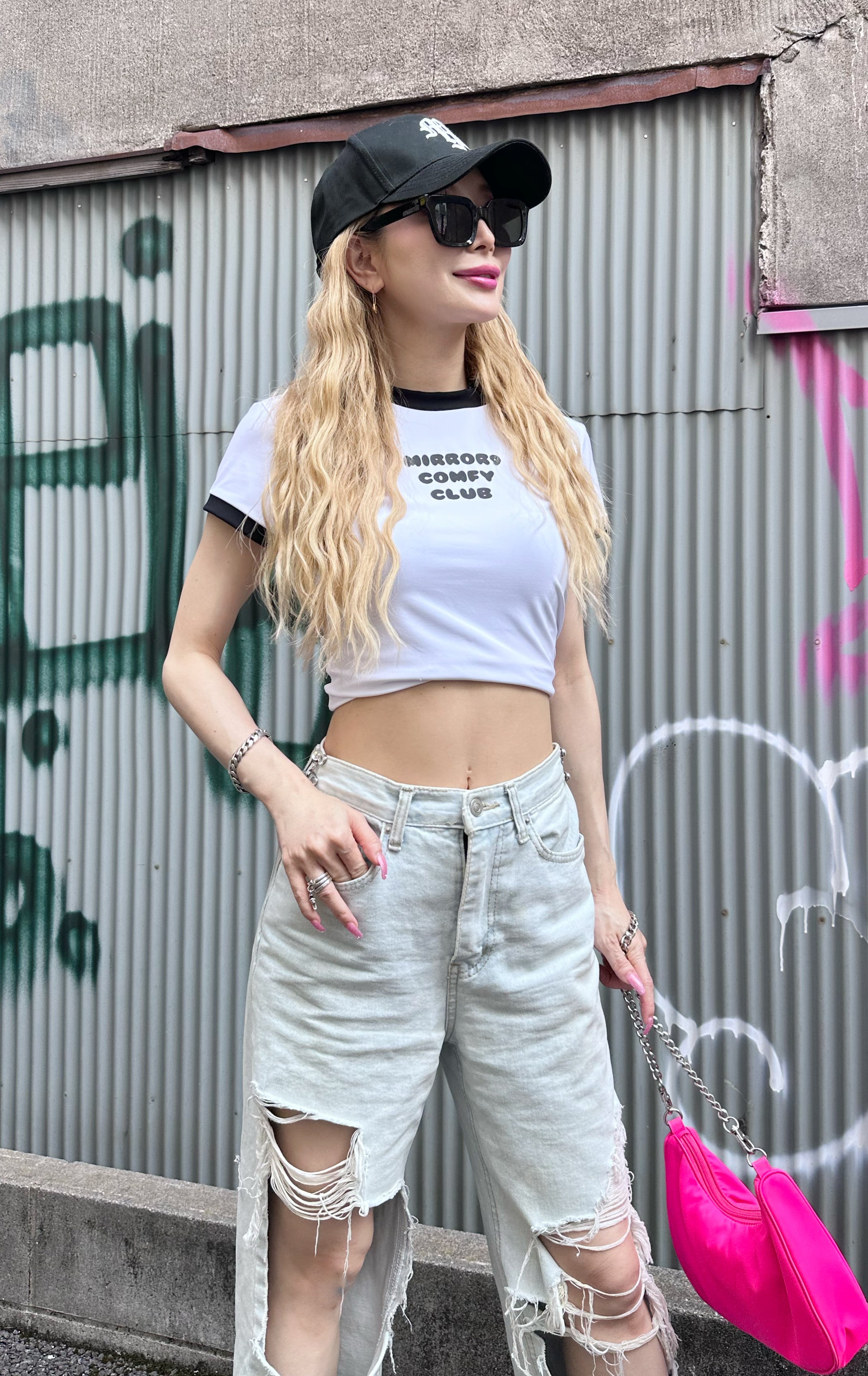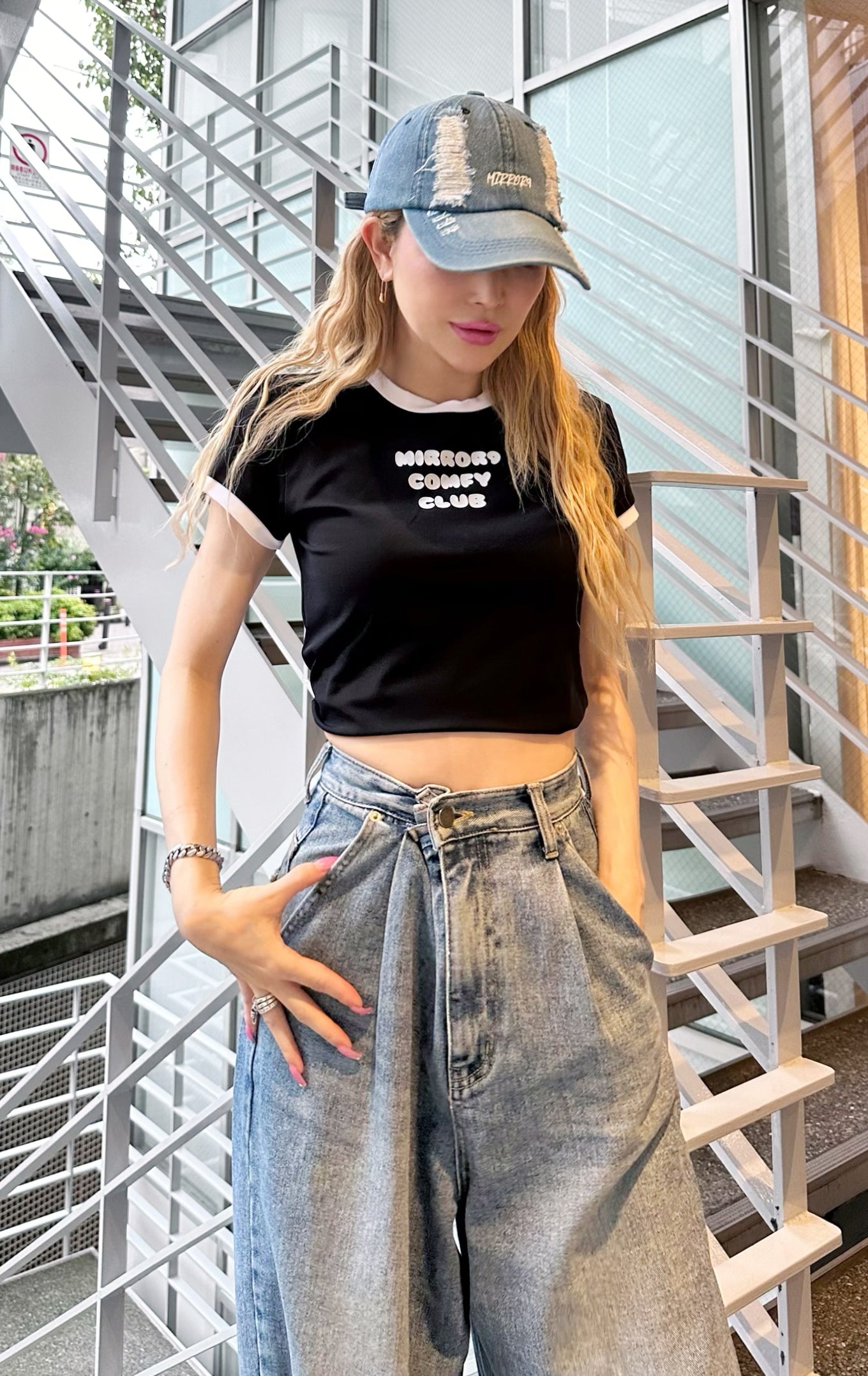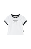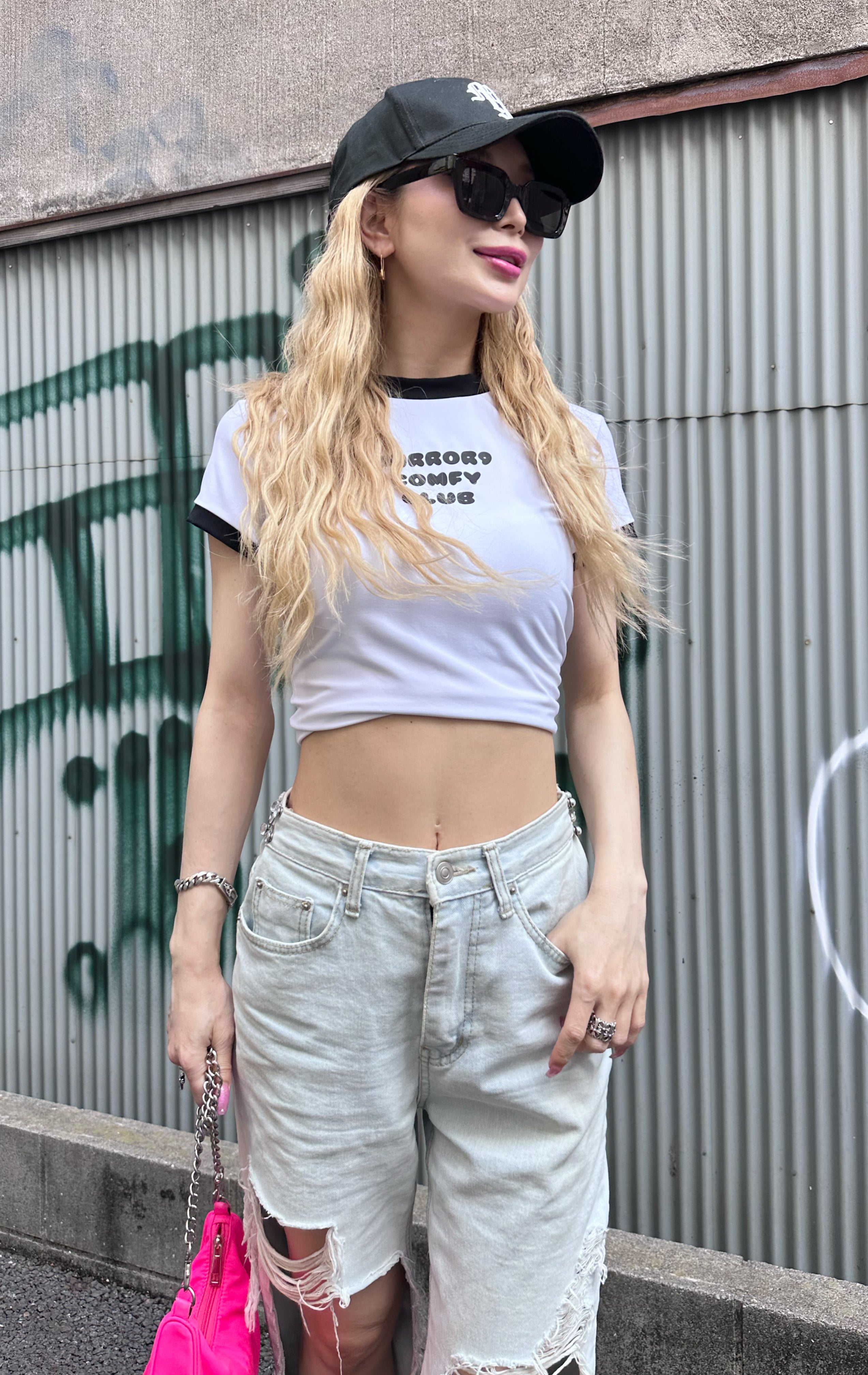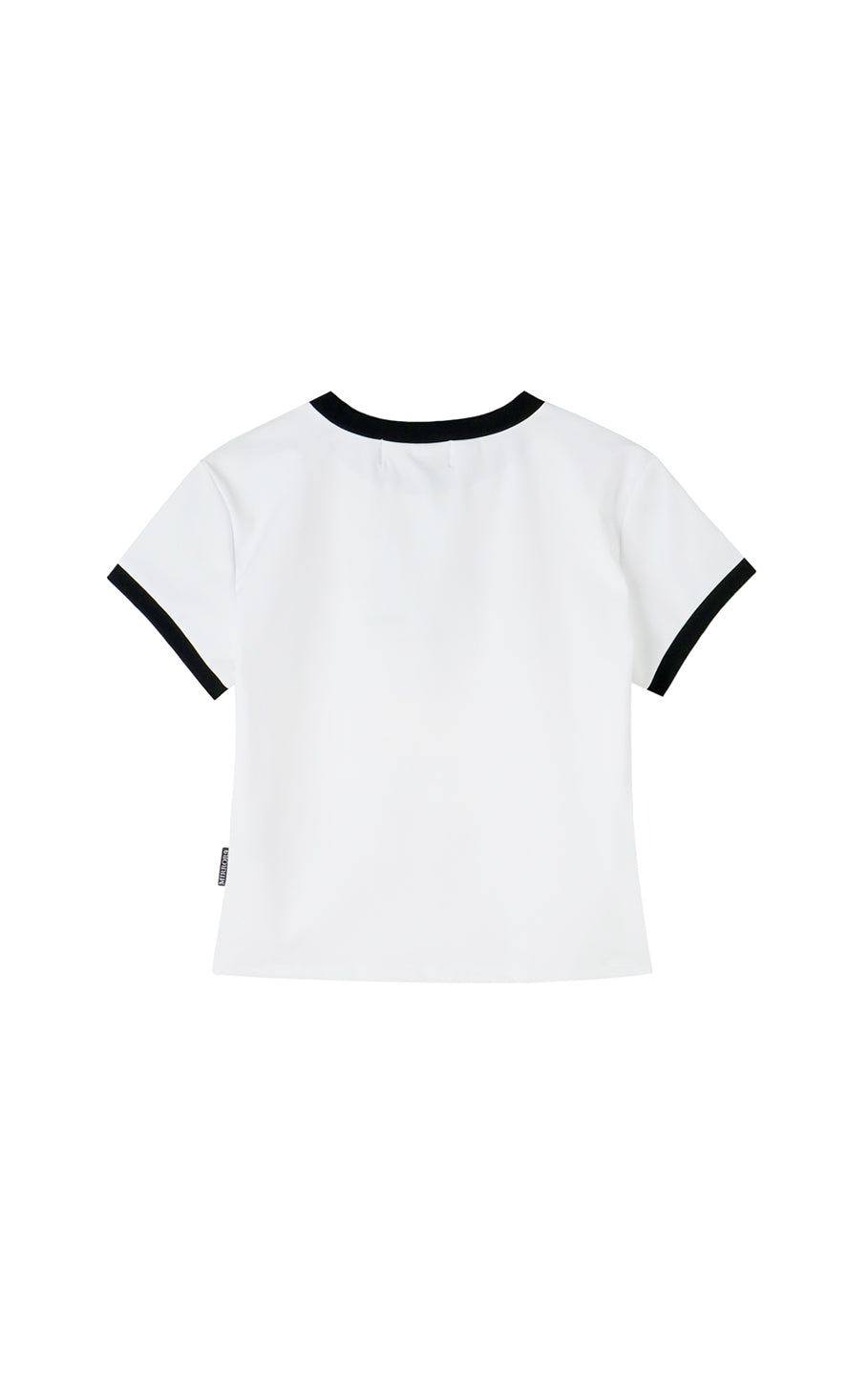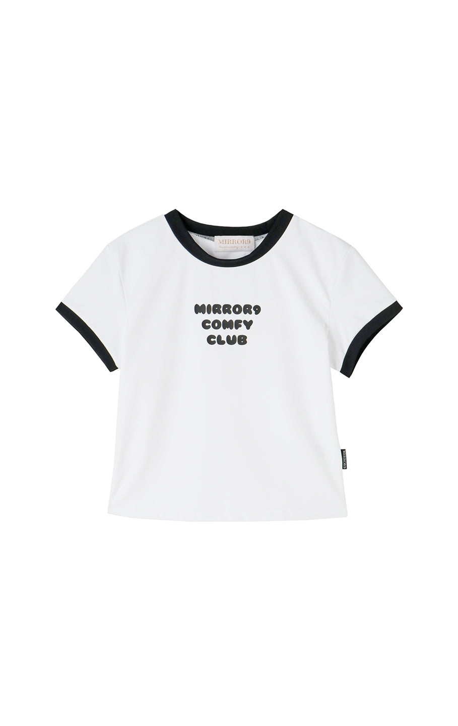 This two-tone T-shirt is made from stretchy material. The matte material is similar to sportswear, stretches both vertically and horizontally, and has just the right thickness so that even the white color is not see-through.