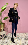 肩にソフトパッド入りのためどんな方でも綺麗なシルエットを演出できるダブルジャケットです。