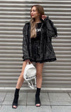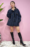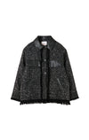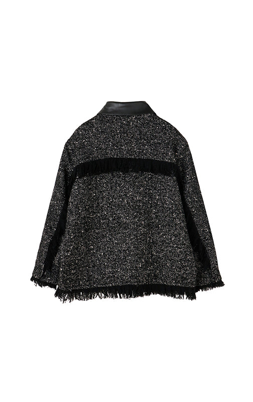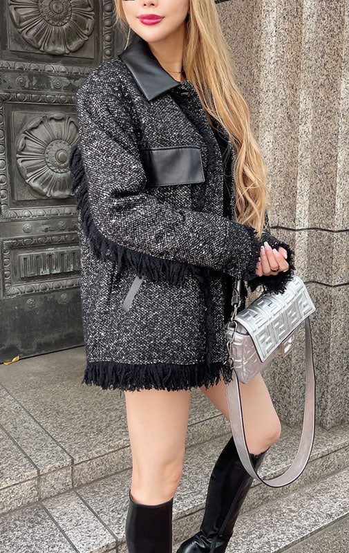 ツイード生地とフェイクレザーのドッキングデザインのジャケットです。