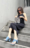 23よりの23.5なのですがデニムもブラックもMを買いました。少し大きいくらいで締め付ける感じなくちょうどよかったです!ソールも1センチ?くらい厚みがあるので、疲れないし、鼻緒も痛くならないし、脚も綺麗に盛れるしすごく履きやすいです!!おすすめ!