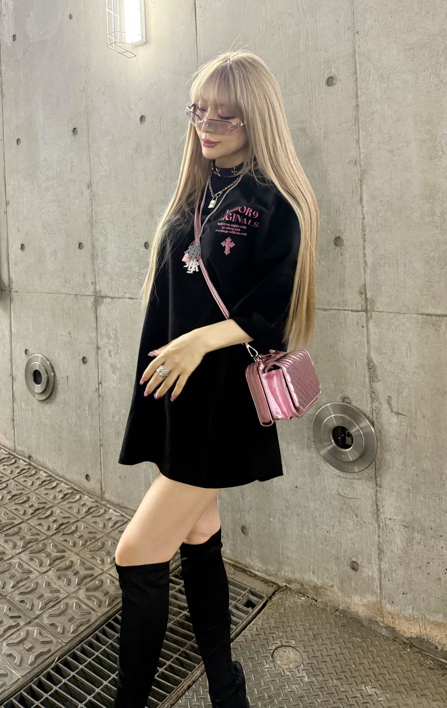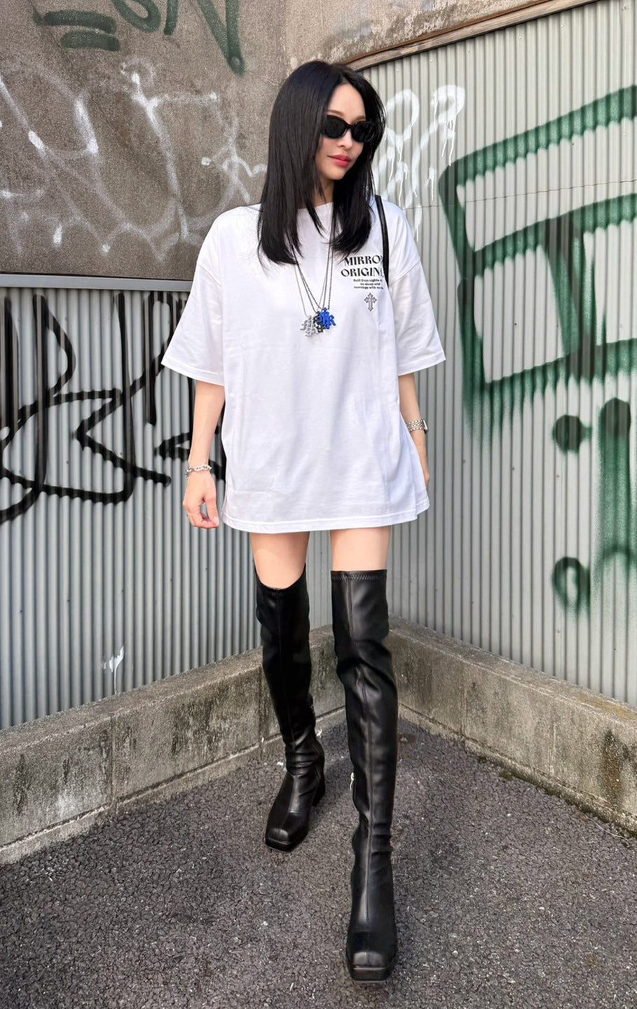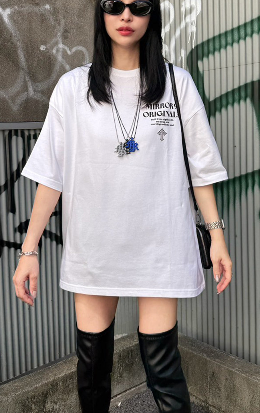バックプリントのファイヤーハートと胸ロゴのクロスとお揃いのネックレスチャームもございます。