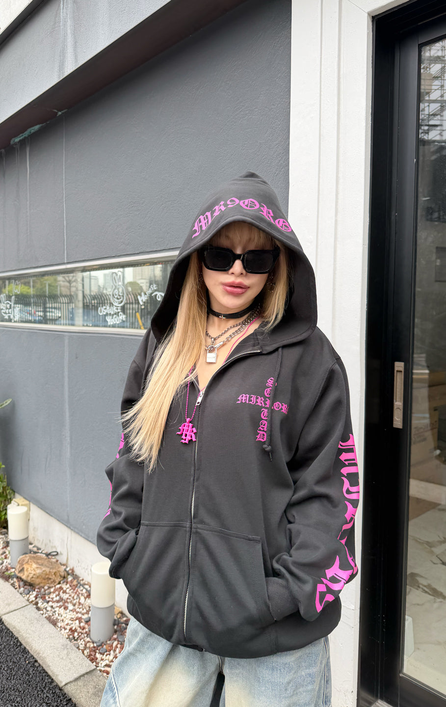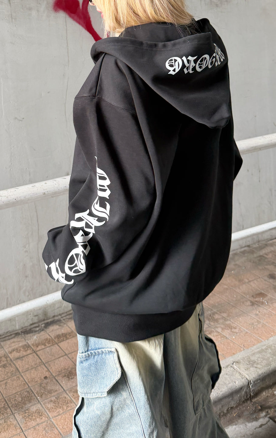 フーディーが二重構造のため他の部位のプリントより若干薄い場合もございます。ご了承くださいませ。