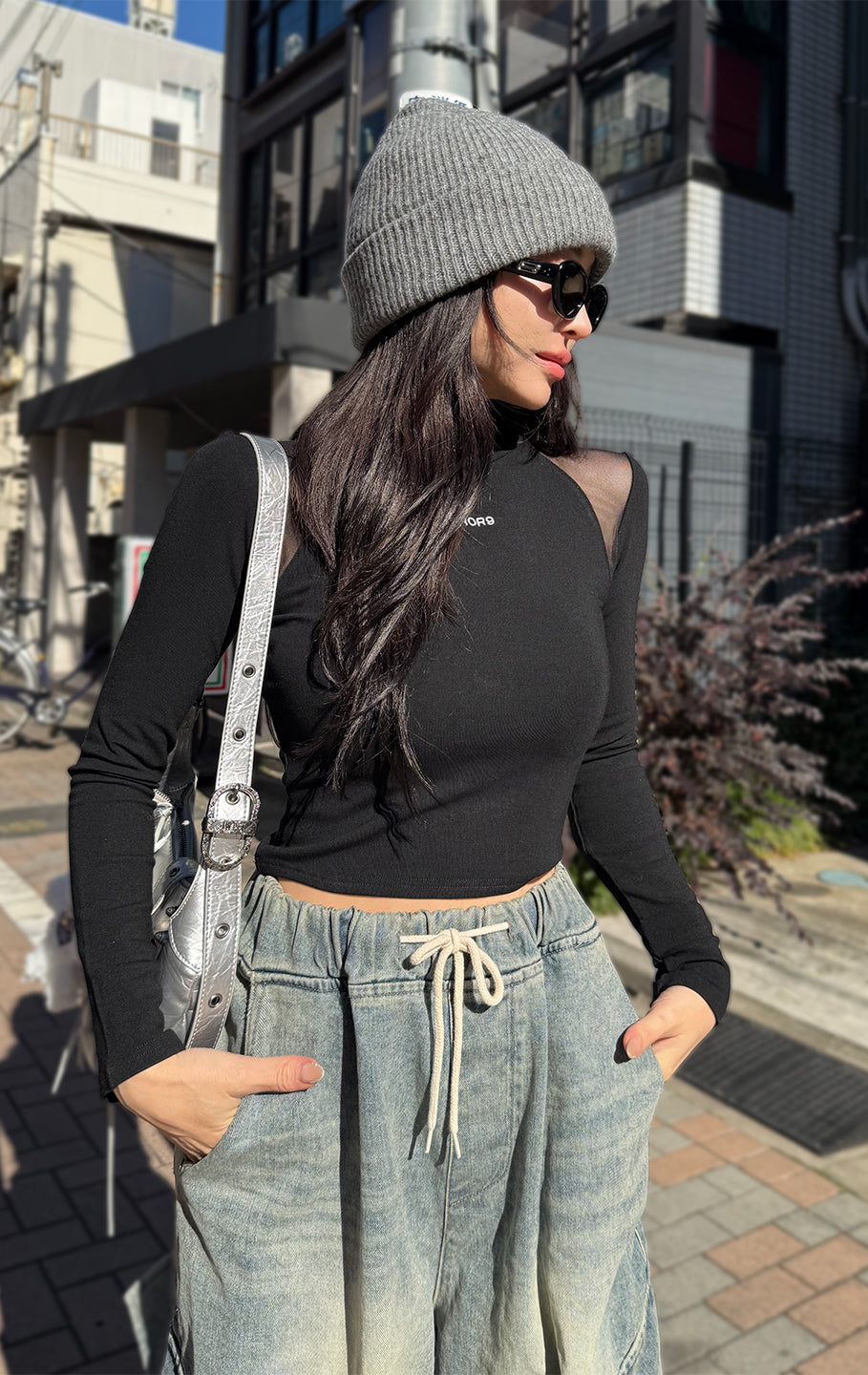 肩部分は透け感のあるシースルーのメッシュ素材になっております。