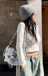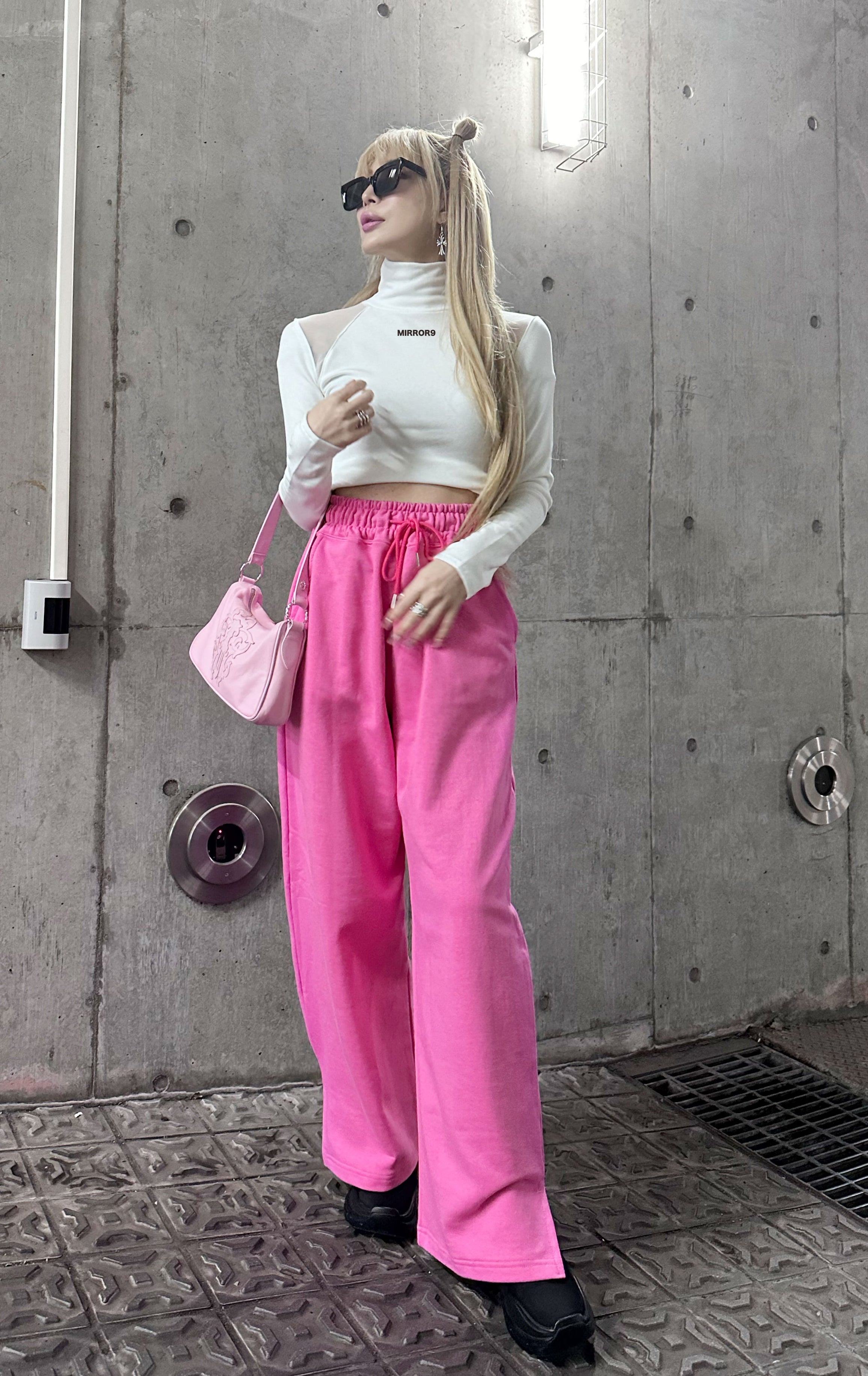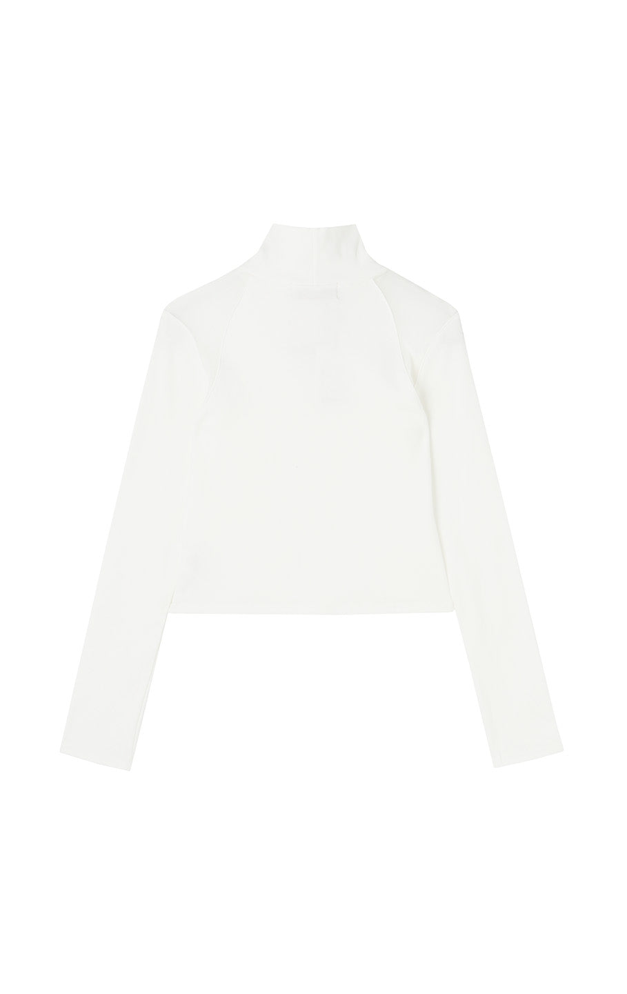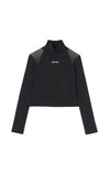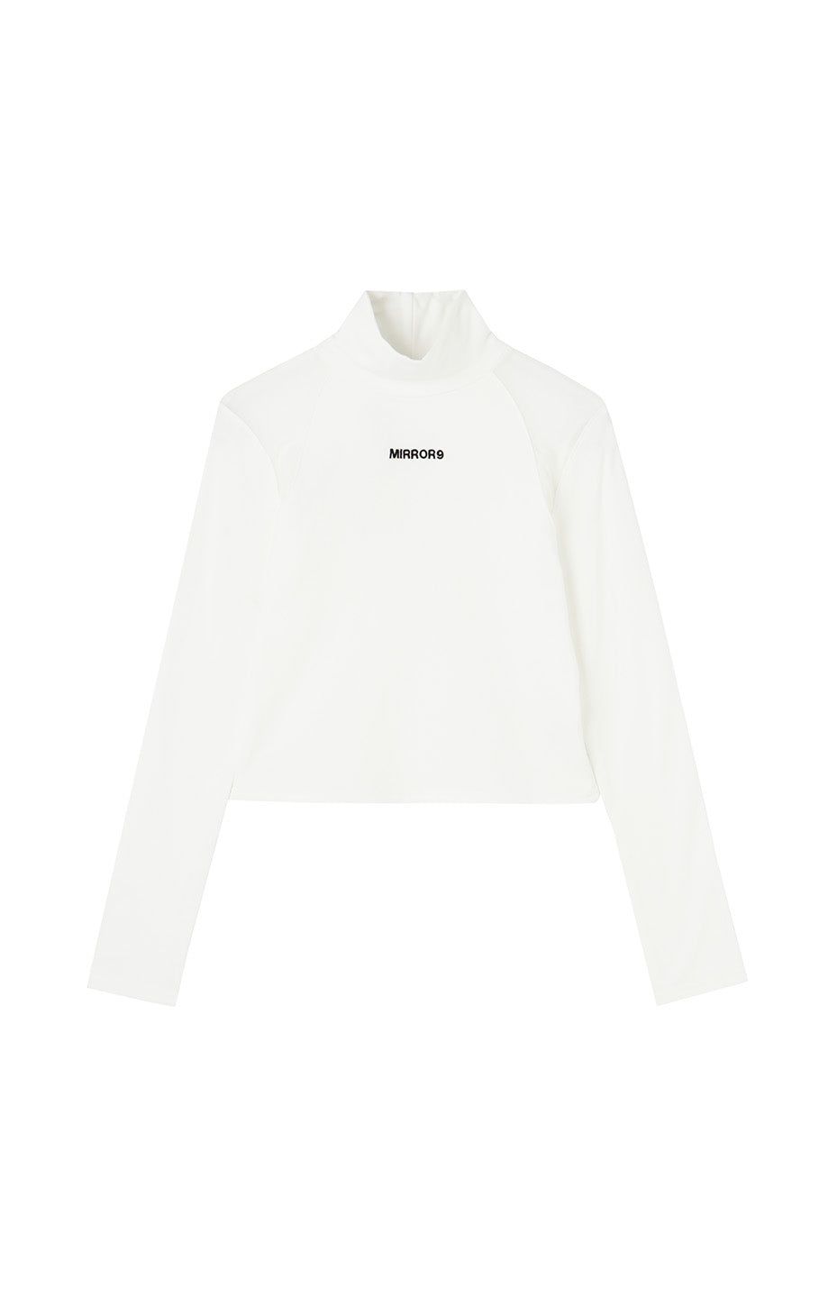 This short top is made of soft and stretchy material for comfort. The shoulders are made of see-through mesh material. The front has a logo embroidery. It's just the right thickness, so even white won't show through.