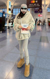 きれいなブルーがやわらかいグレーと合わさって素晴らしいです。今期の生地はさらに触り心地がよく、裏地もやわらかく着心地がまた違って快適です。ロゴサイズもやや大きめにハッキリ見えるので、アウターなしでロゴを見せた状態で着ています。サイズ感も程よいダボ感で満足です。