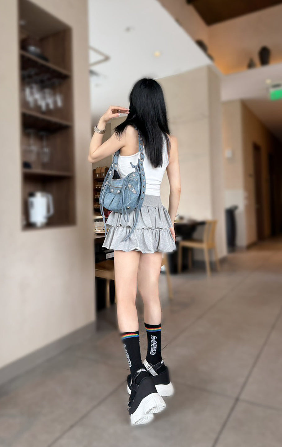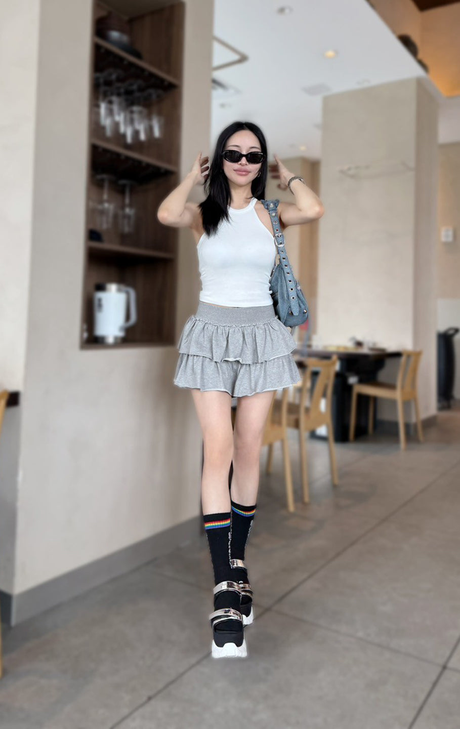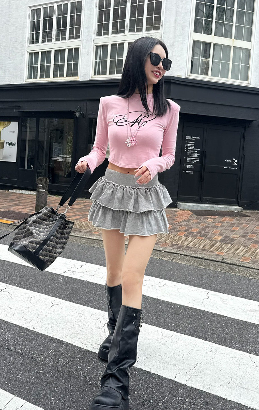 スウェット素材なのでガーリーになりすぎずカジュアルダウンしたデザインでとても着回ししやすいです。