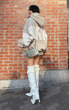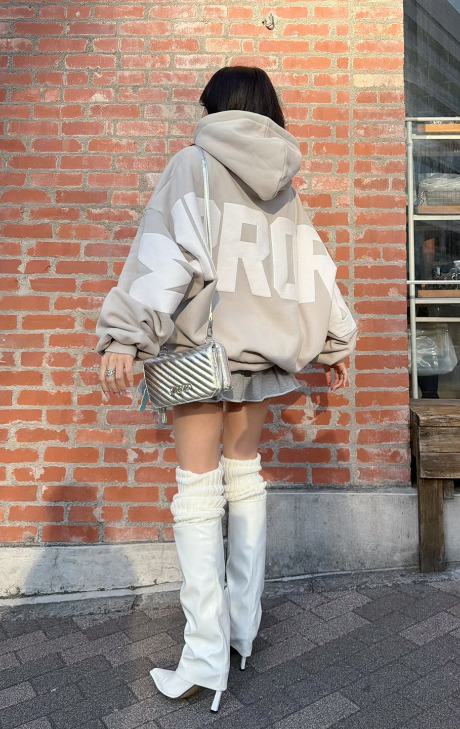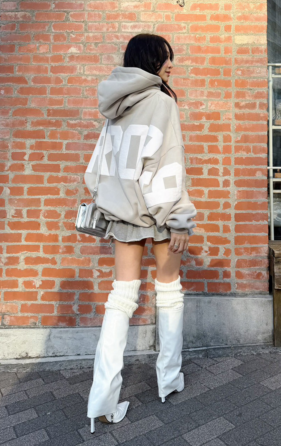 The design is made of sweatshirt material with raw edges. It comes with an inner layer so you can wear it with confidence.