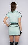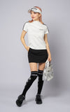 A short-sleeved top made of sturdy material that has excellent elasticity and is not too thin. It can be used all year round. There is a zip at the back, which you can open to put on and take off. The logo on the side line is embroidered. We also sell skirts that can be sold separately and can be used as a set up. *As all colors may fade, please use a laundry net when washing at home, and hang it to dry immediately after washing. (Please be careful as the color will fade if you leave it wet or sweaty.) *This product may pill due to scratches or friction. Thank you for your understanding as there may be individual differences in forms etc. *Please note that the color of this product may fade or transfer due to sunscreen ingredients or moisture such as sweat or rain. As stated in the shopping guide, we do not accept exchanges for all tops products as there is a risk that foundation may get on them when you try them on. Please understand this before purchasing.