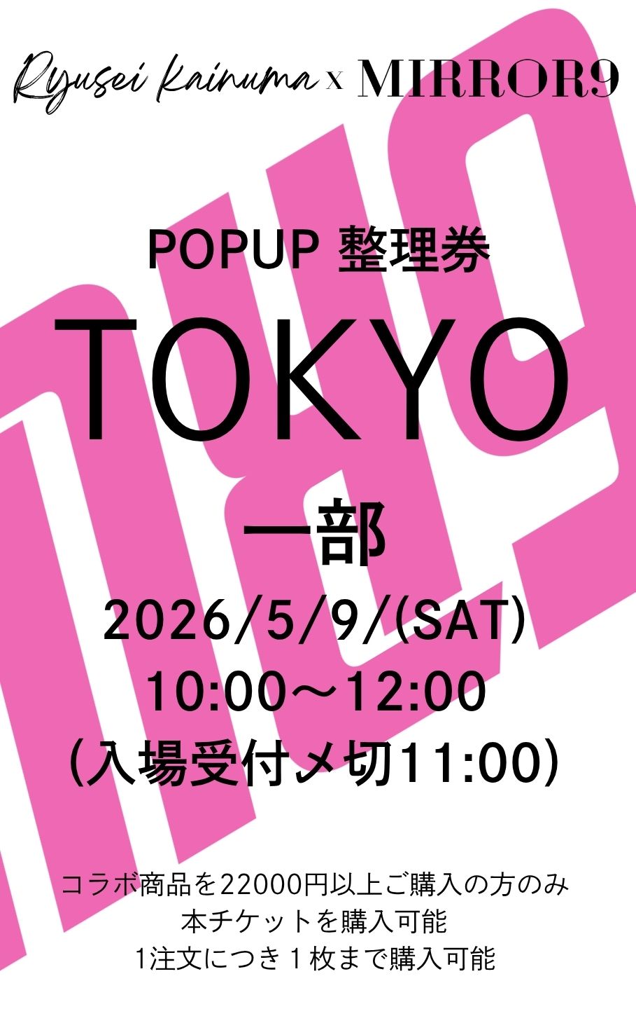 海沼流星来店POPUP入場整理券 5/9(土) 【東京 一部 10:00開始/12:00終了】※1注文につき1枚まで購入可能(コラボ商品を税込22,000円以上ご購入いただいたお客様が対象)
