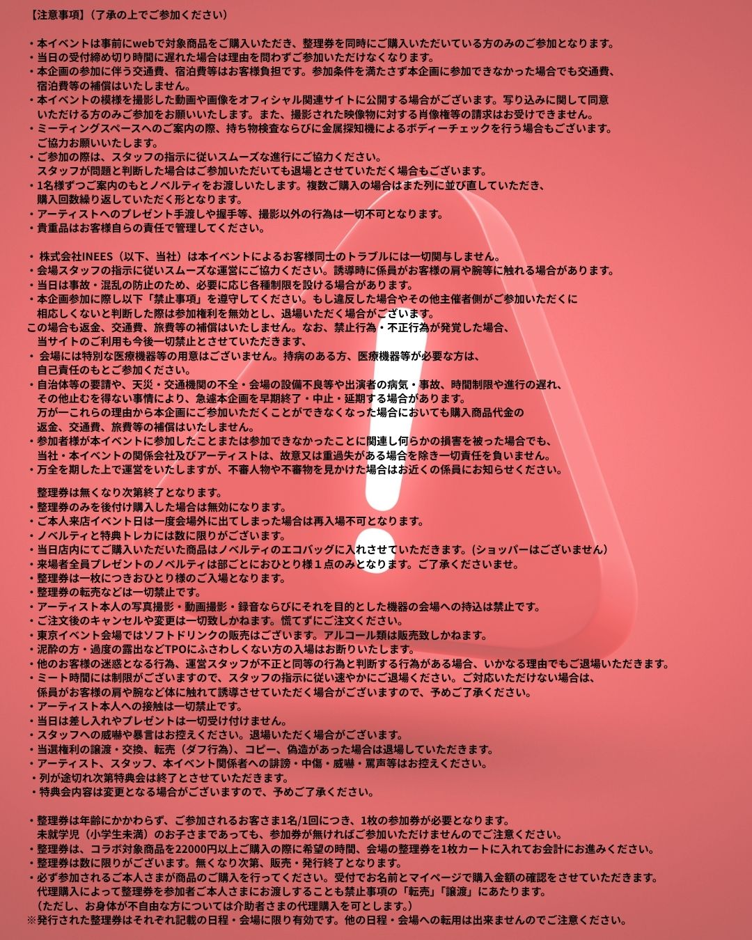 ・特典会内容は変更となる場合がございますので、予めご了承ください。
